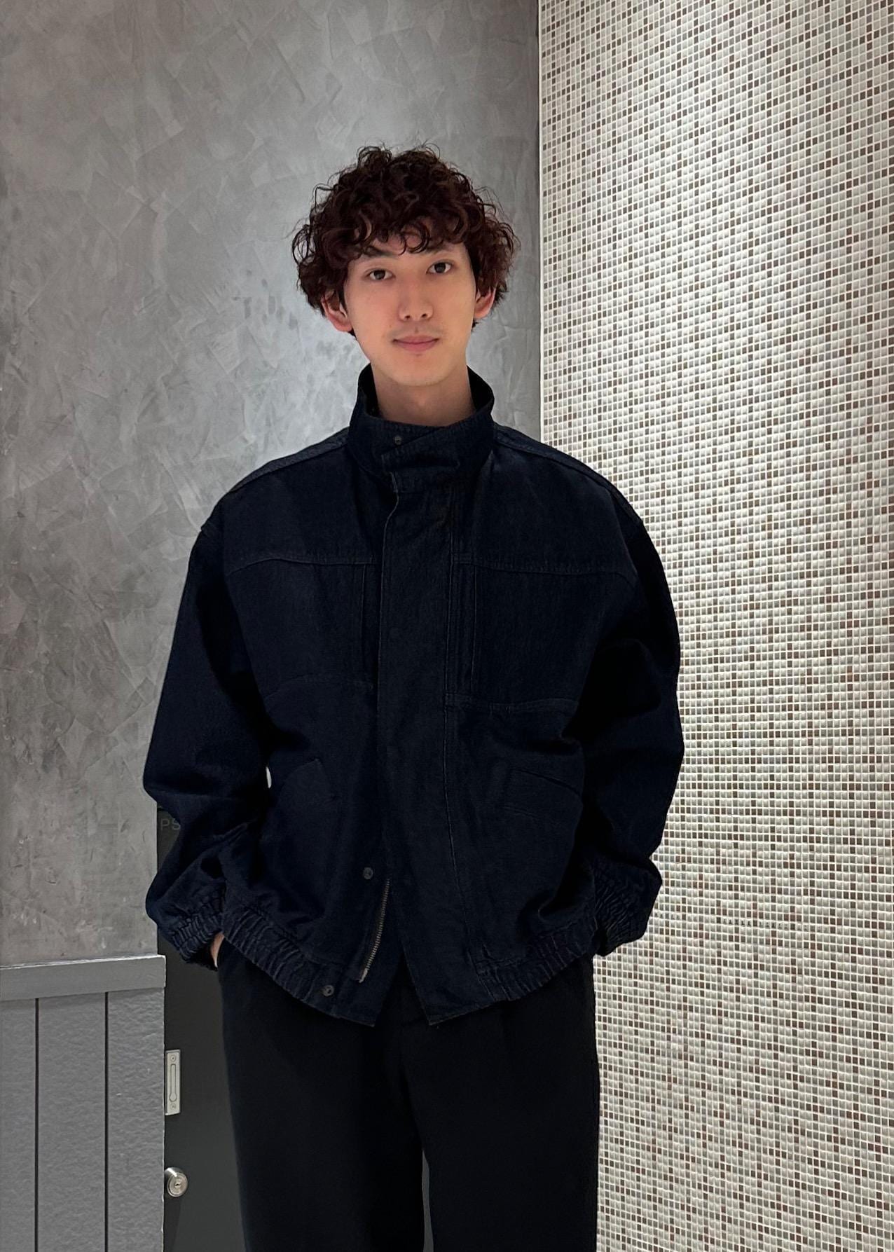 デニムのボマージャケット。とても柔らかいデニムです。ルーズなサイズ感でゆったりと着れます。キレイな風合い、シルエットなのでカジュアルからキレイめまで、汎用性の高い万能アウターです。