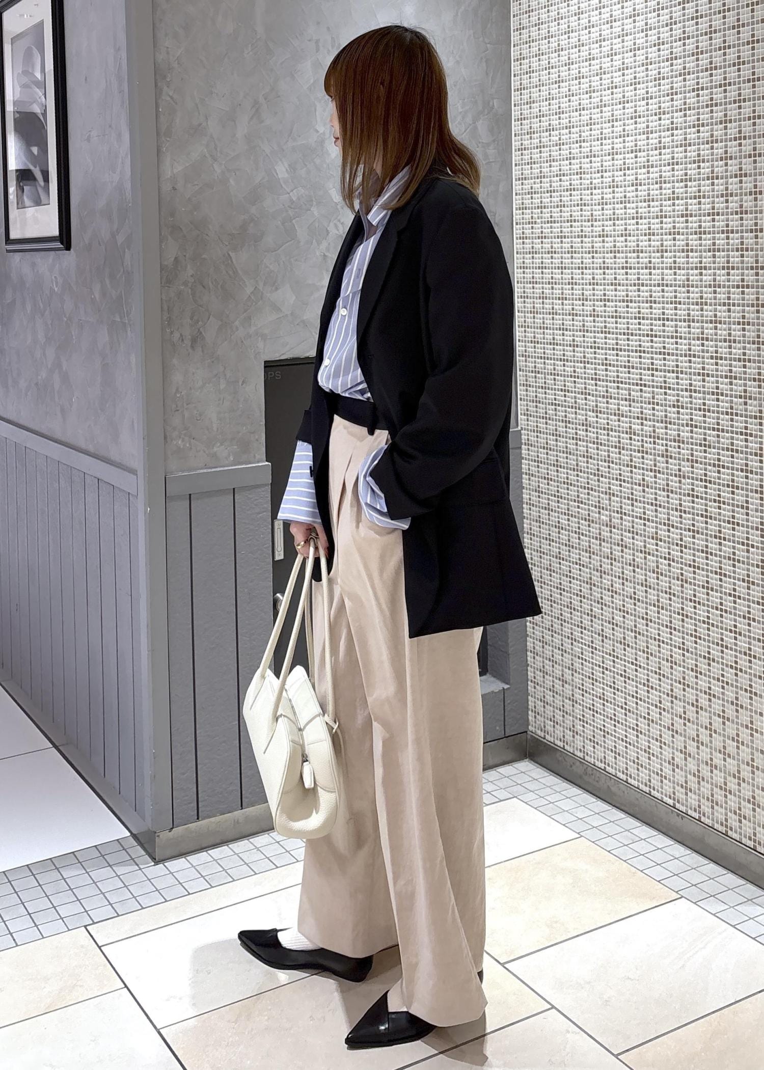 足元かっこよく尖ったシルエットで履けるためカジュアル、キレイめどちらも使えます。