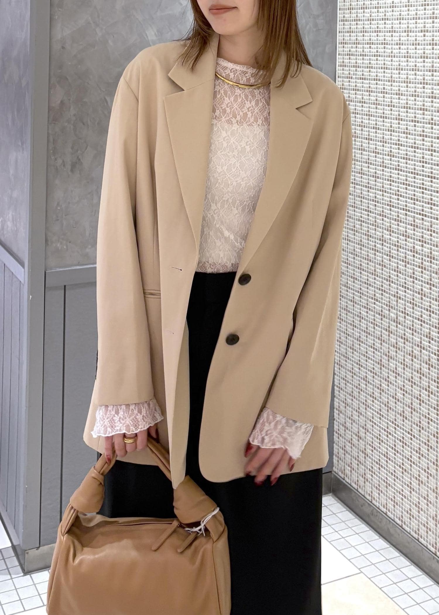 艶感のある素材で、カチッとしたシルエットな為ジャケット好きの方や、モードなお洋服好きな方おすすめです。