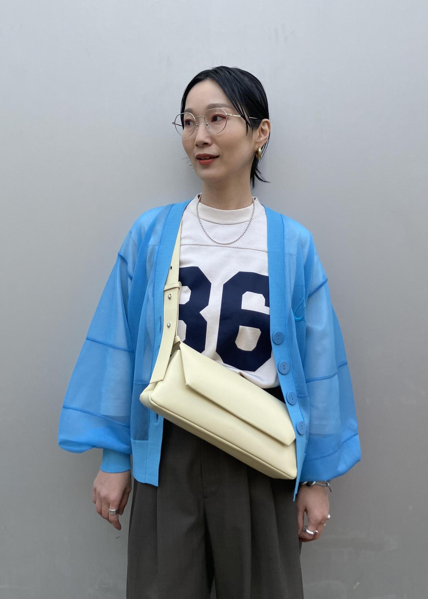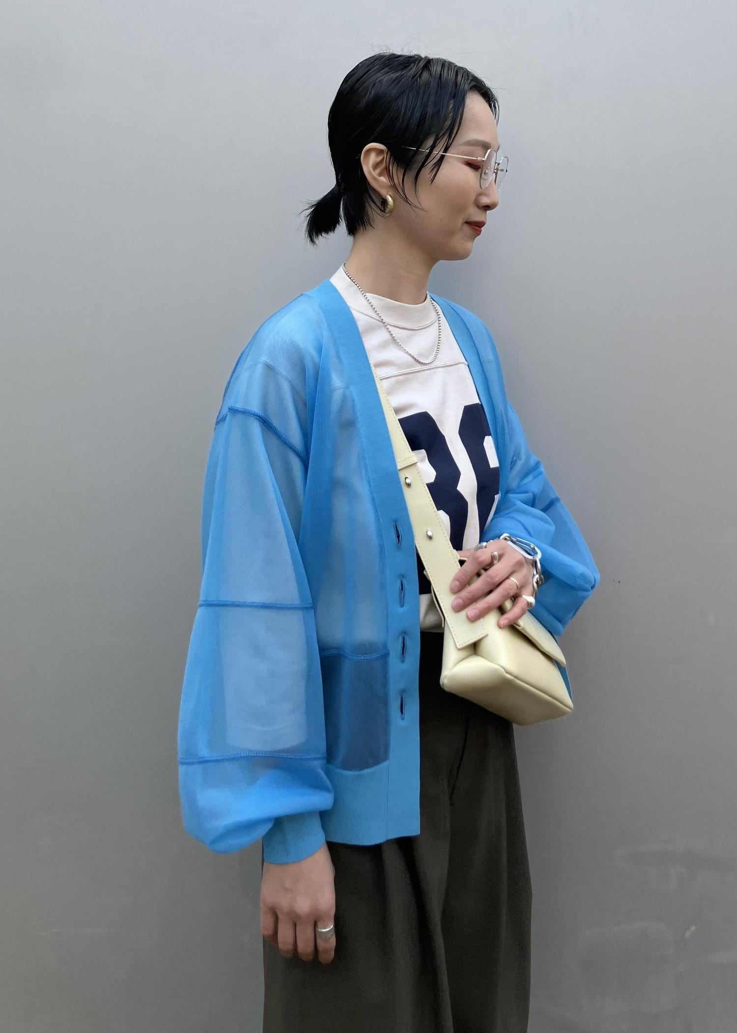 NEW! 予約ADAM ET ROPÉ FEMME【サステナブル】シアーロゴカーディガンブルー系 / F¥16,500レビュー毎シーズン人気のシアー素材。