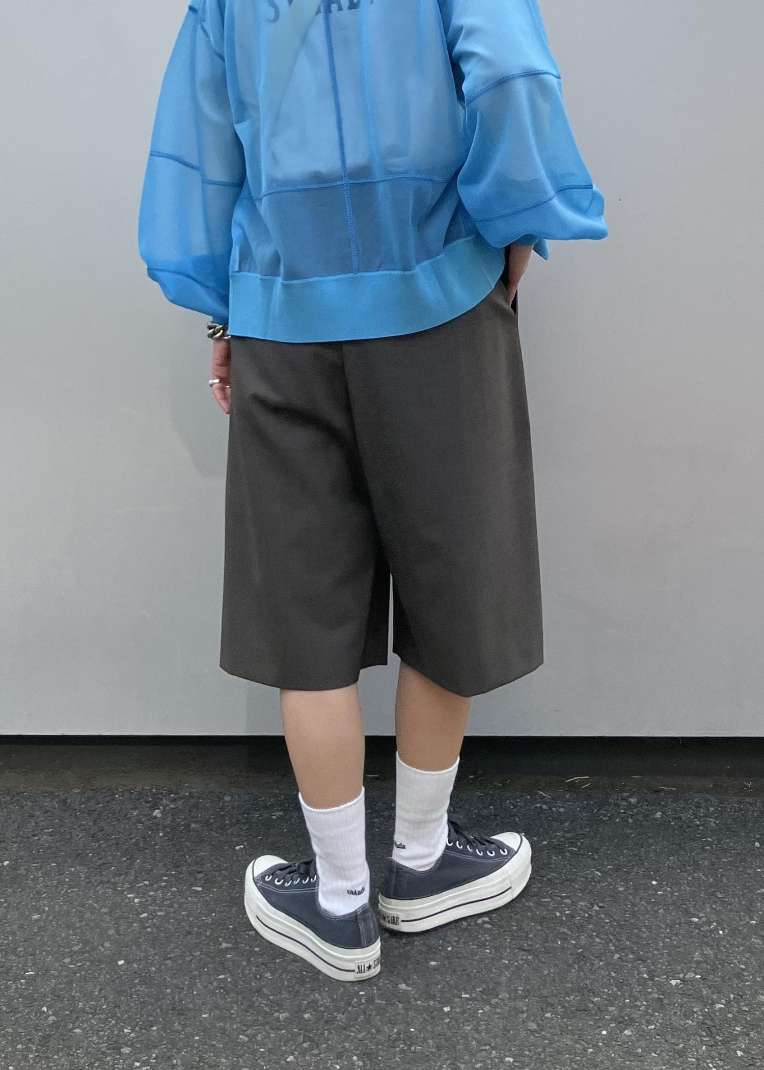 ハーフパンツは4月入荷予定、中に着ているTシャツは3月入荷予定となっております。