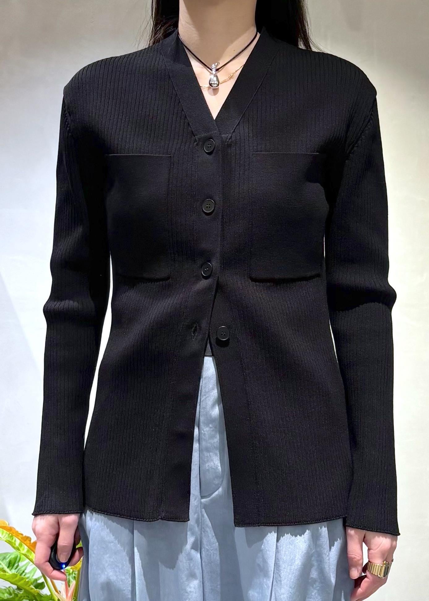 EMOELLE【EMOELLE】ポケットリブカーディガンブラック / F¥26,400レビュー程よい肉感のリブニットカーディガン。ニットジャケットのようなシルエットの綺麗さです。