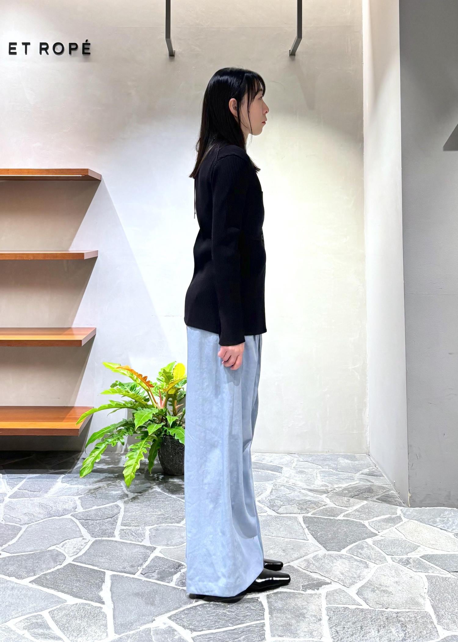 今回は大人気のドレスパンツとシンプルにスタイリングしました。