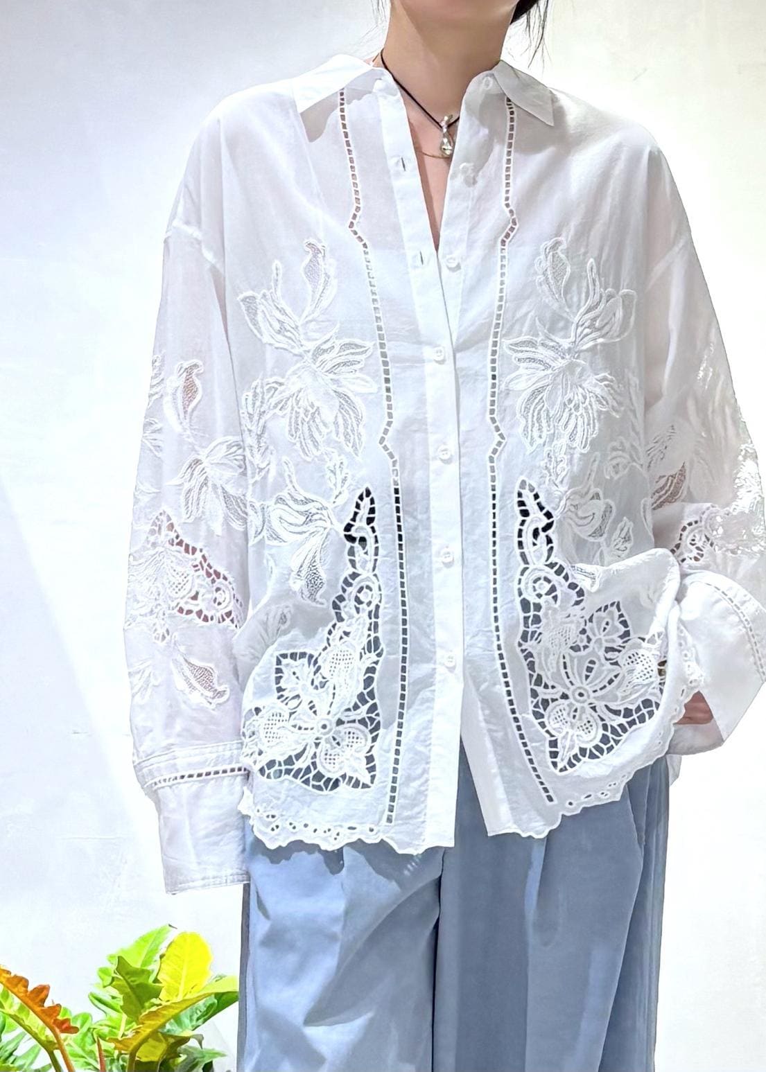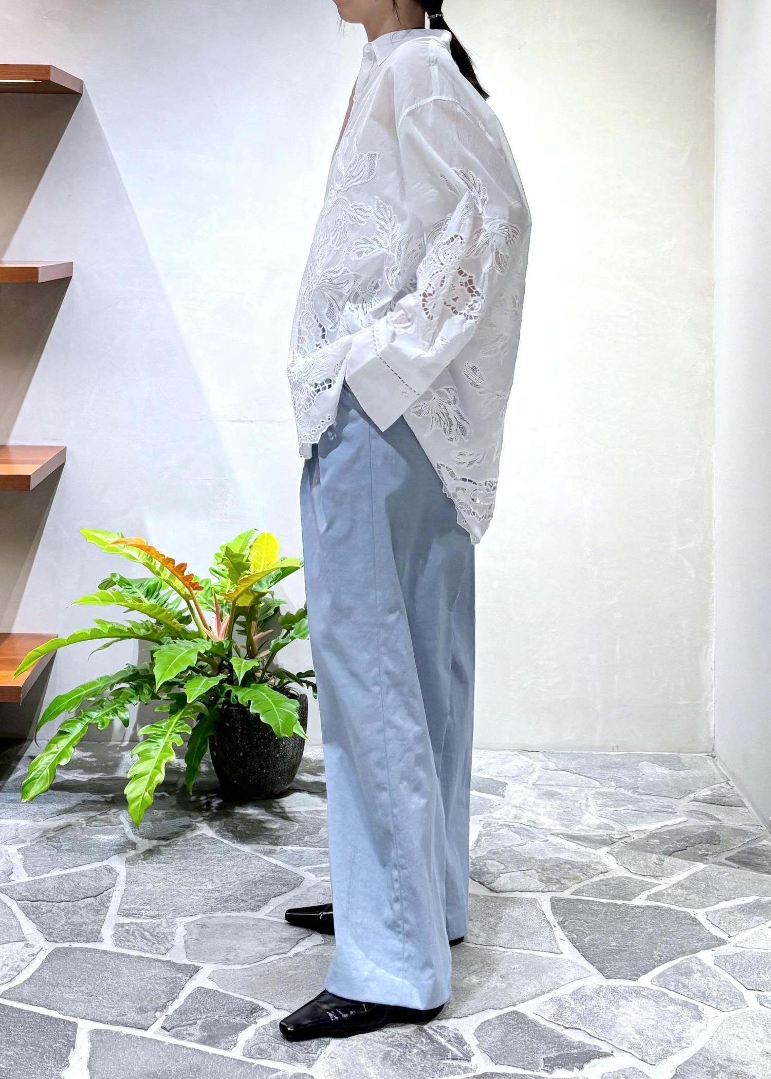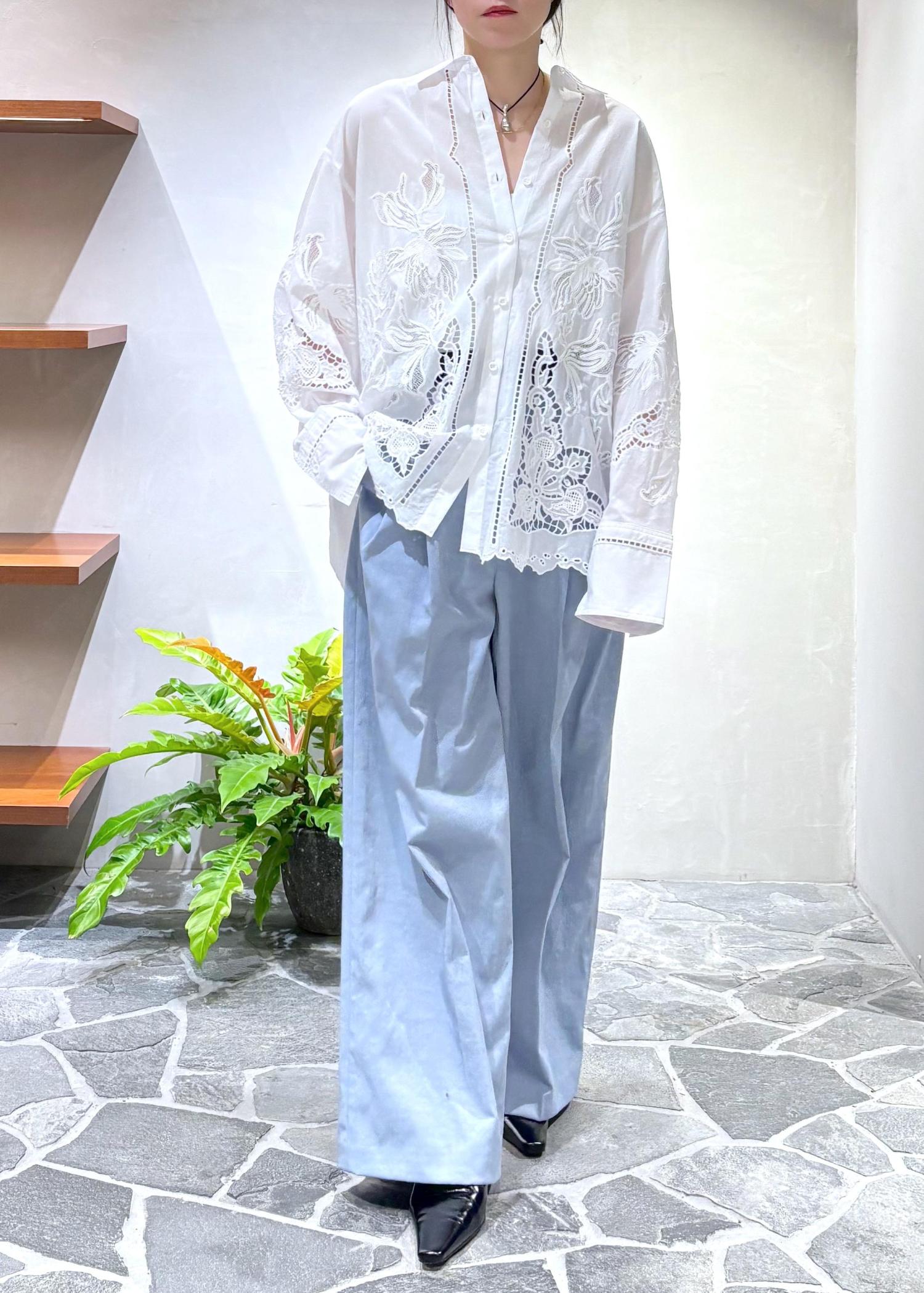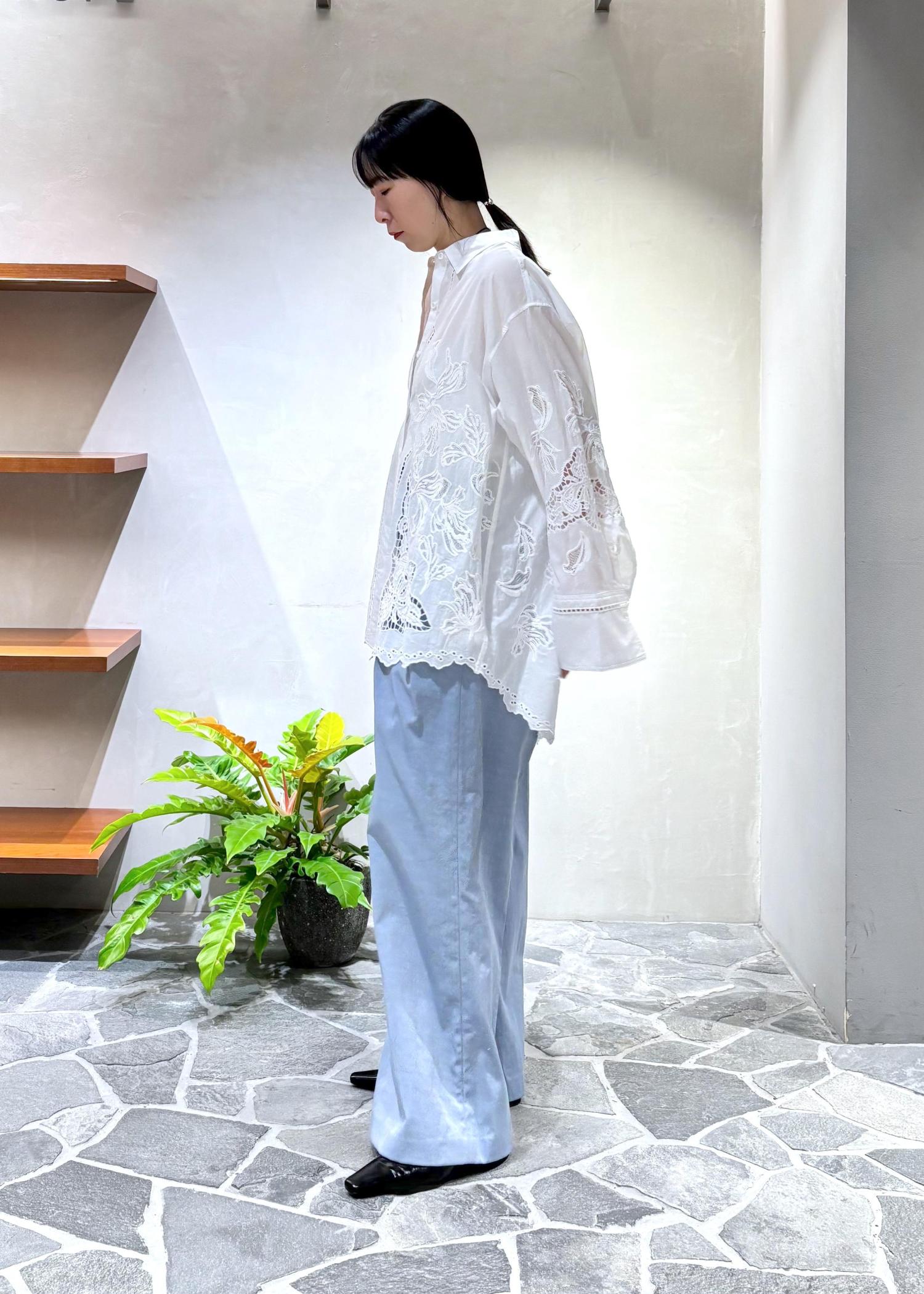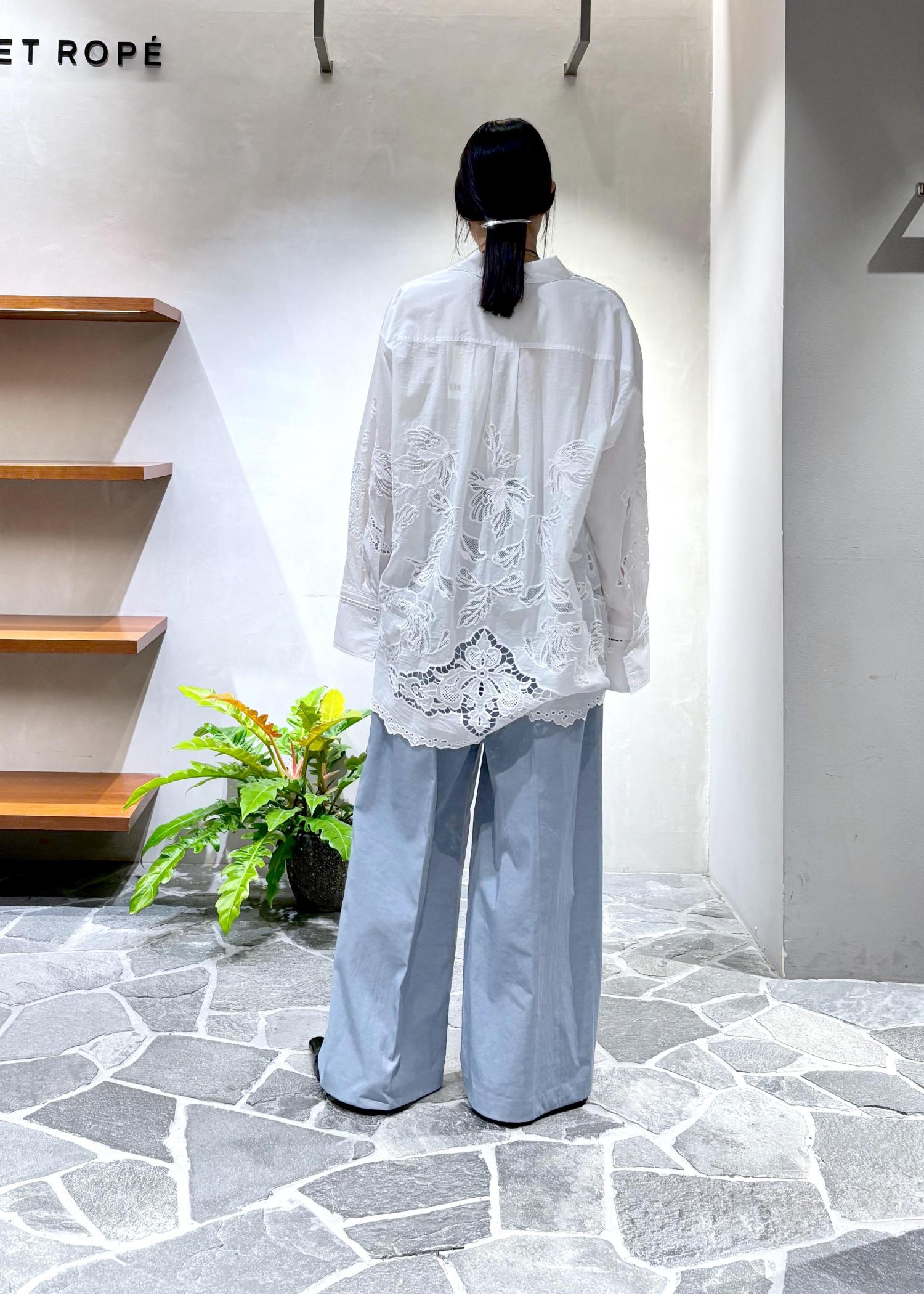 EMOELLE【EMOELLE】エンブロイダリーシャツホワイト / F¥29,700レビュー前後差のある、スカラップレースが可愛いボリュームシャツ。