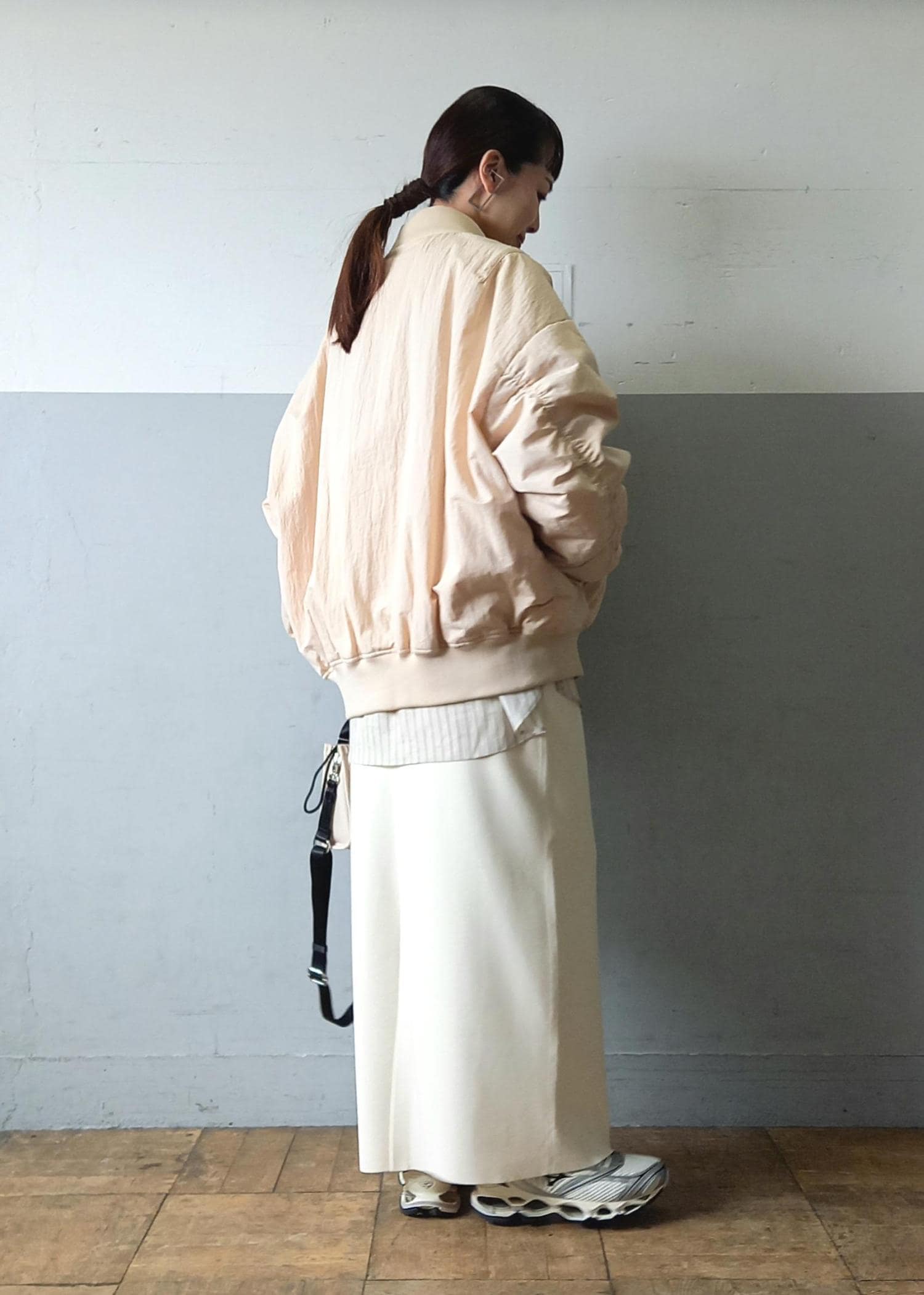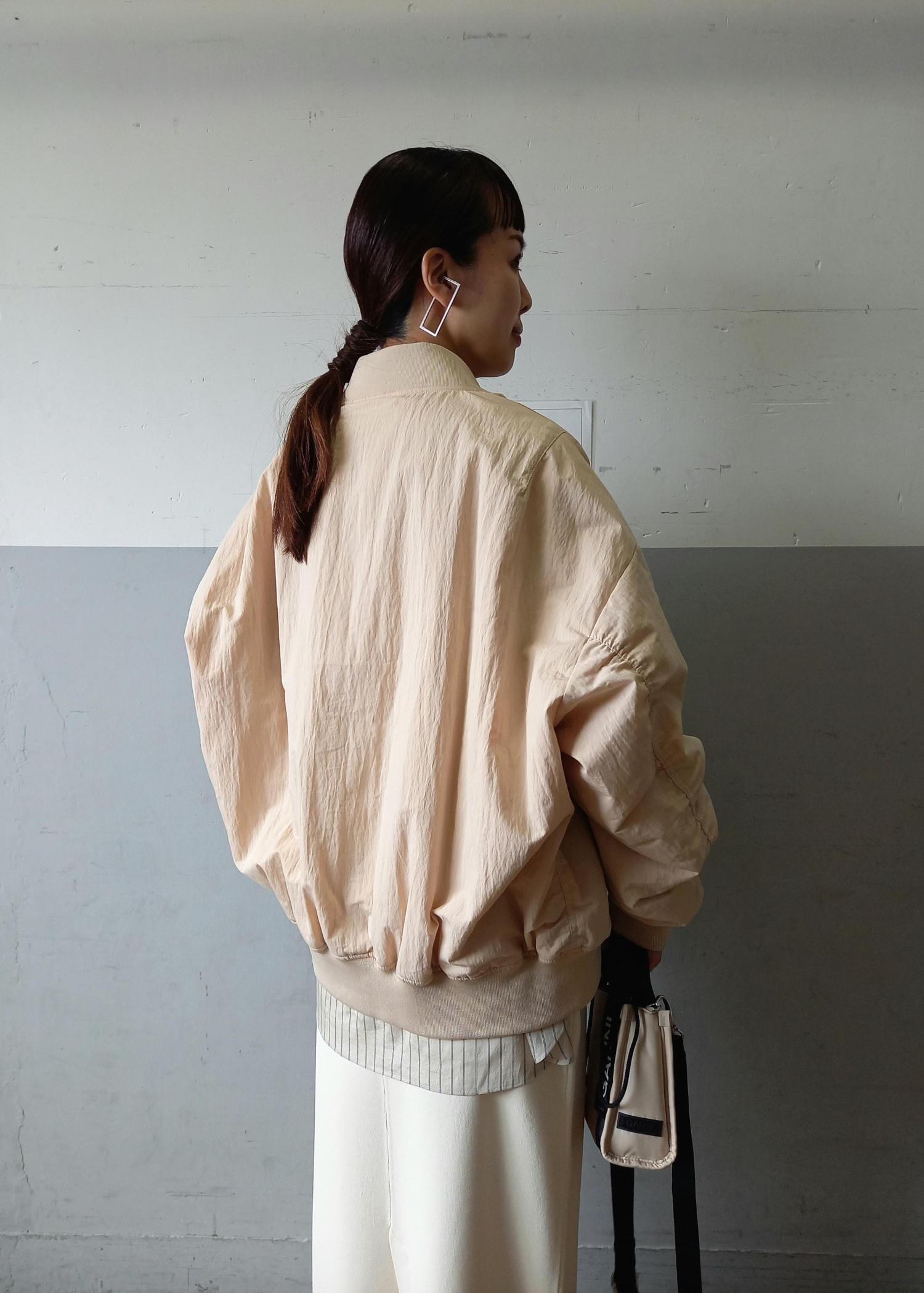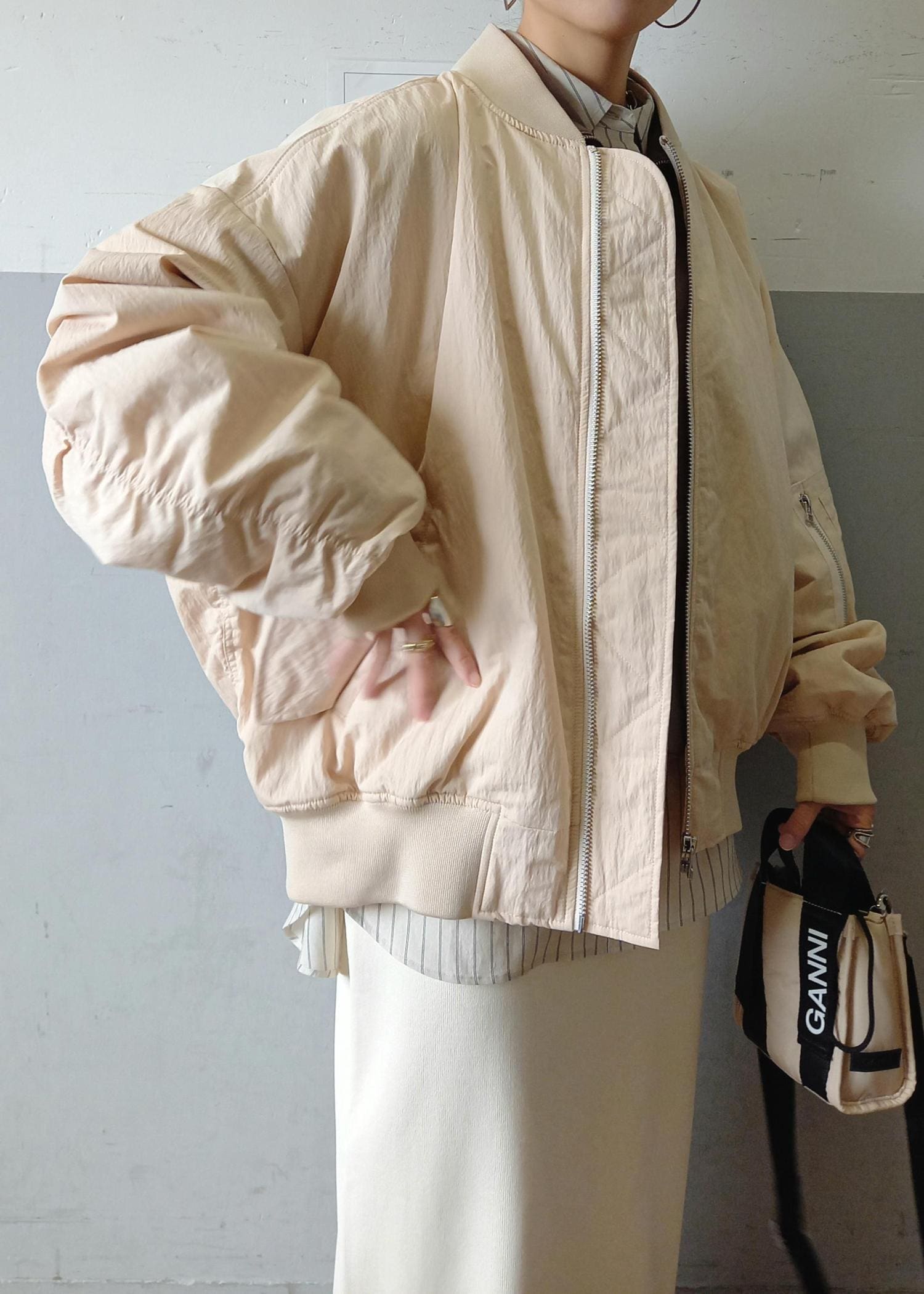 大きめのゆったりシルエットのMA-1なので、