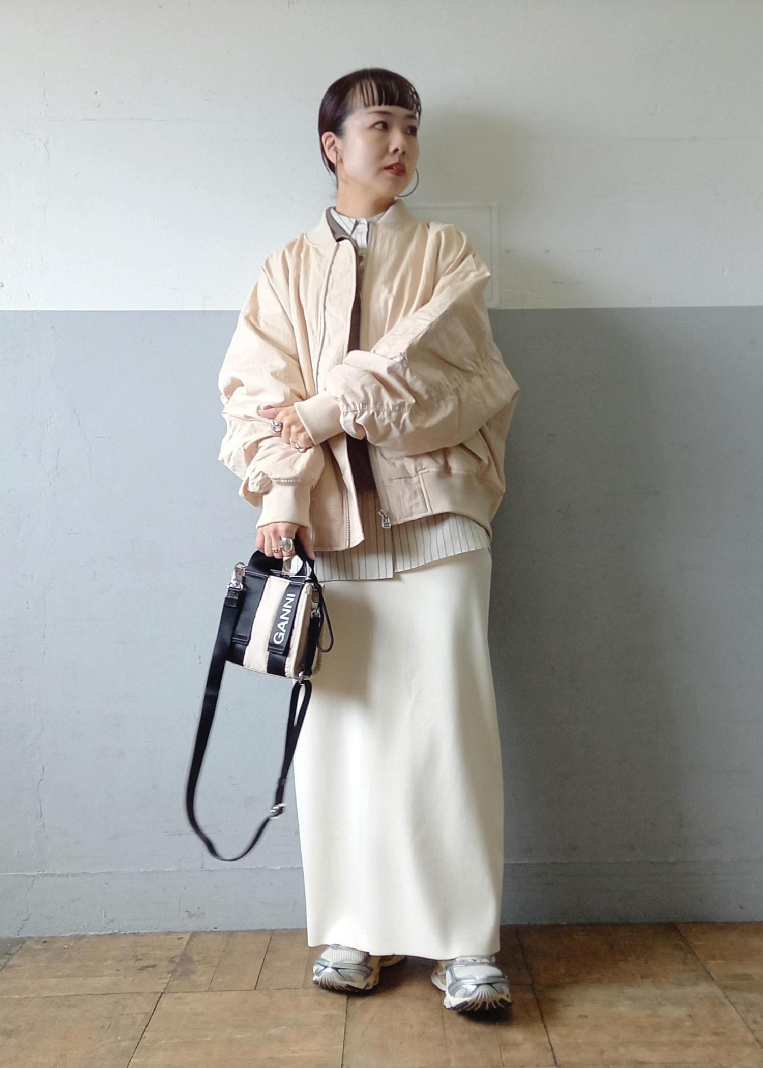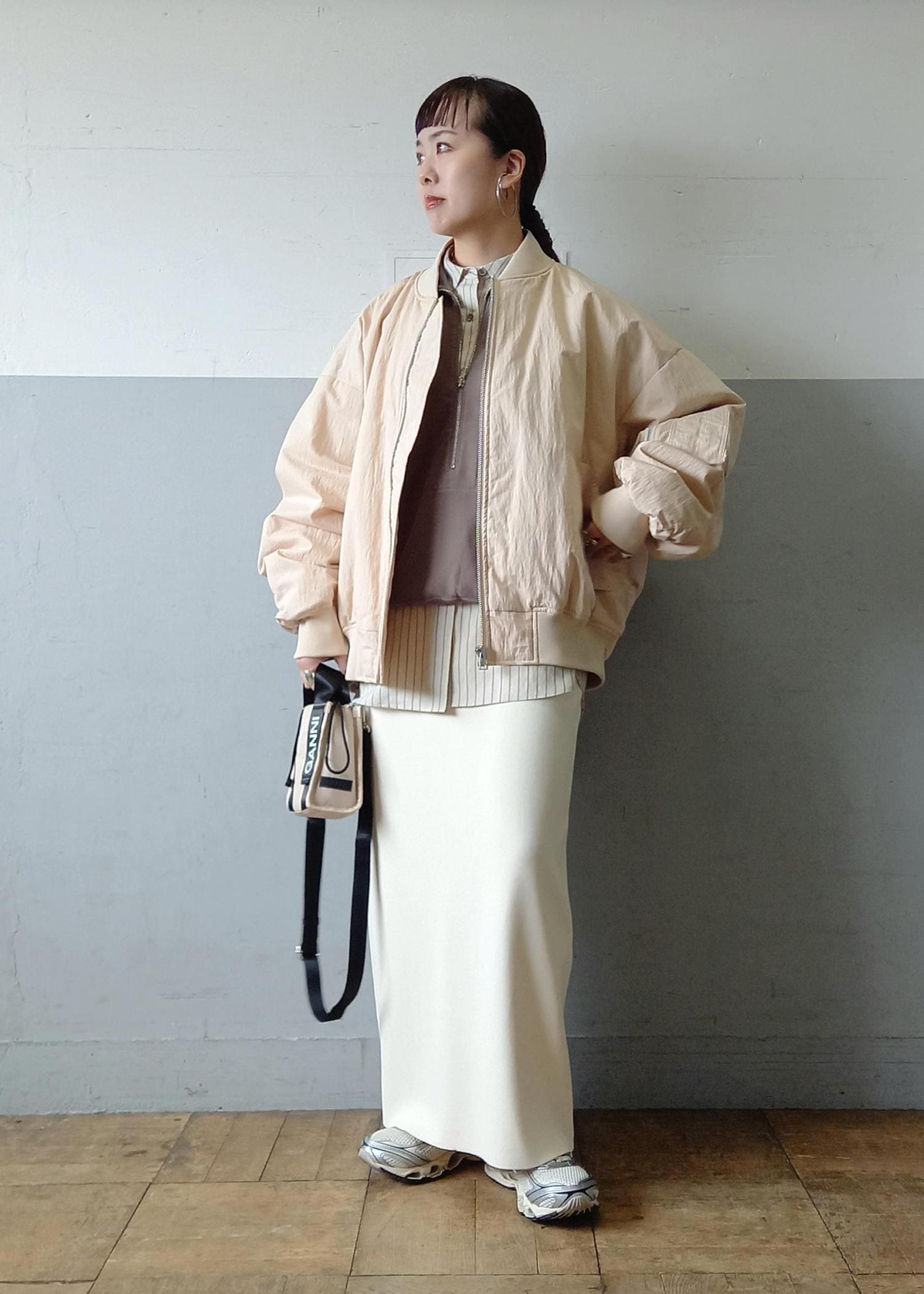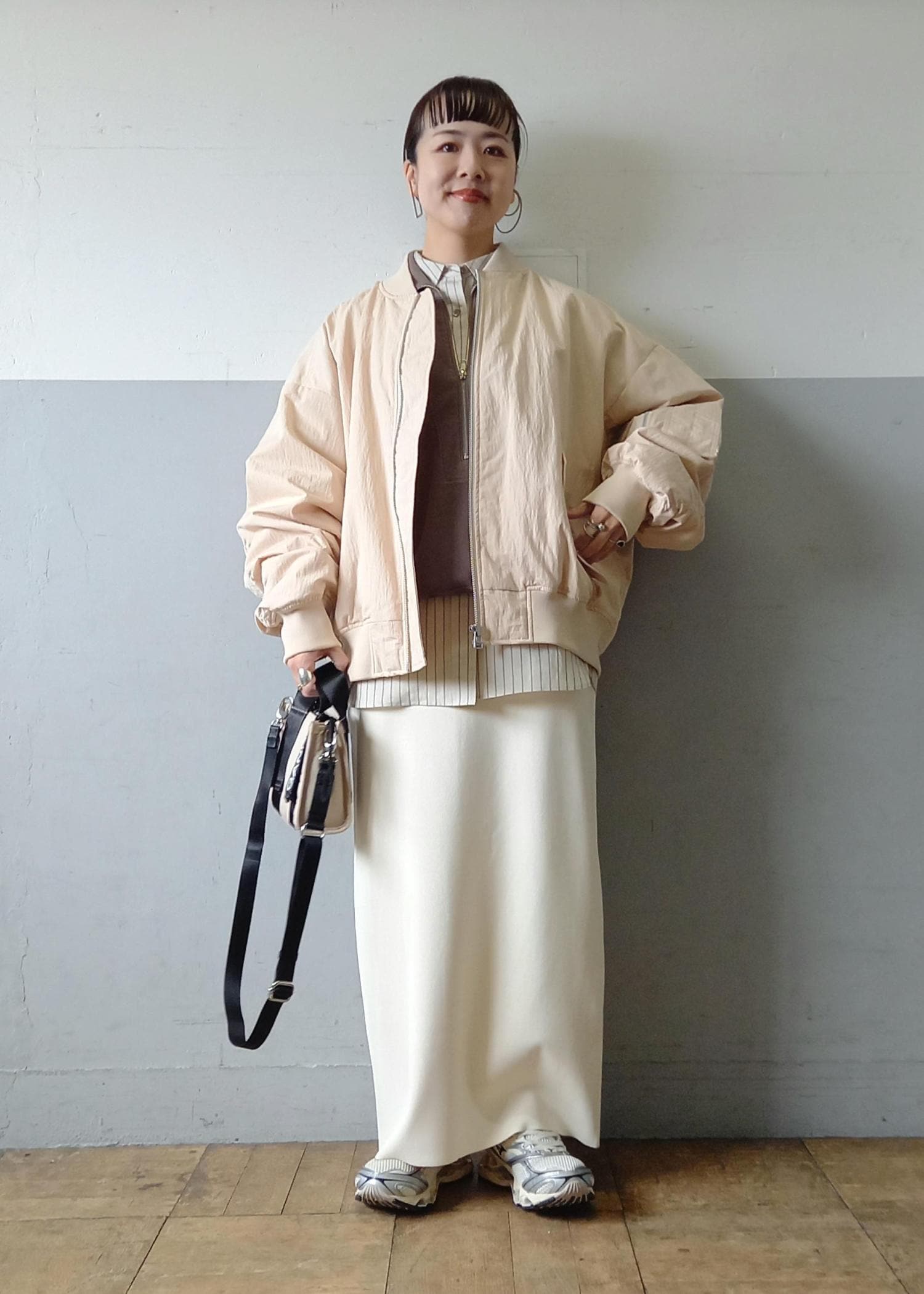大きめのゆったりシルエットのMA-1なので、