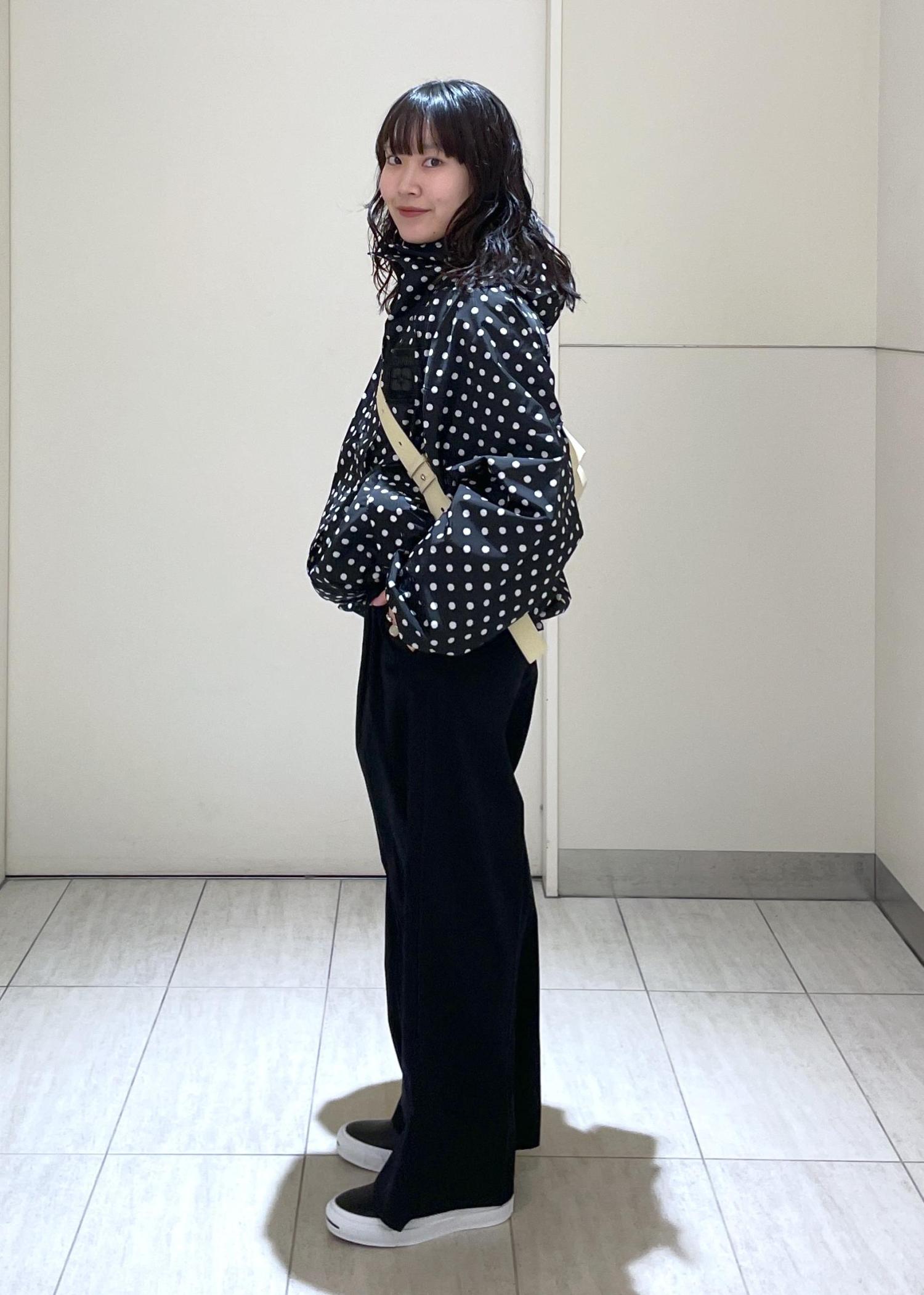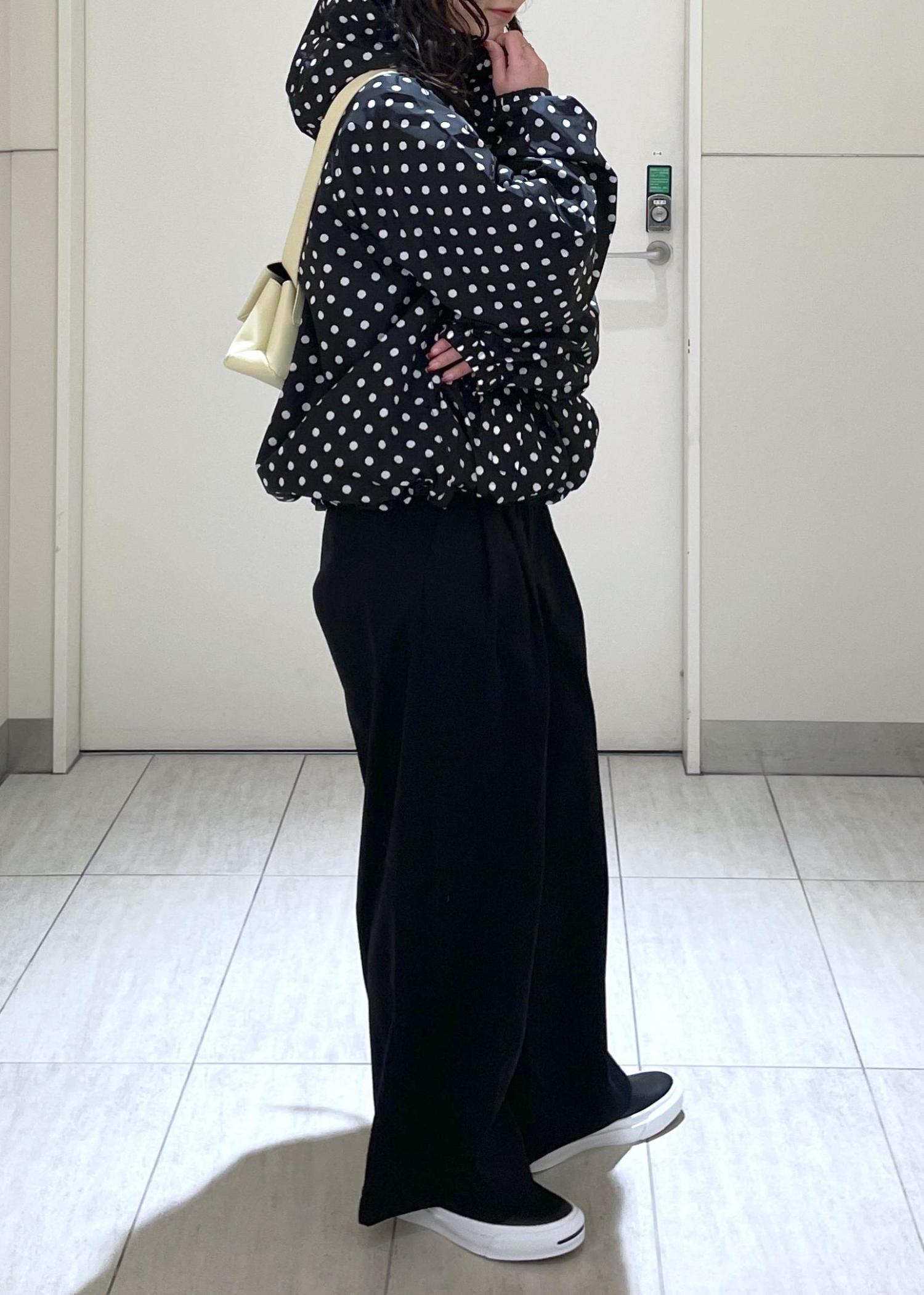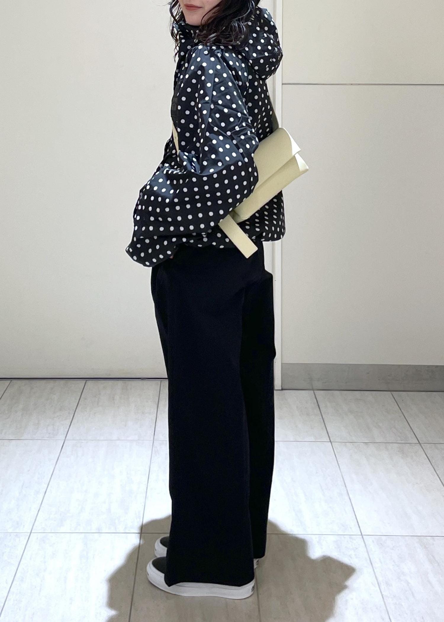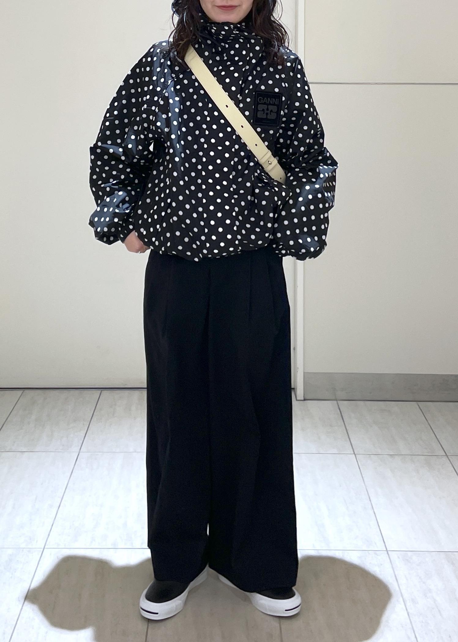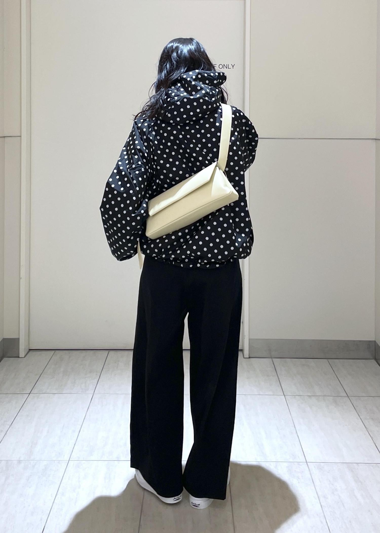 黒色でも重たくならないようにドット柄だったり少し光沢感があるアイテムを組み合わせてみました!