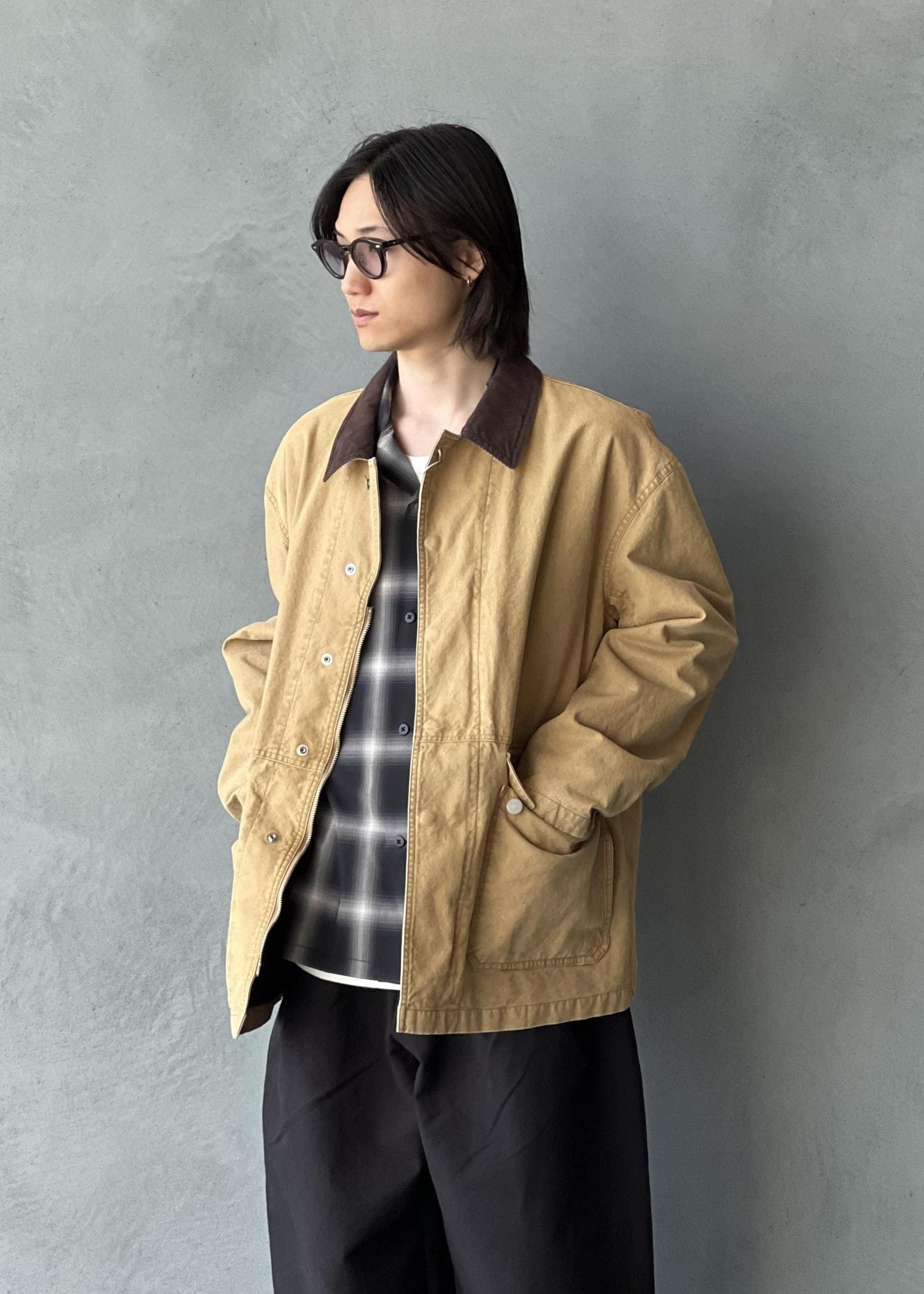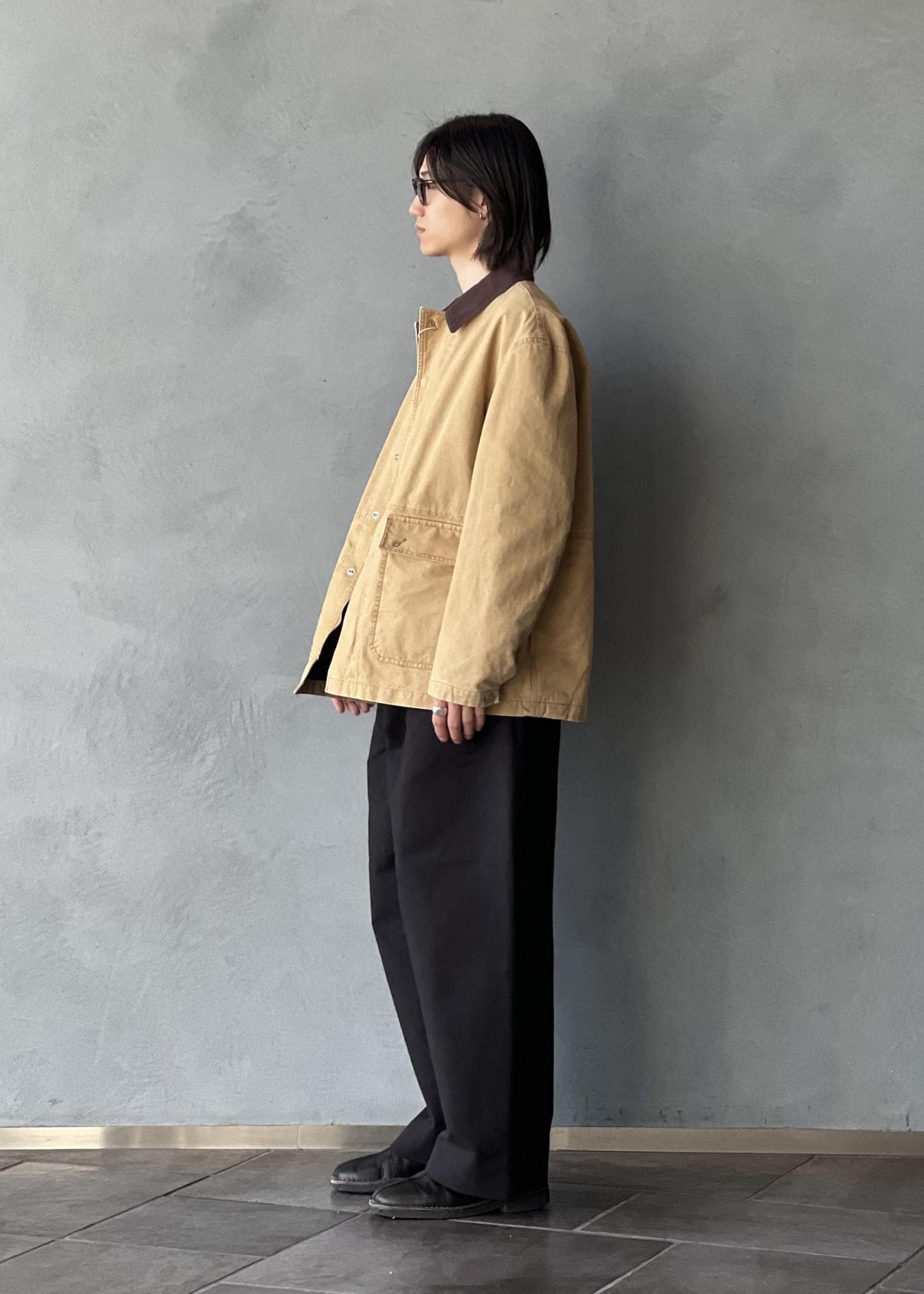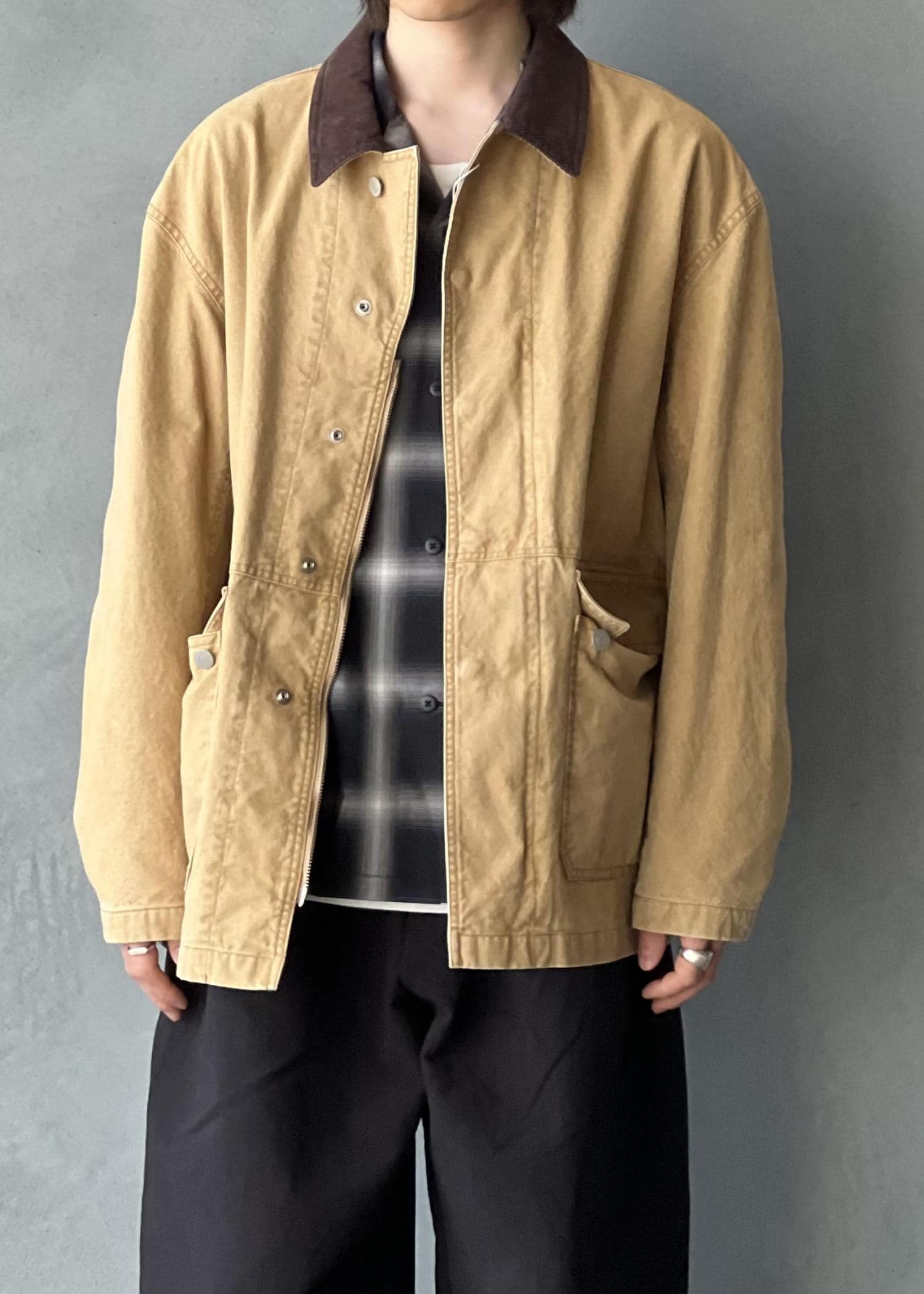 ゆったりとしていますがアームはそこまで太くなくテーパードもかかっています。ダック生地にコットンの裏地付き。