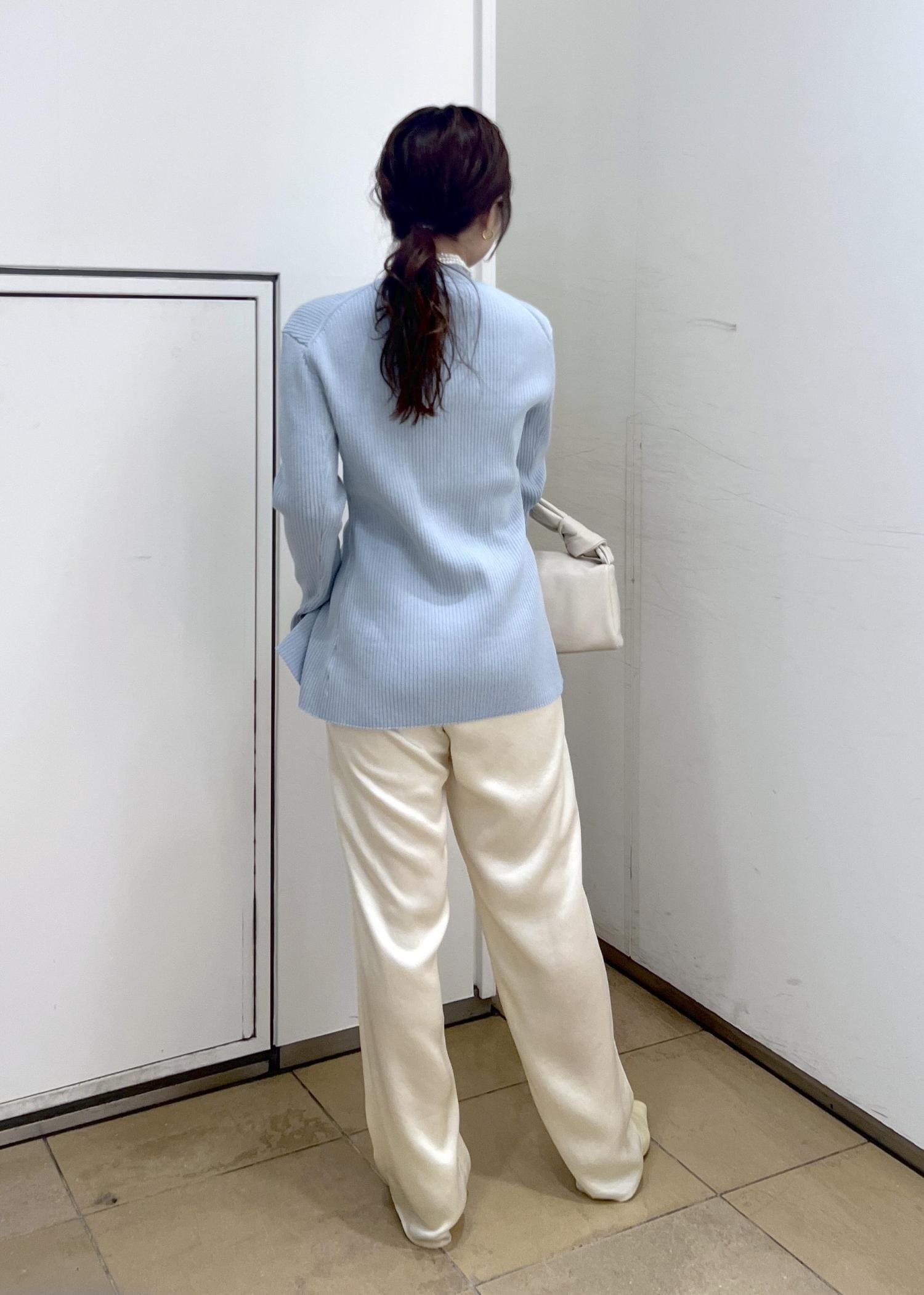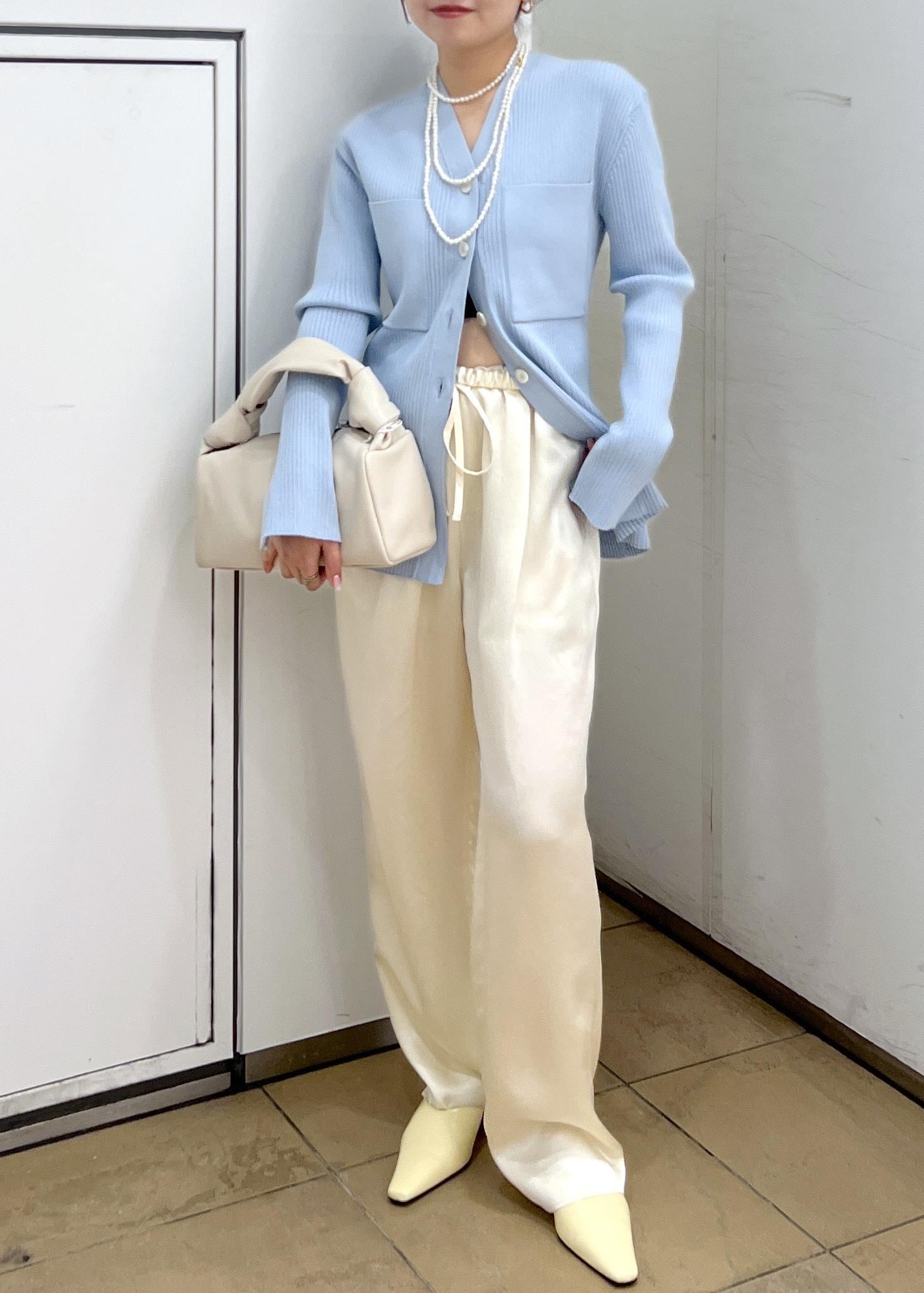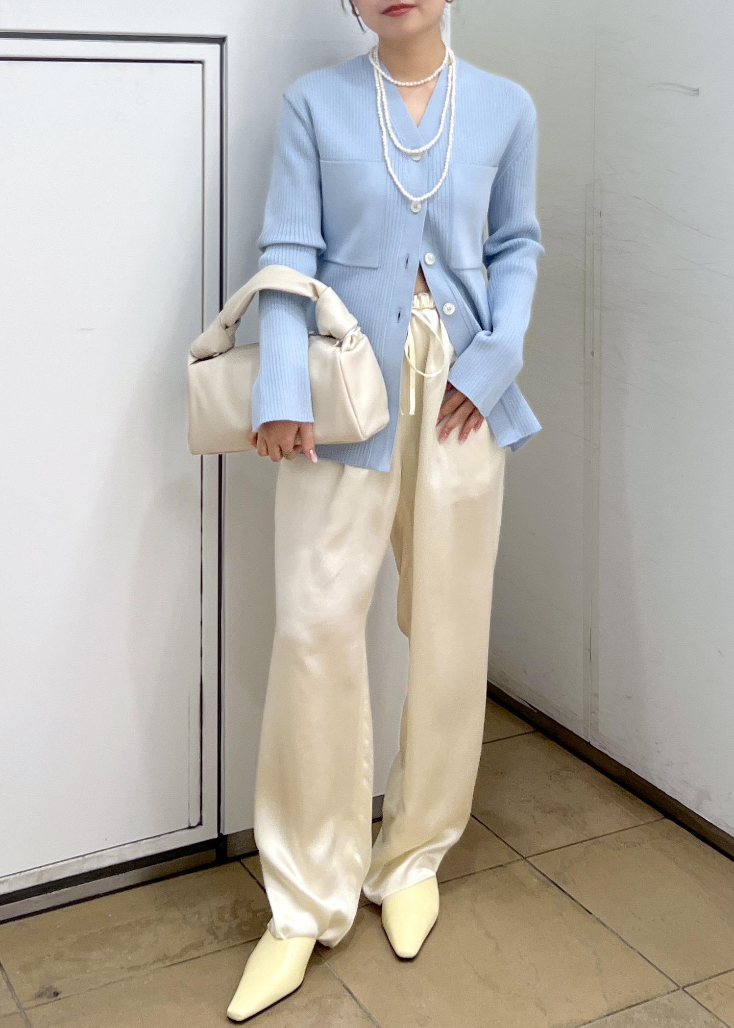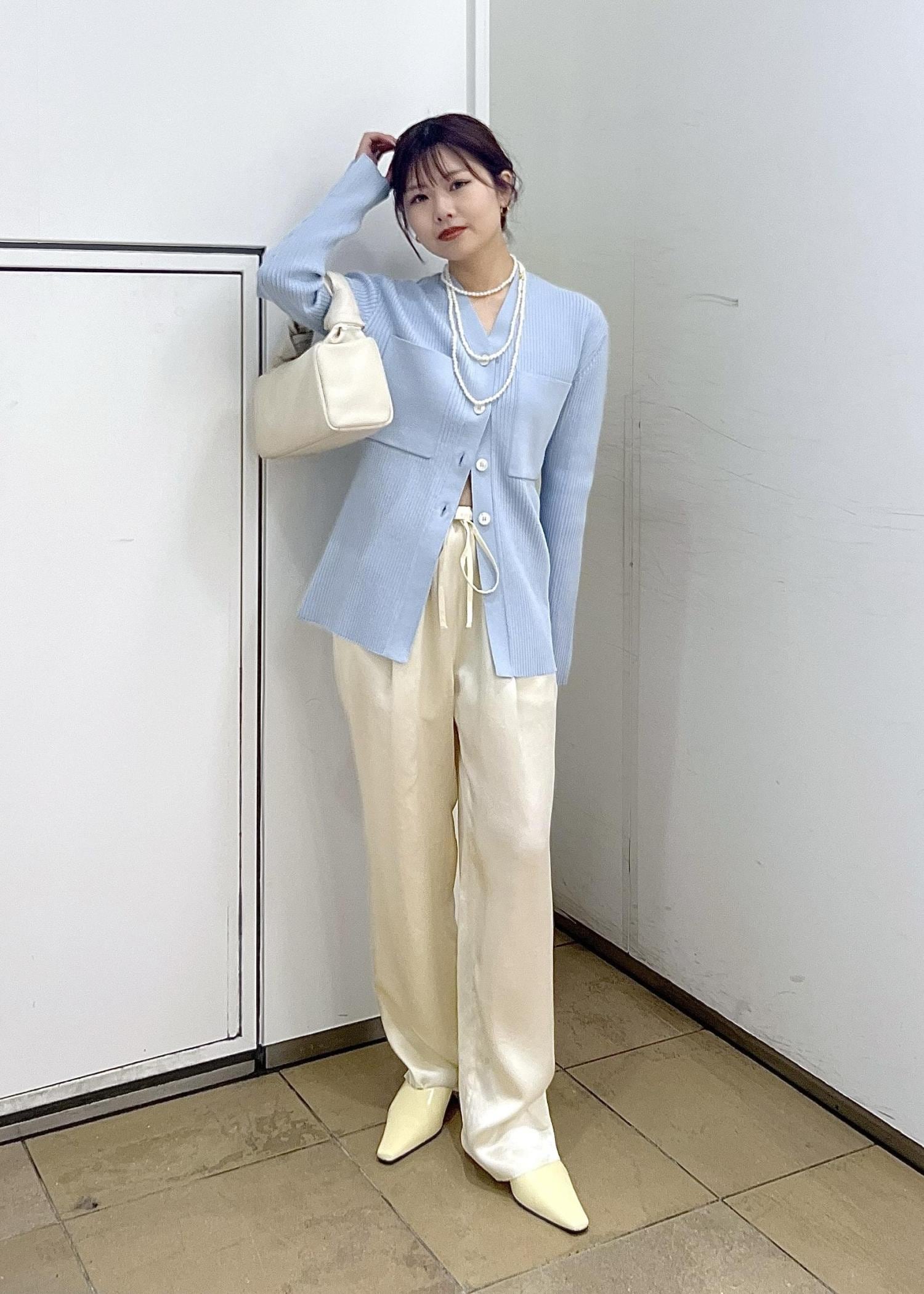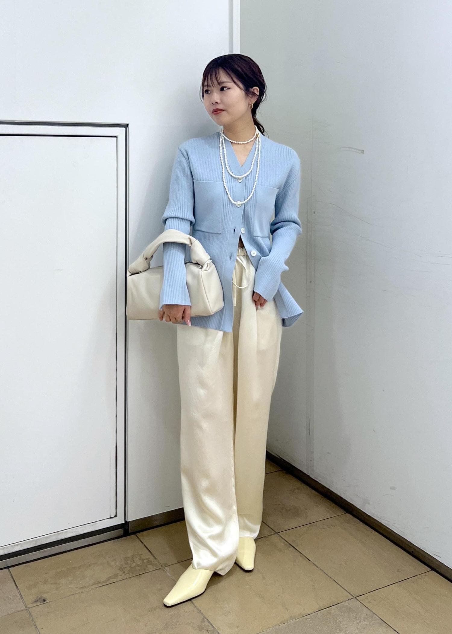 EMOELLE【EMOELLE】ポケットリブカーディガンサックス / F¥26,400レビューリアルバイ◎カーディガンでも、首元のVネックが広くないものを探してました!細見えするリブニットです◎