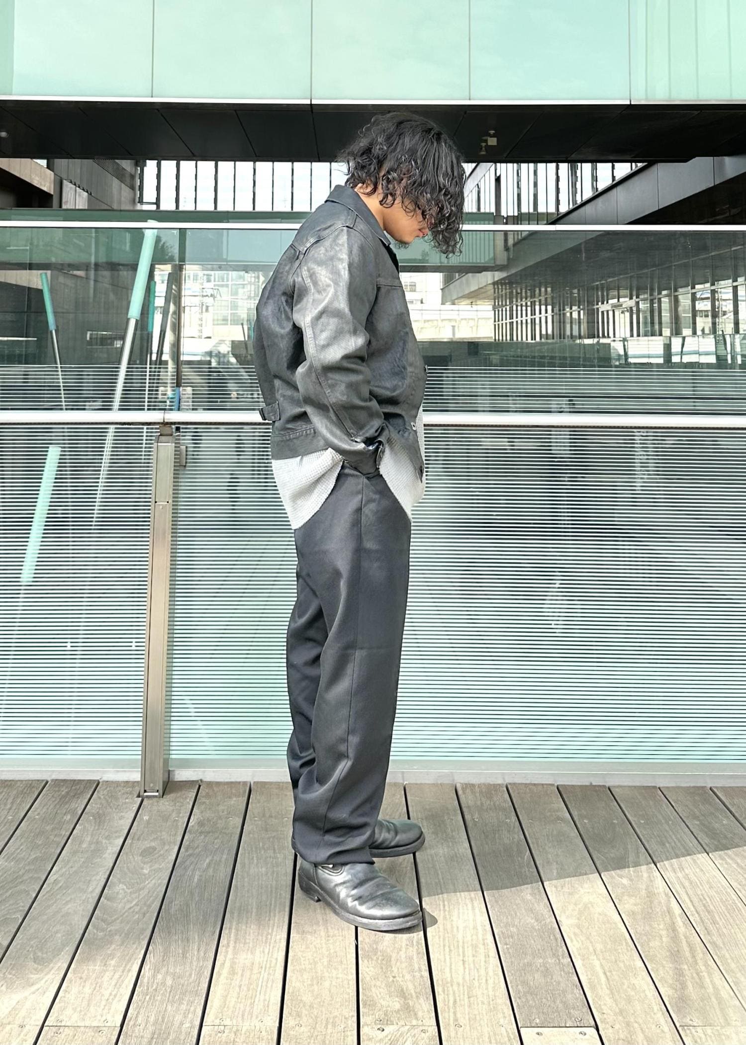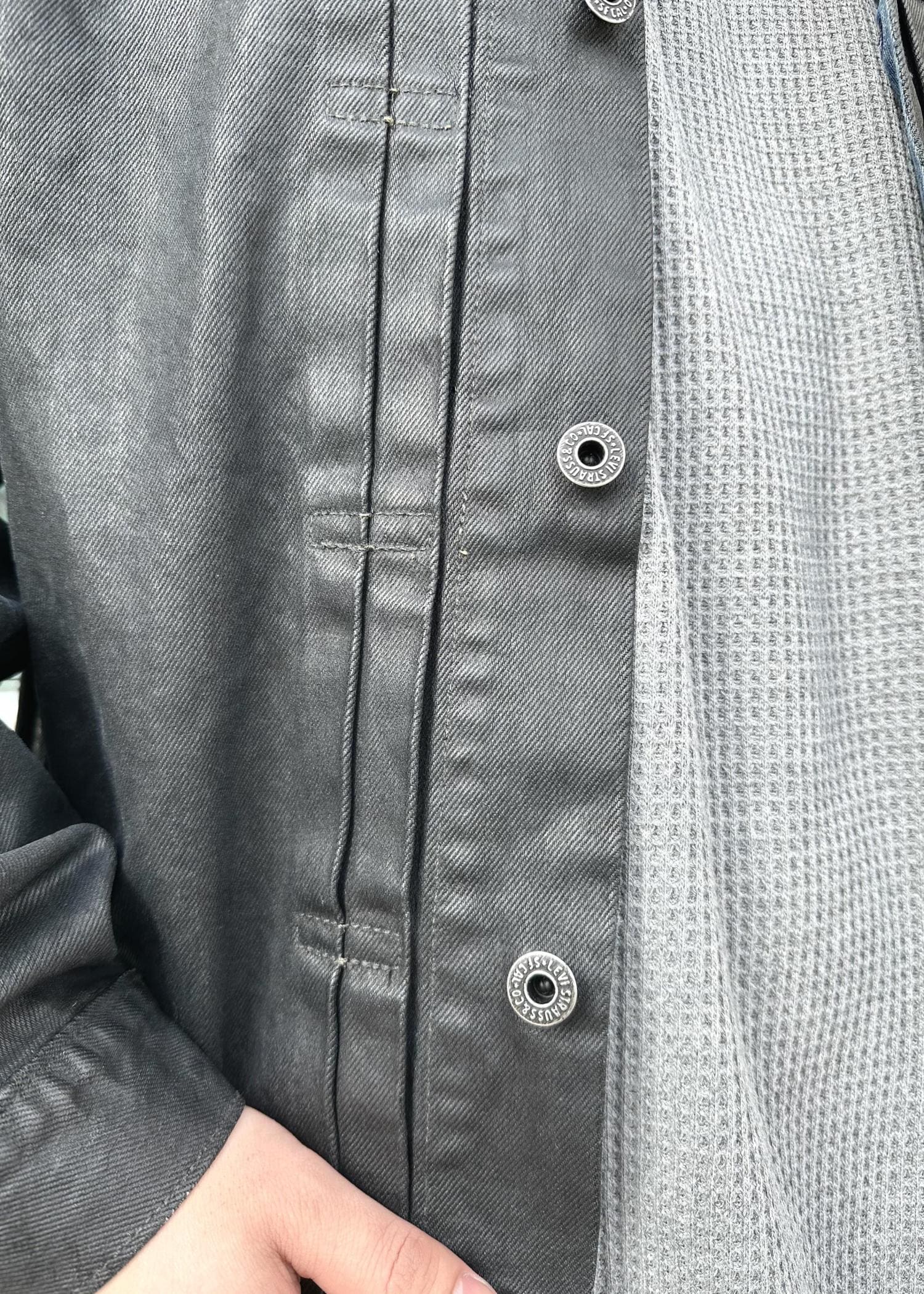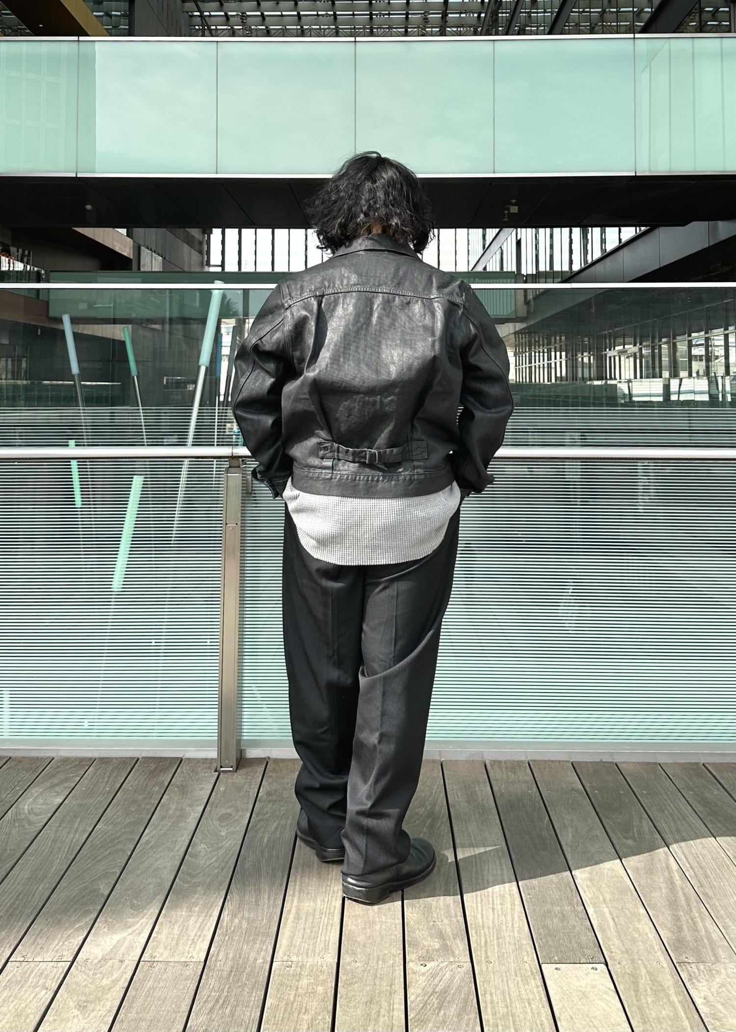 ウォッシュをかけたヴィンテージ風のライトインディゴカラーにブラックの PUコーティングを施すことで、伝統的かつ前衛的でコンテンポラリーな風合いを表現。