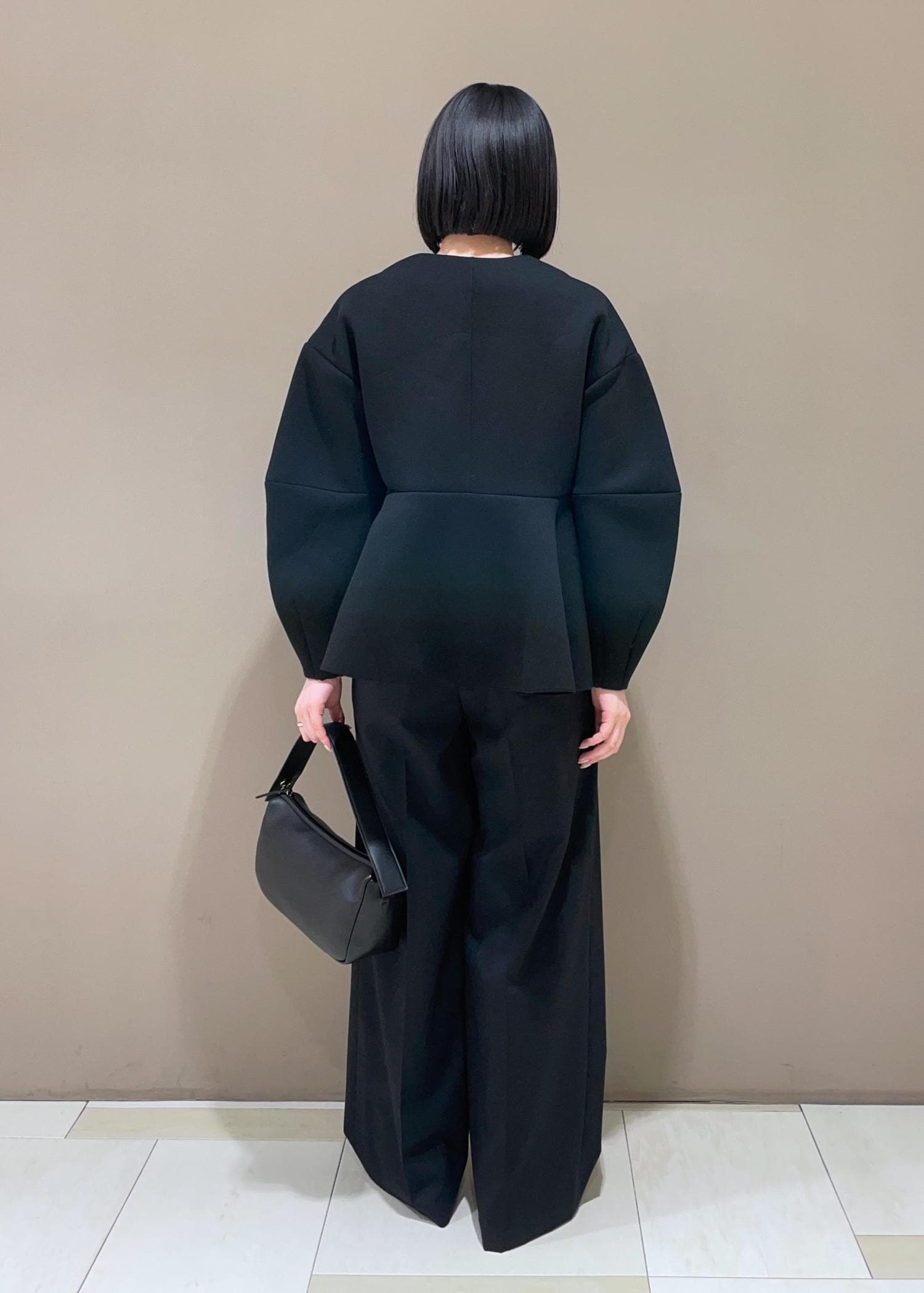 ADAM ET ROPÉ FEMMEエッグブローチ付きペプラムカーディガンブラック / F¥17,930レビューとにかく軽い◎ゆとりがあるので、中にしっかり着込んで春アウターとしてもお使いいただけます!高めの位置からふわっと広がるペプラムでスタイルアップ効果も◎
