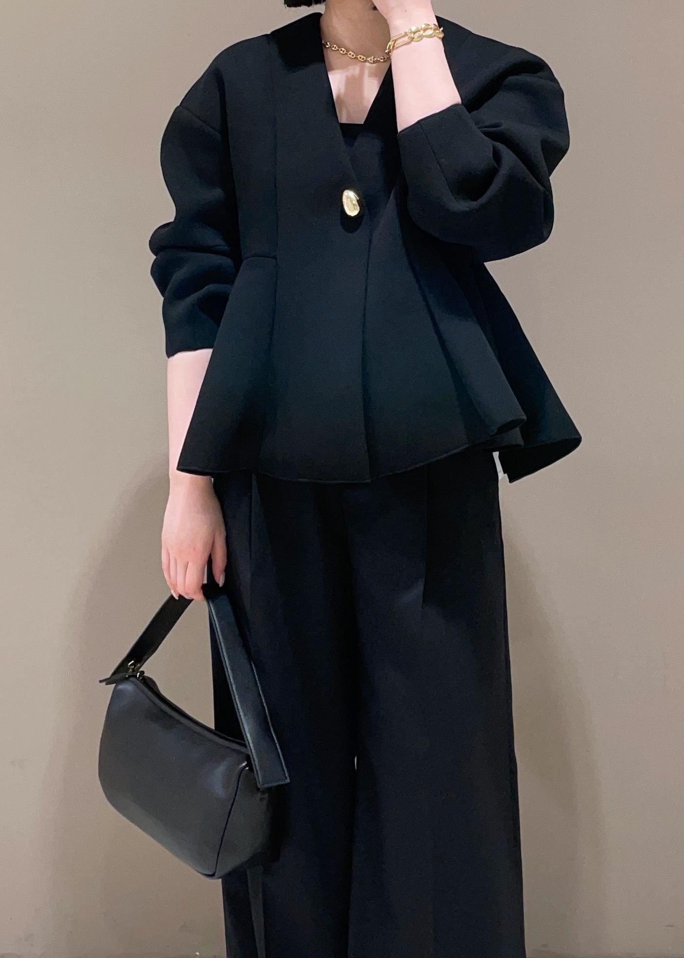 高めの位置から広がるペプラムでスタイルアップ効果抜群◎