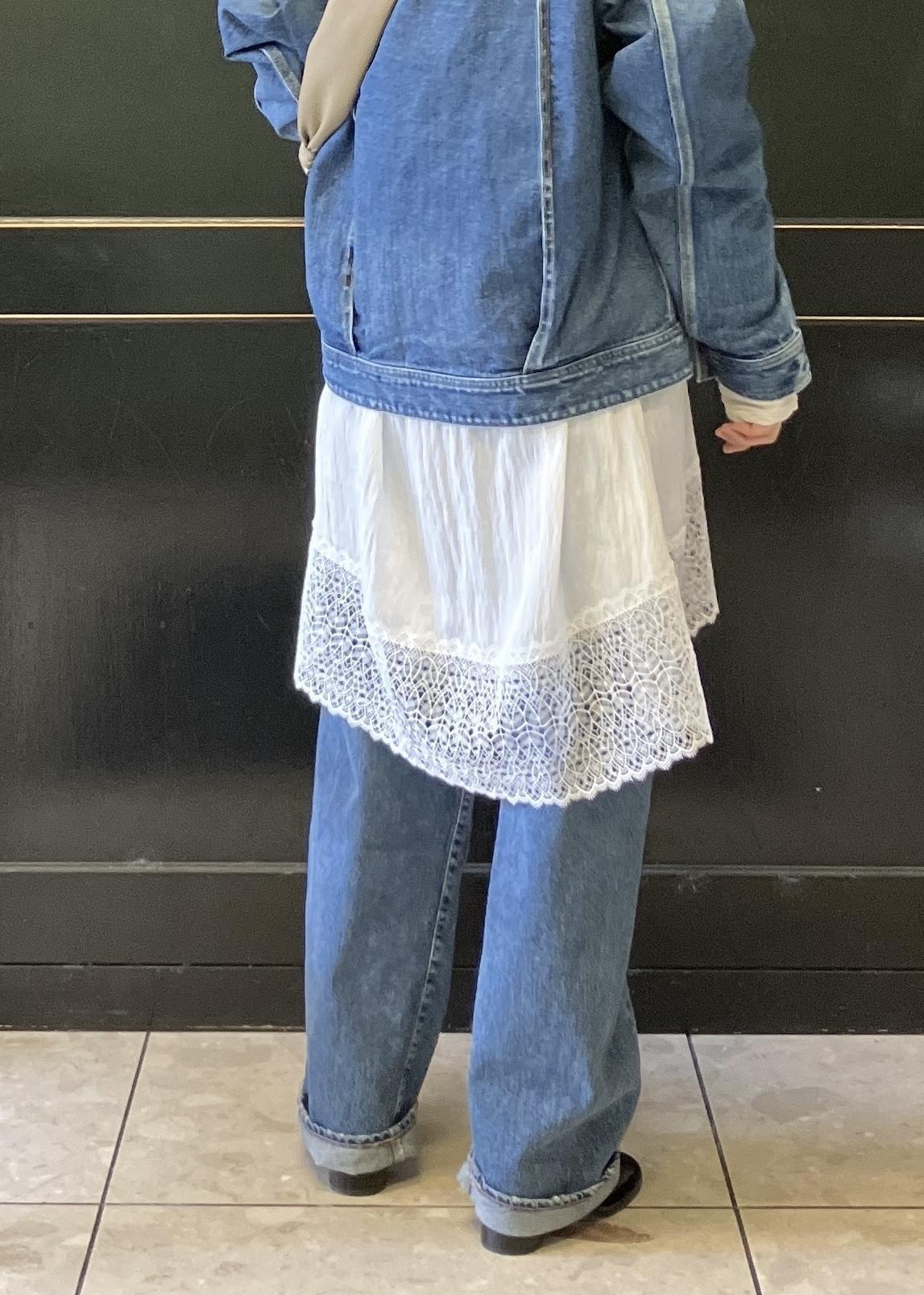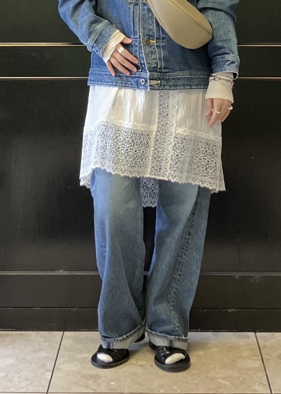 今回はデニムと、トレンドのレースを使ってスタイリング
