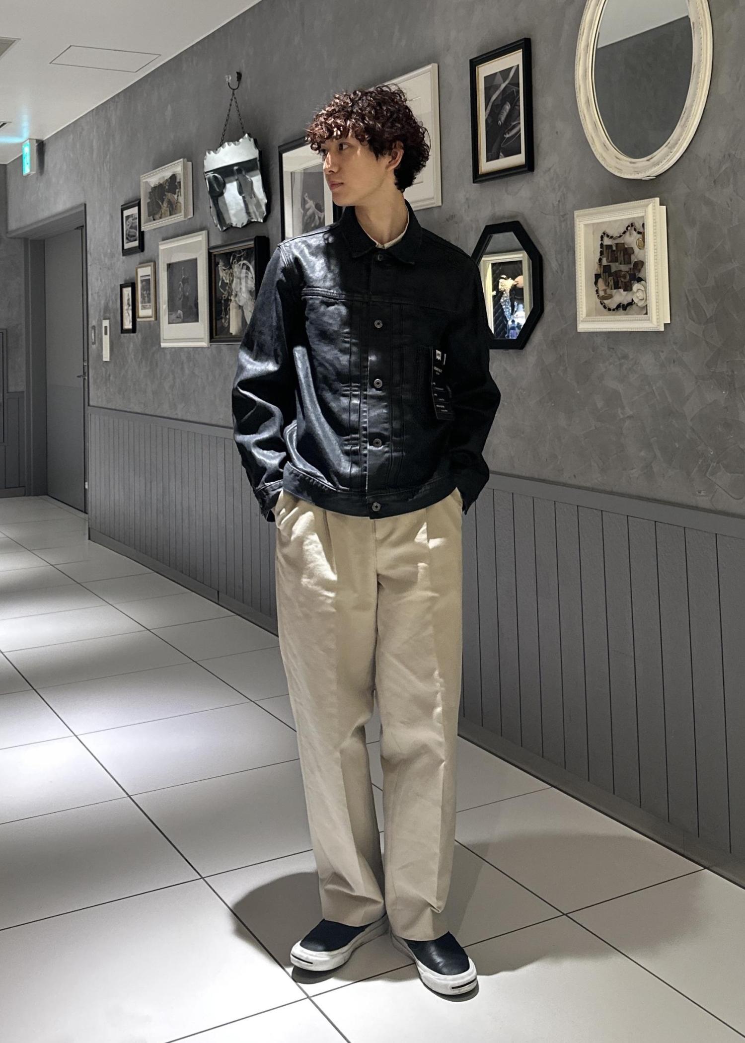 「Levi's(R)」の代表作の一つである"TYPE1 TRUCKER JACKET"を現代的に再解釈したモデルがベース。手作業で一点一点加工を施したブラックのPUコーティングが最大の別注ポイントです。
