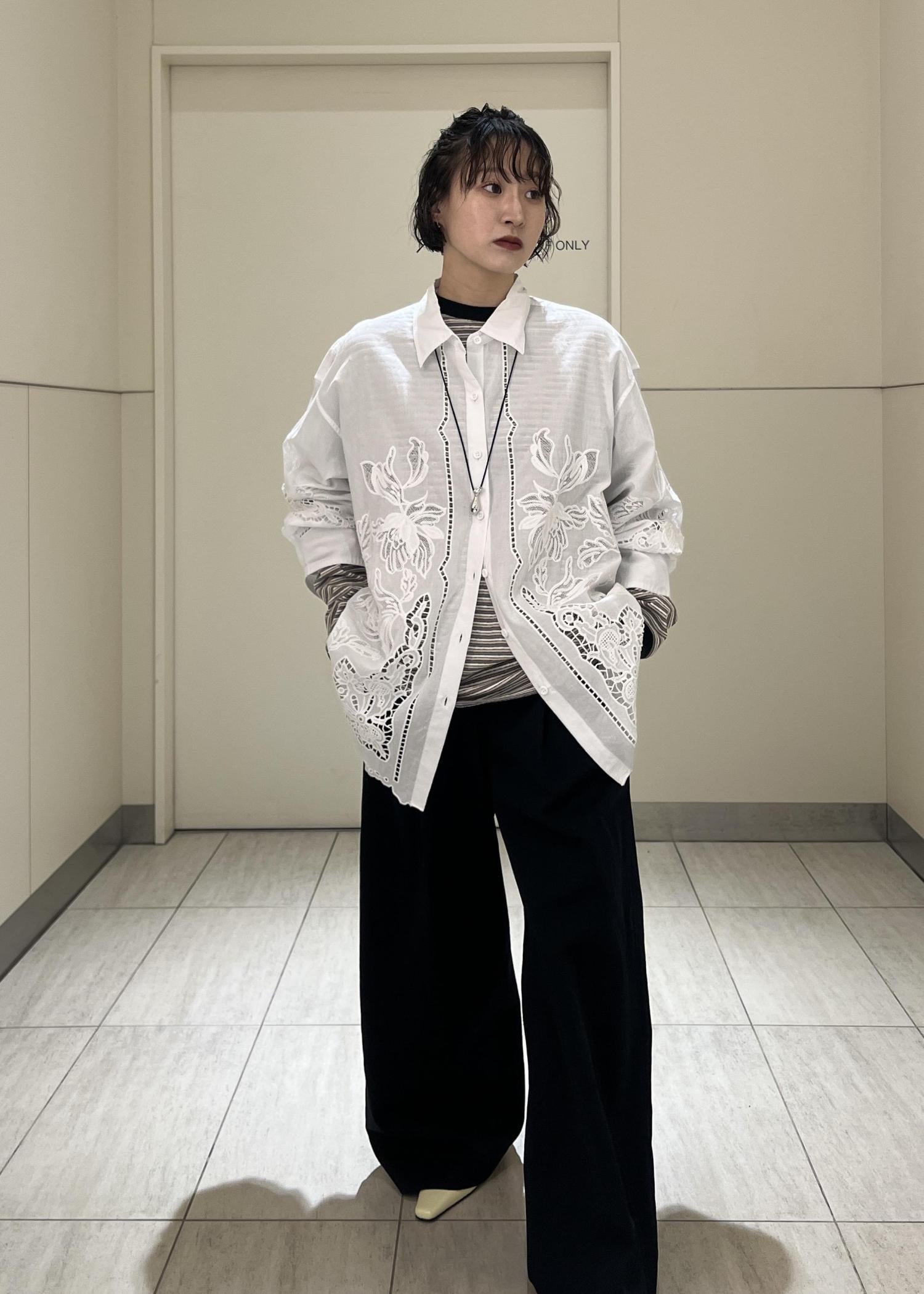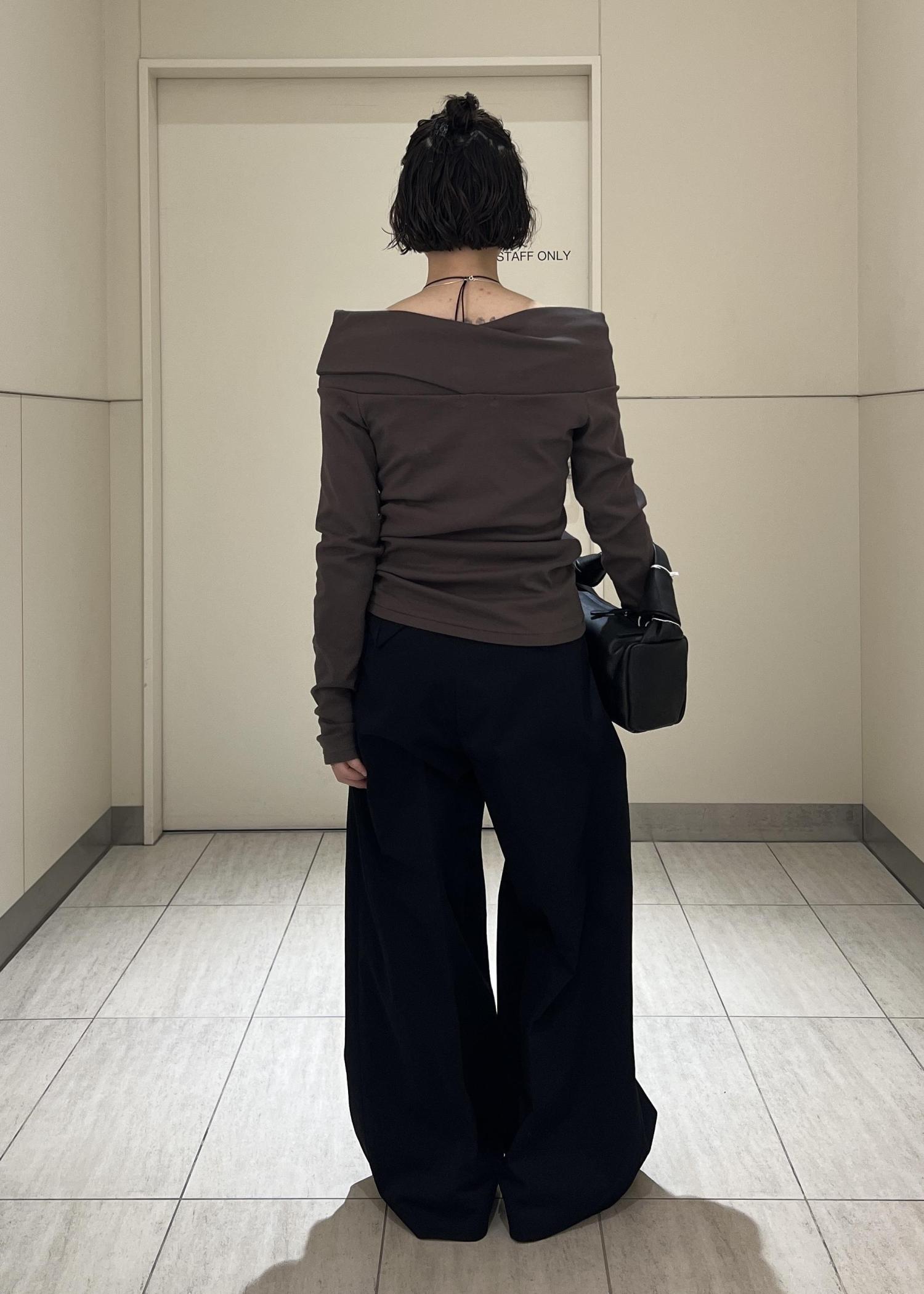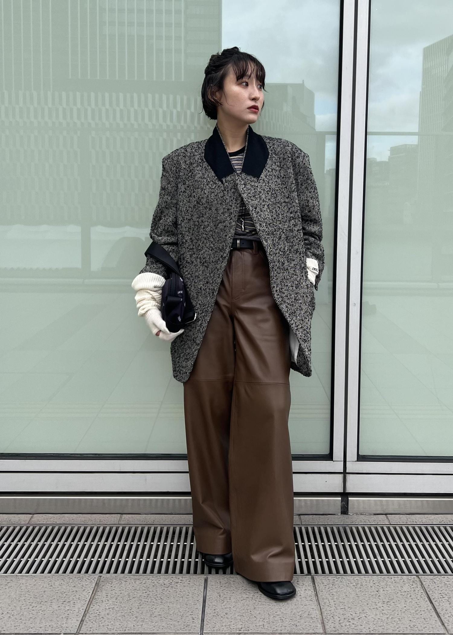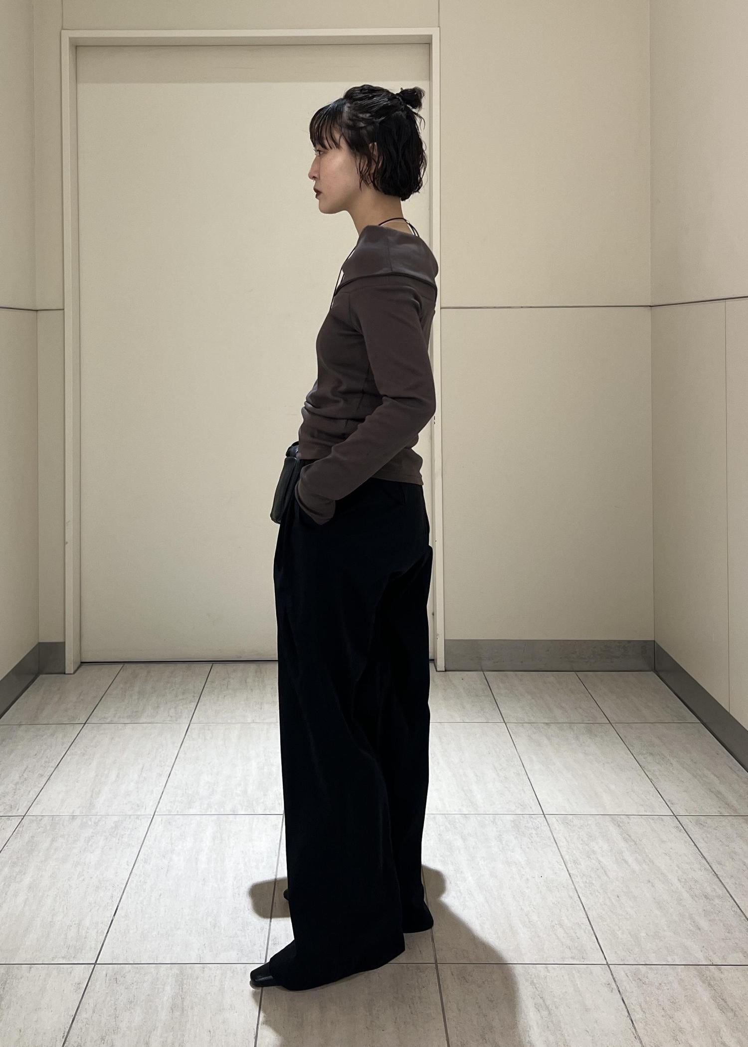 同じ、EMOELLEのスラックスと合わせ綺麗目にコーディネートに!