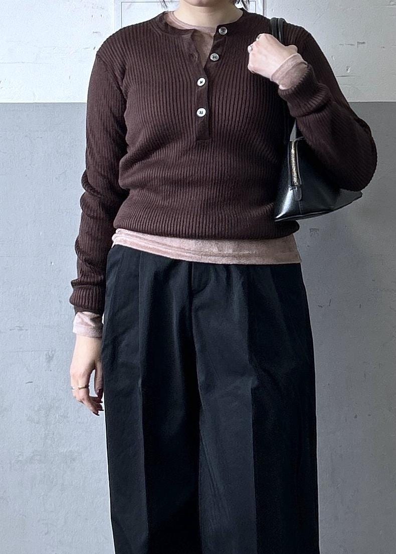 ADAM ET ROPÉ FEMME【BATONER for ADAM ET ROPE'】別注CHOMA RIB HENLEY NECKブラウン / 2¥33,000レビューコンパクトなシルエットですが、窮屈感のないサイズ感なのでストレスフリーに着ていただけます。