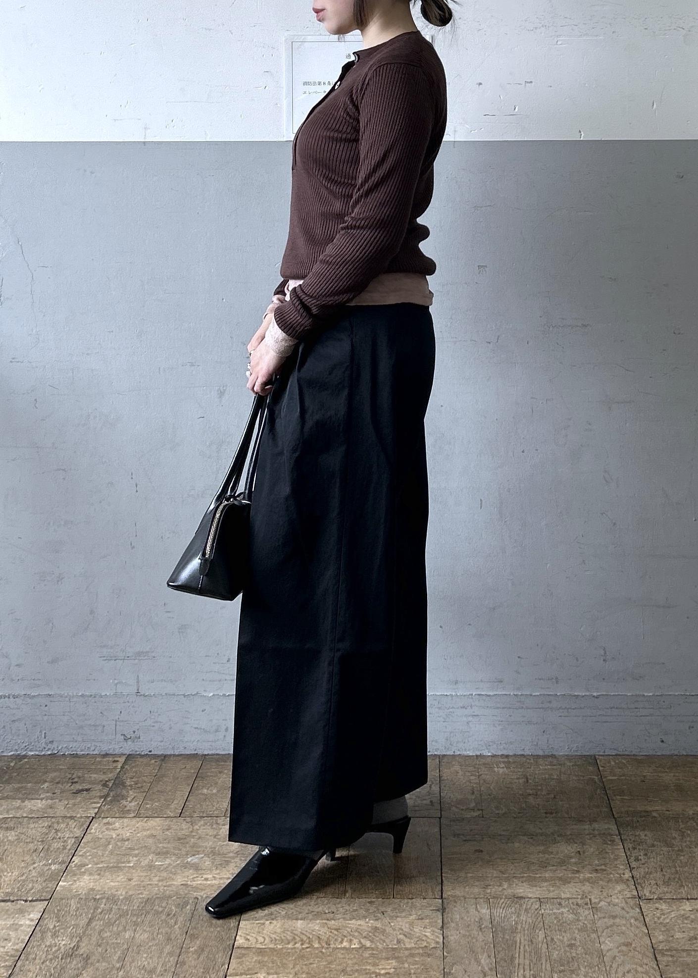 下にストンと落ちてくれるようなシルエットのワイドパンツです。 -