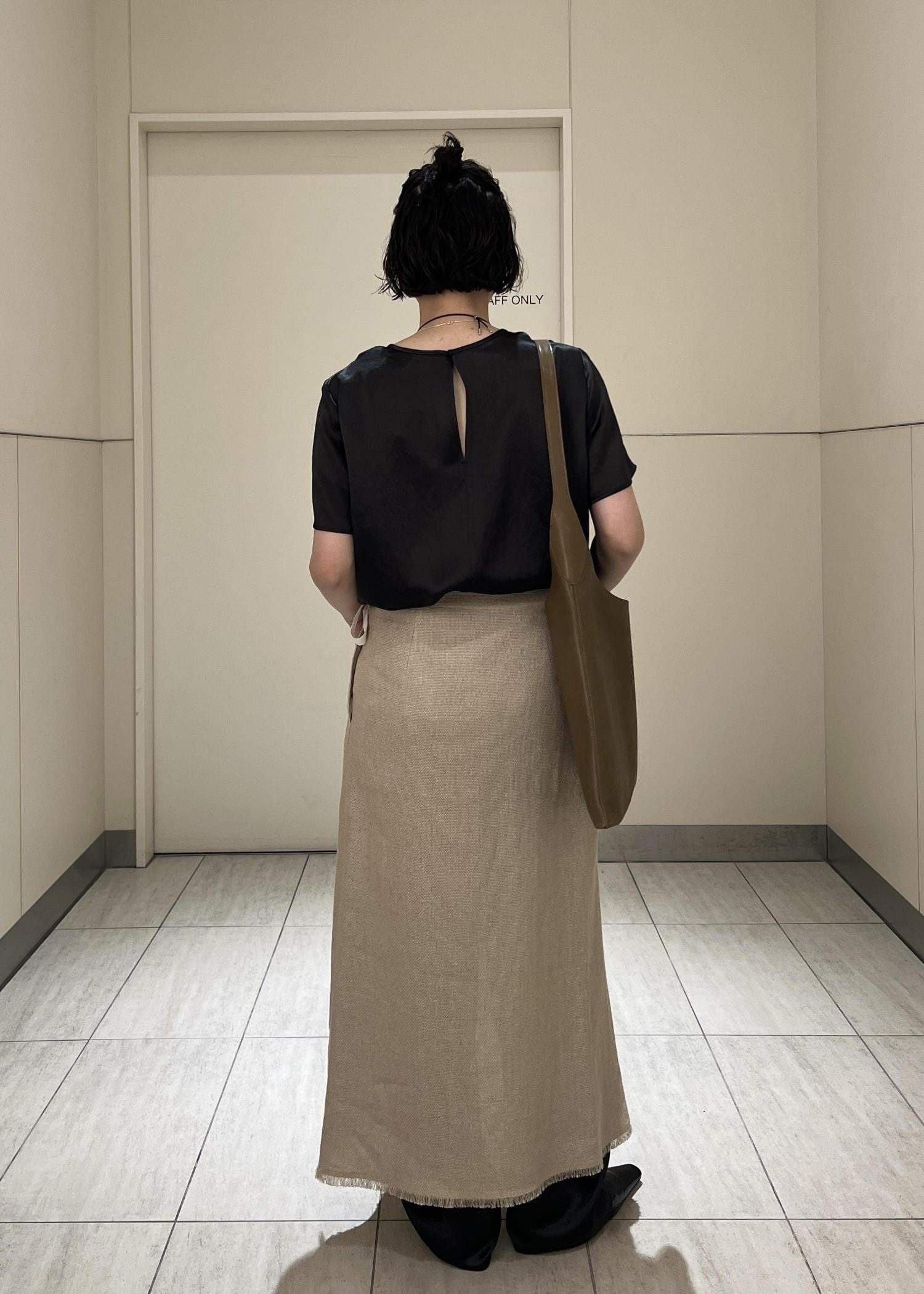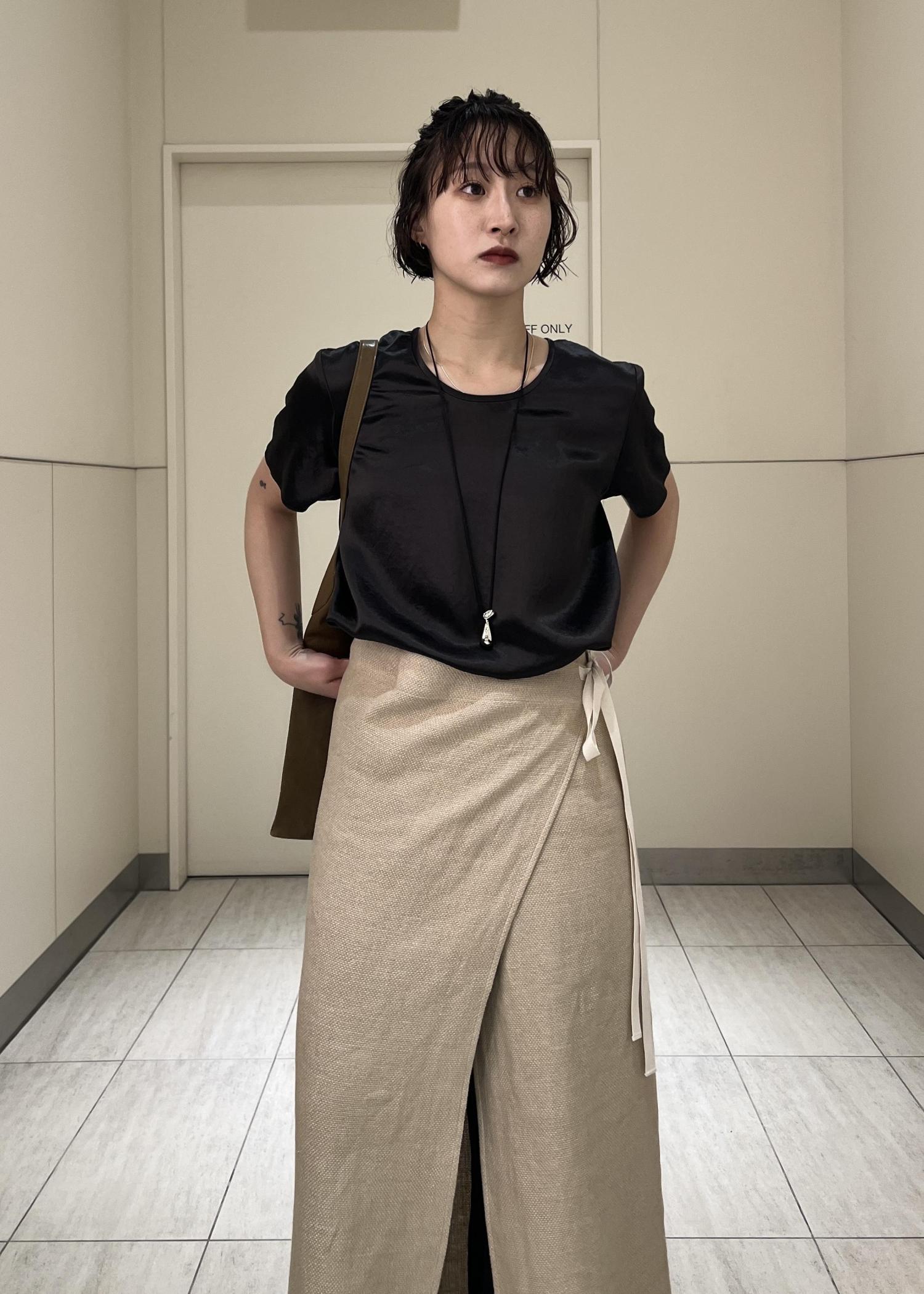 サテンのセットアップにスカートを腰巻きスタイルに!