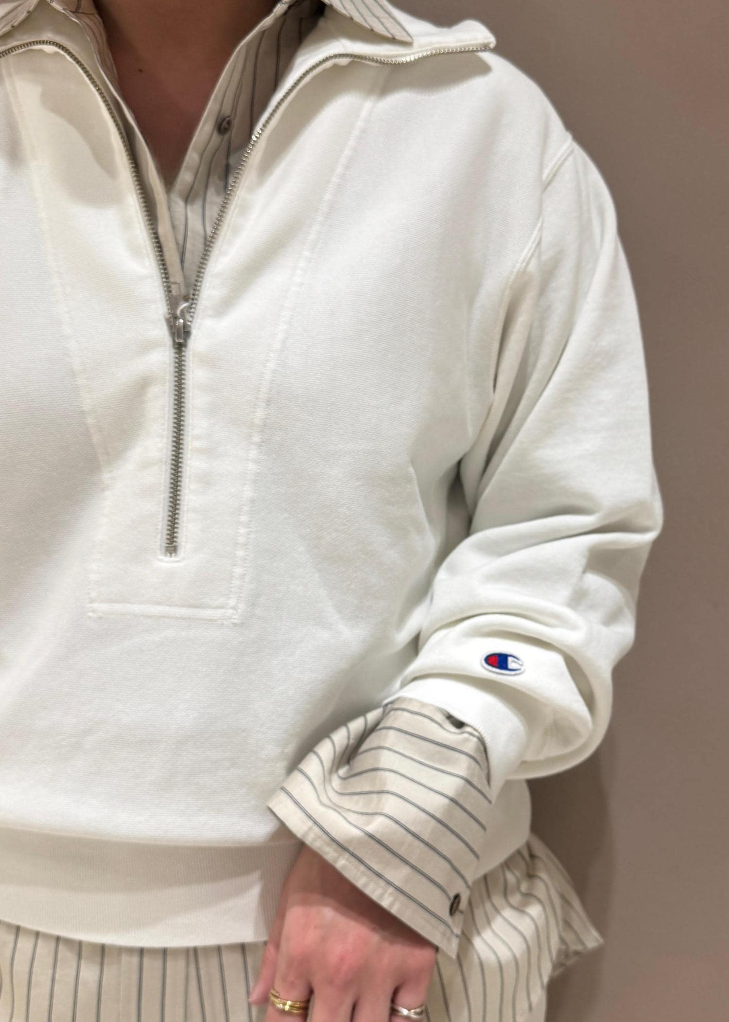 ADAM ET ROPÉ FEMME【Champion for ADAM ET ROPE'】別注 SWEAT HALF ZIPオフホワイト / F¥13,200レビュー深めのハーフジップデザインで顔周りの印象の変化をお楽しみいただけます。