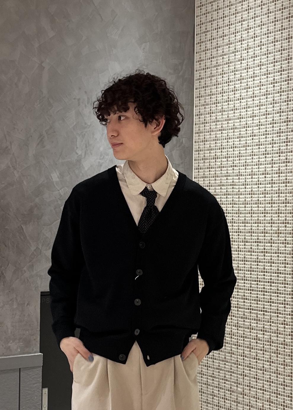 ADAM ET ROPÉ HOMME強撚プレーティングニットカーディガンブラック / M¥14,300レビュー178cm、痩せ型、骨格ウェーブでMサイズを着用しています。