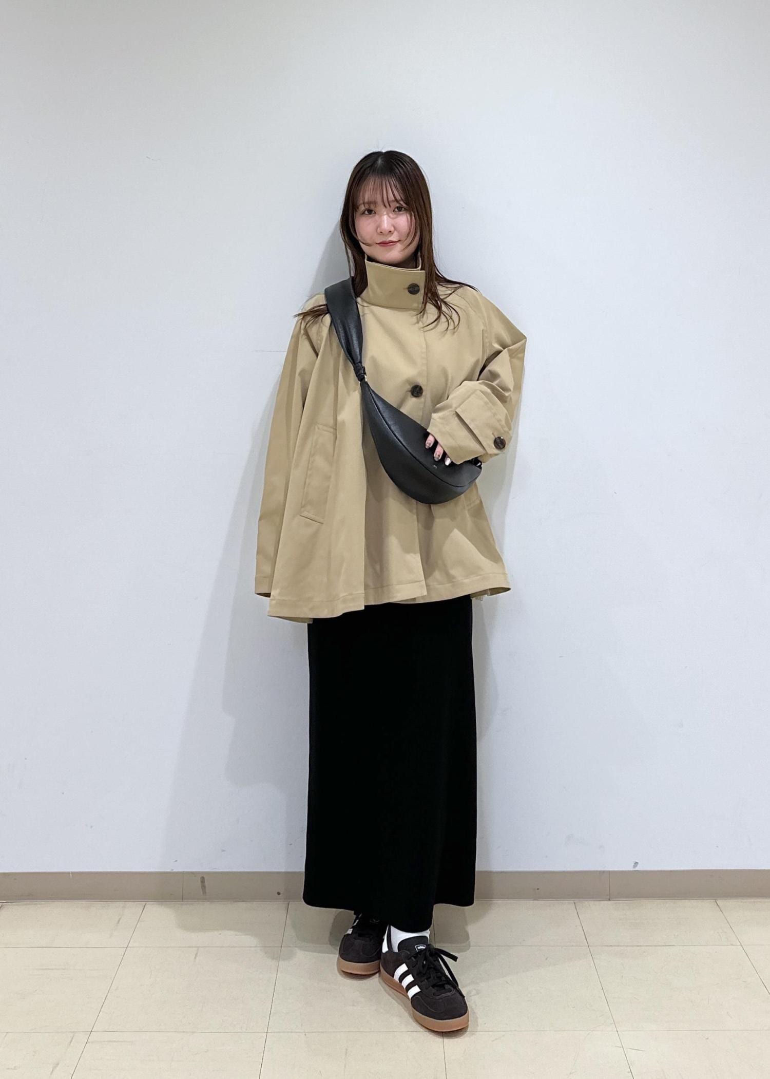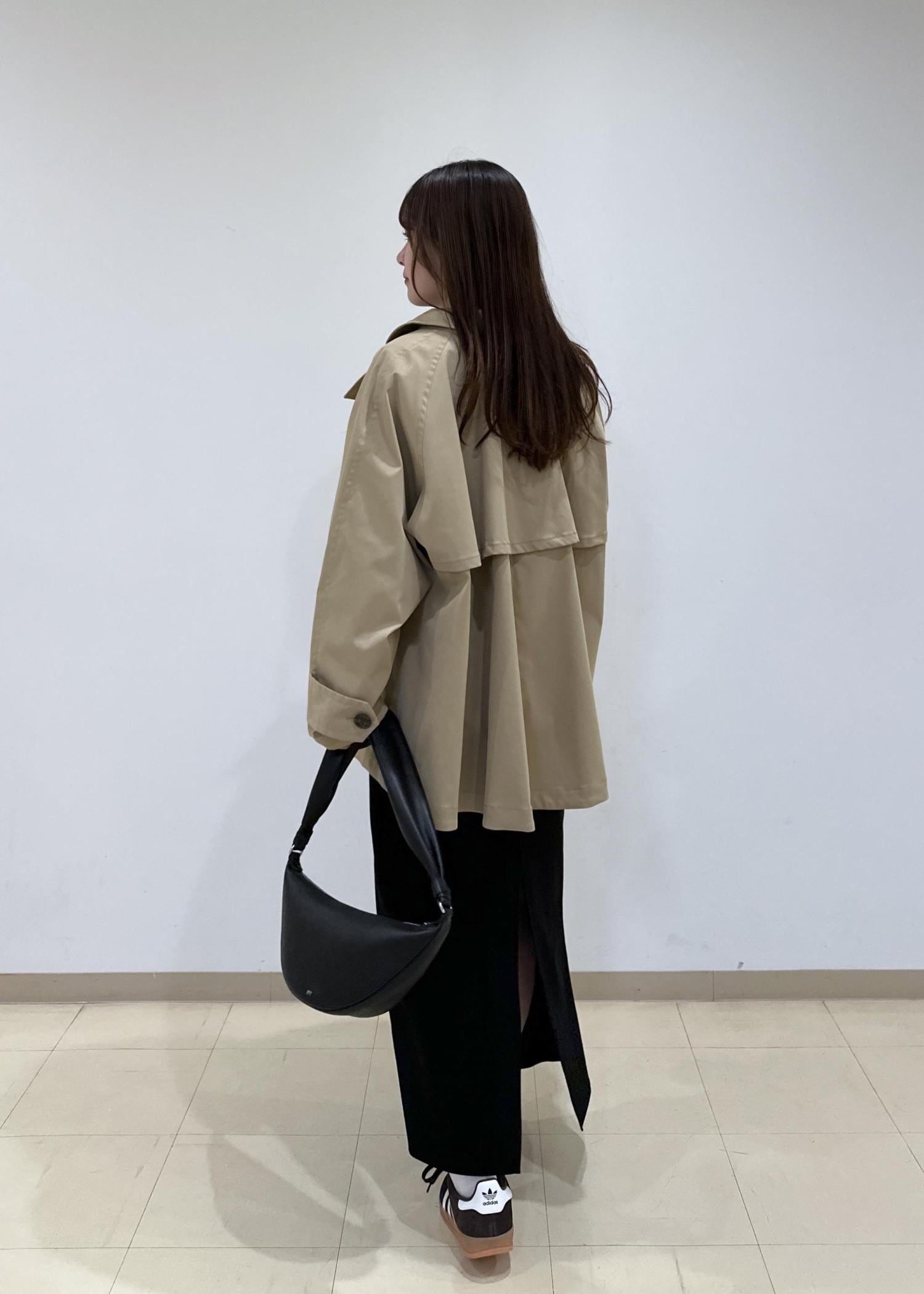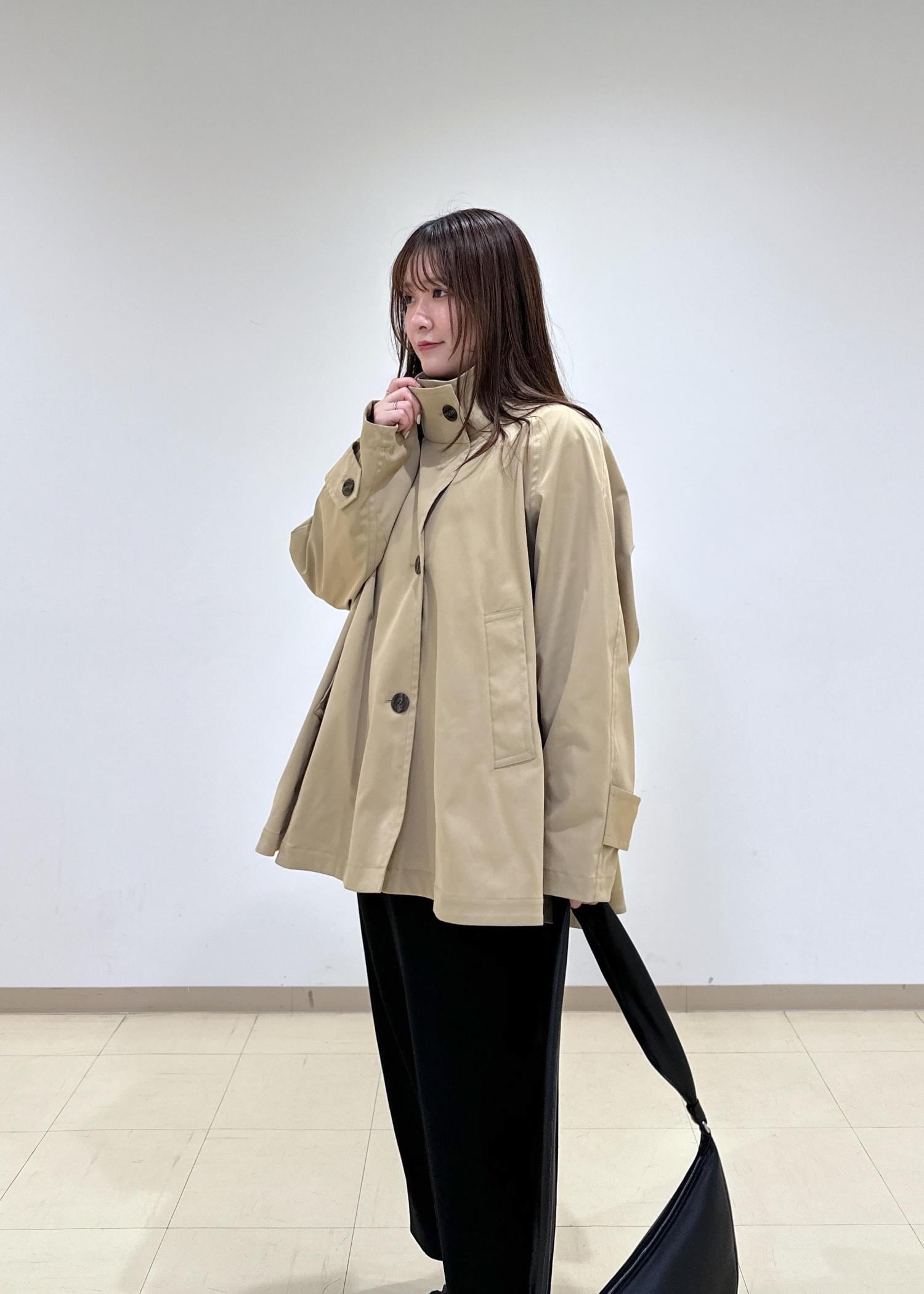 ADAM ET ROPÉ FEMMEフレアーミドルトレンチコートベージュ / F¥33,000レビューAラインでミドル丈のトレンチ。広がりすぎず下に落ちてくれるのでAラインなのにスッキリと着られる。スタンドネックにも襟にもできて、首もとにゆとりがあるので苦しくない。