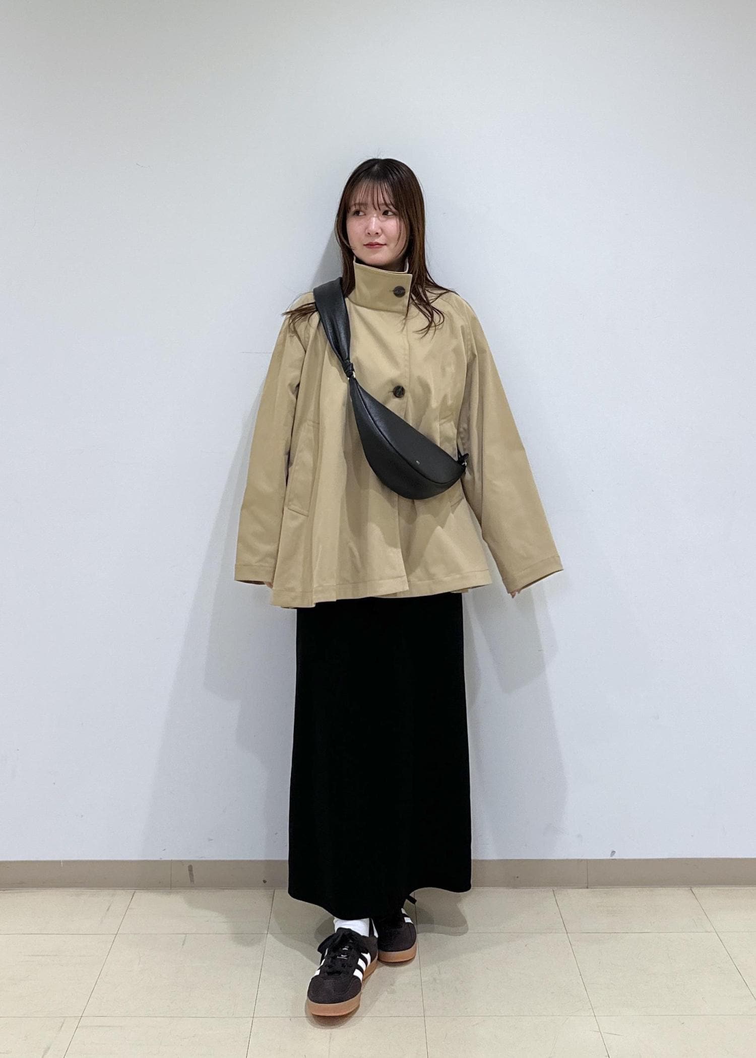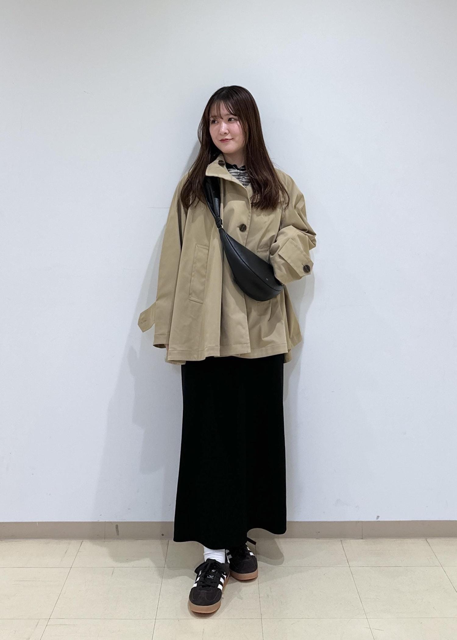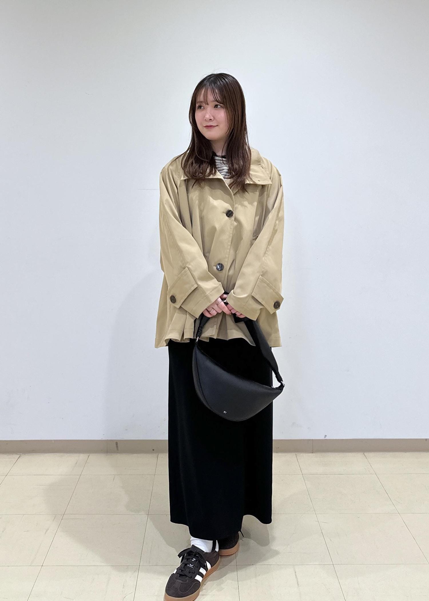 ADAM ET ROPÉ FEMMEフレアーミドルトレンチコートベージュ / F¥33,000レビューAラインでミドル丈のトレンチ。広がりすぎず下に落ちてくれるのでAラインなのにスッキリと着られる。スタンドネックにも襟にもできて、首もとにゆとりがあるので苦しくない。