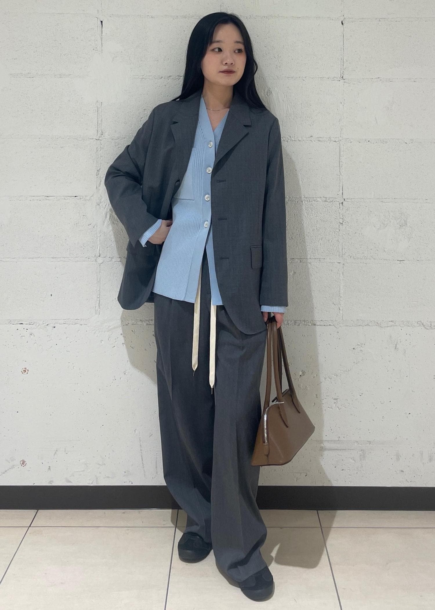カラーはグレー、同素材のイージースラックスと合わせています!