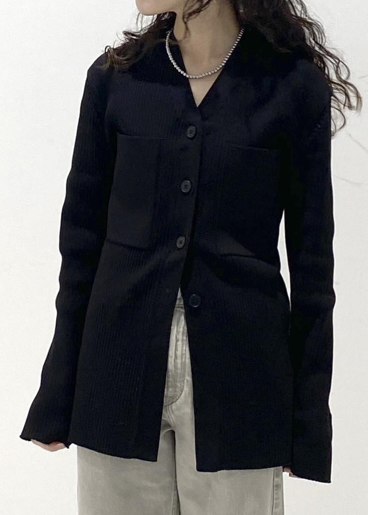 EMOELLE【EMOELLE】ポケットリブカーディガンブラック / F¥26,400レビュー首元のvネックが開きすぎず、落ち着いた印象のカーディガンです。