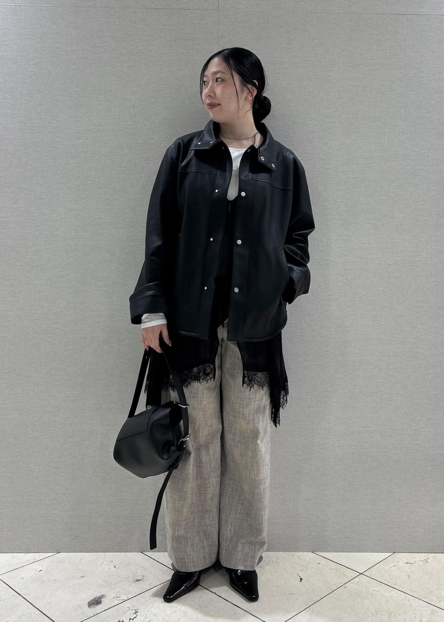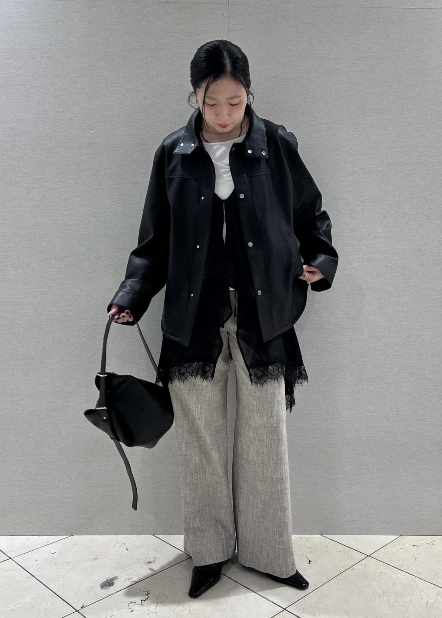 本日はラムレースシアージレをポイントに、EMOELLEスラックスのコーディネートを組んでみました!
