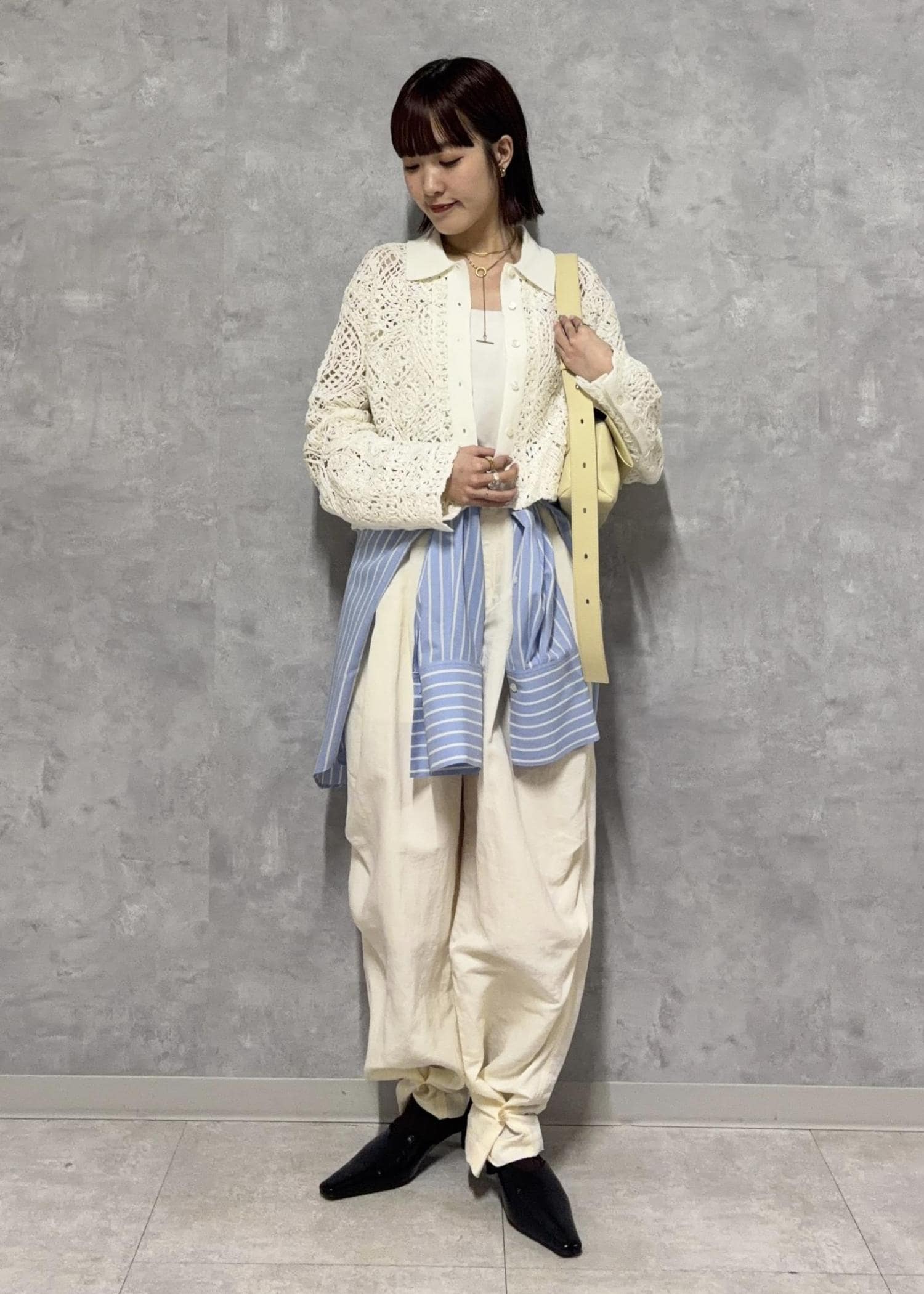 スウェットなどやや肉厚なトップスを着ても、着膨れ感なく着用可能です! -