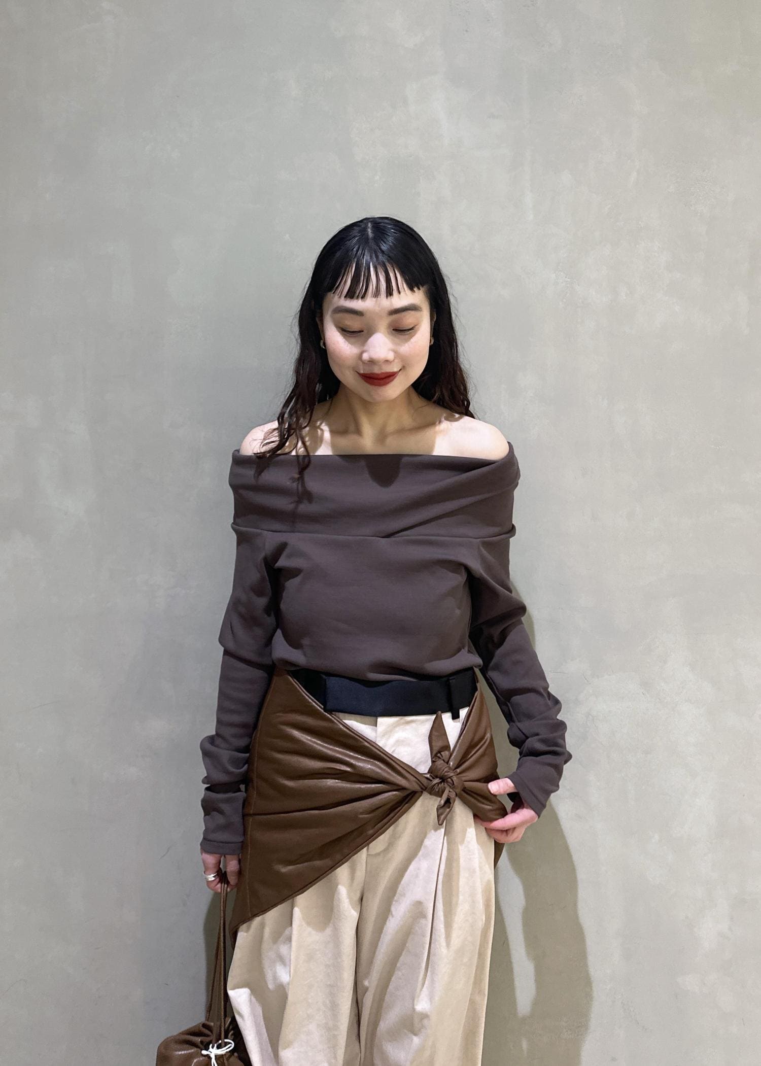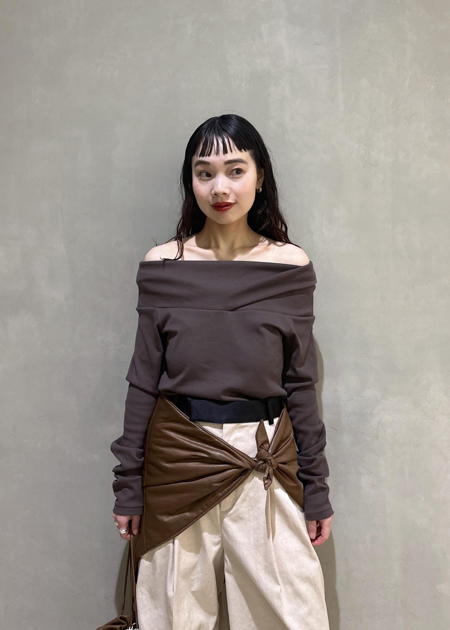 EMOELLE【EMOELLE】スビンコットンオフショルトップスブラウン / F¥19,800レビュー伸縮性のある生地で着心地抜群です。