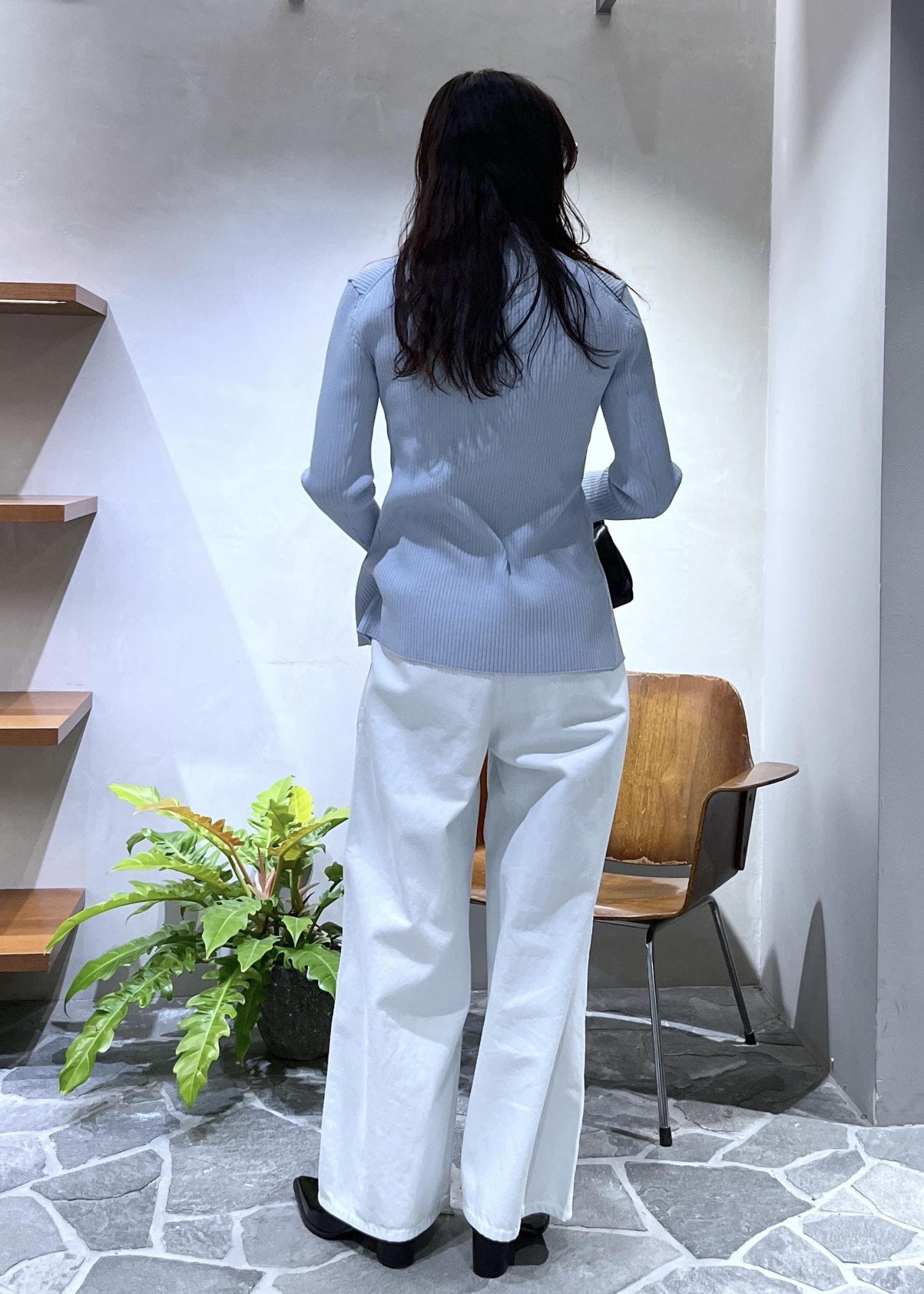 EMOELLE【EMOELLE】ポケットリブカーディガンサックス / F¥26,400レビュー体のラインを拾いすぎないシルエットです。