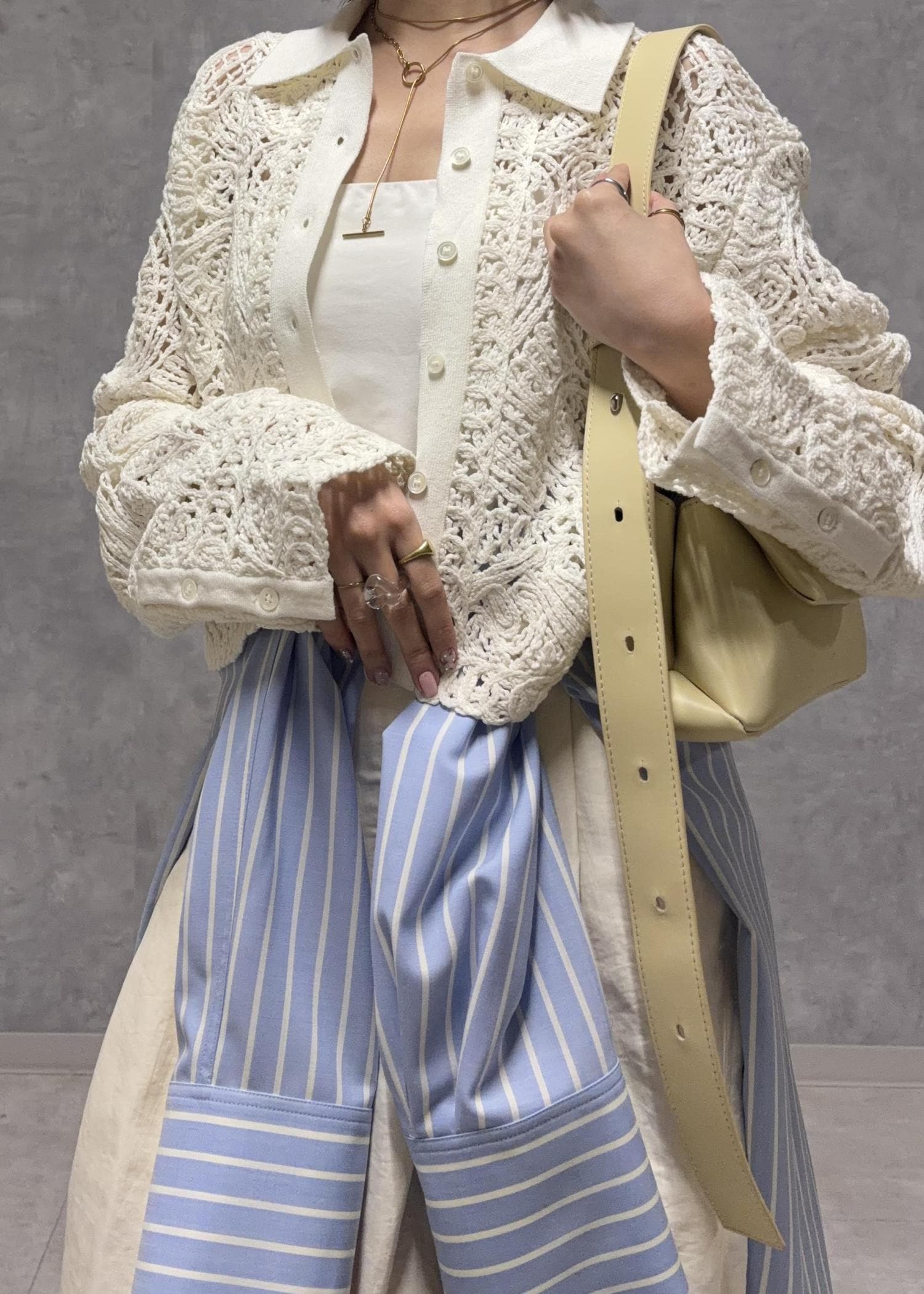 程よい肌見せと甘すぎないレースが抜け感を出してくれるカーディガン "