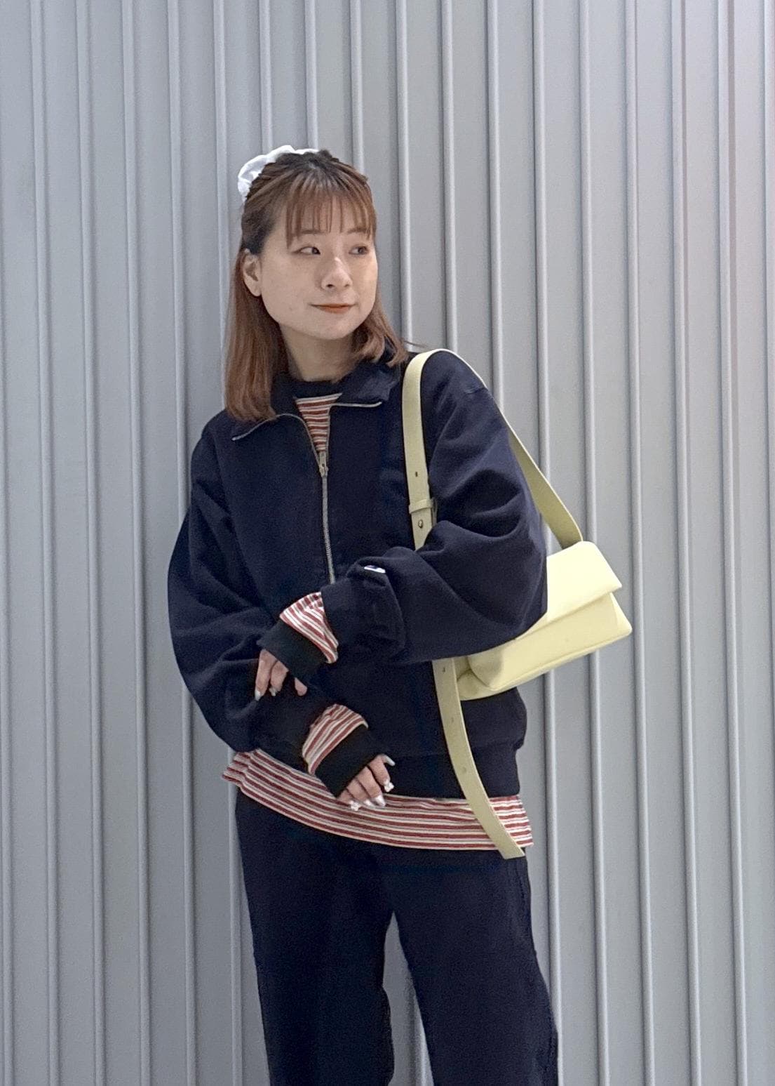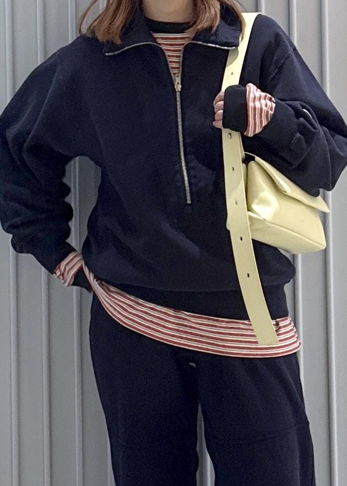 ハーフZIPで抜け感もありレイヤードもおすすめ。インナーがアクセントにもなります! -