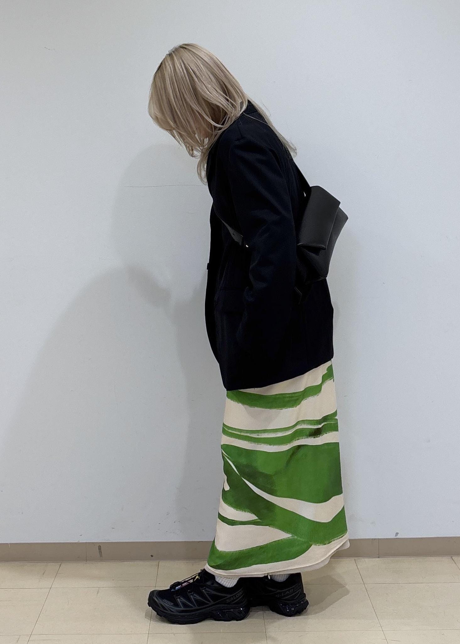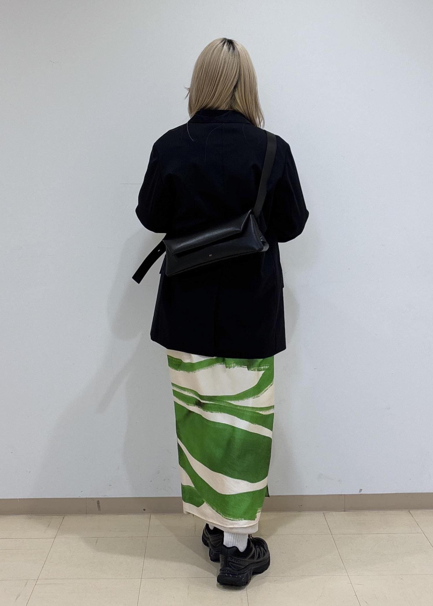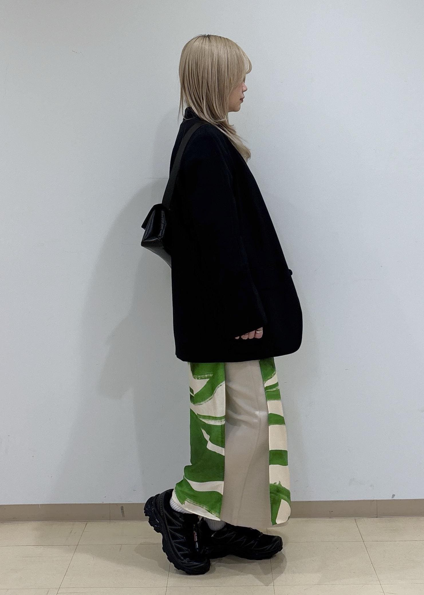 ヒップがちょうど隠れる着丈でシングルなので大きすぎないデザインです。 -