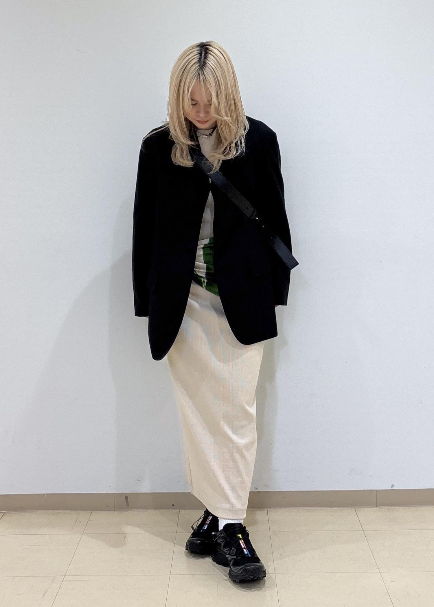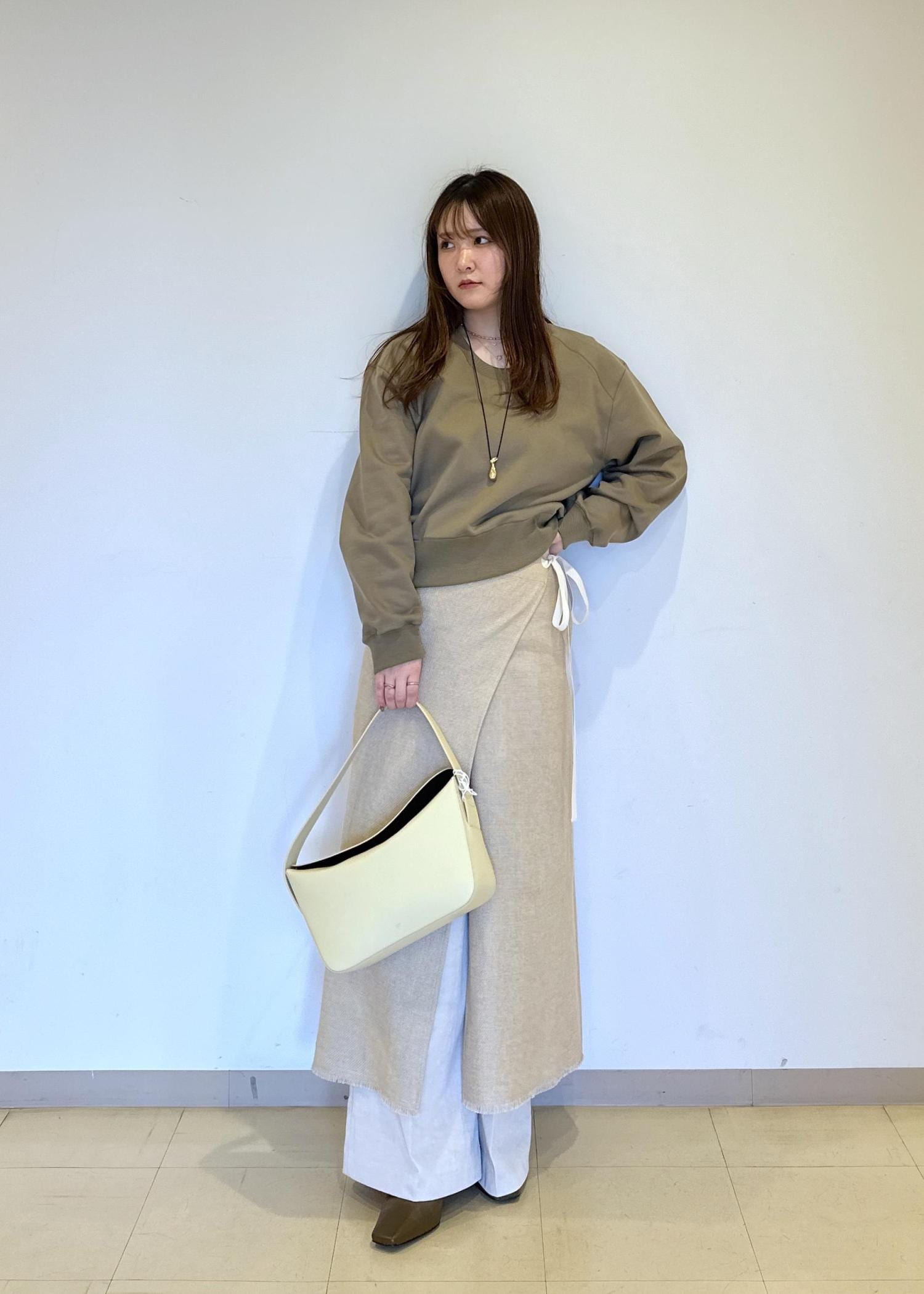ピタッとフィットしすぎず、地厚な素材感なので体のラインを拾いにくいです。 -