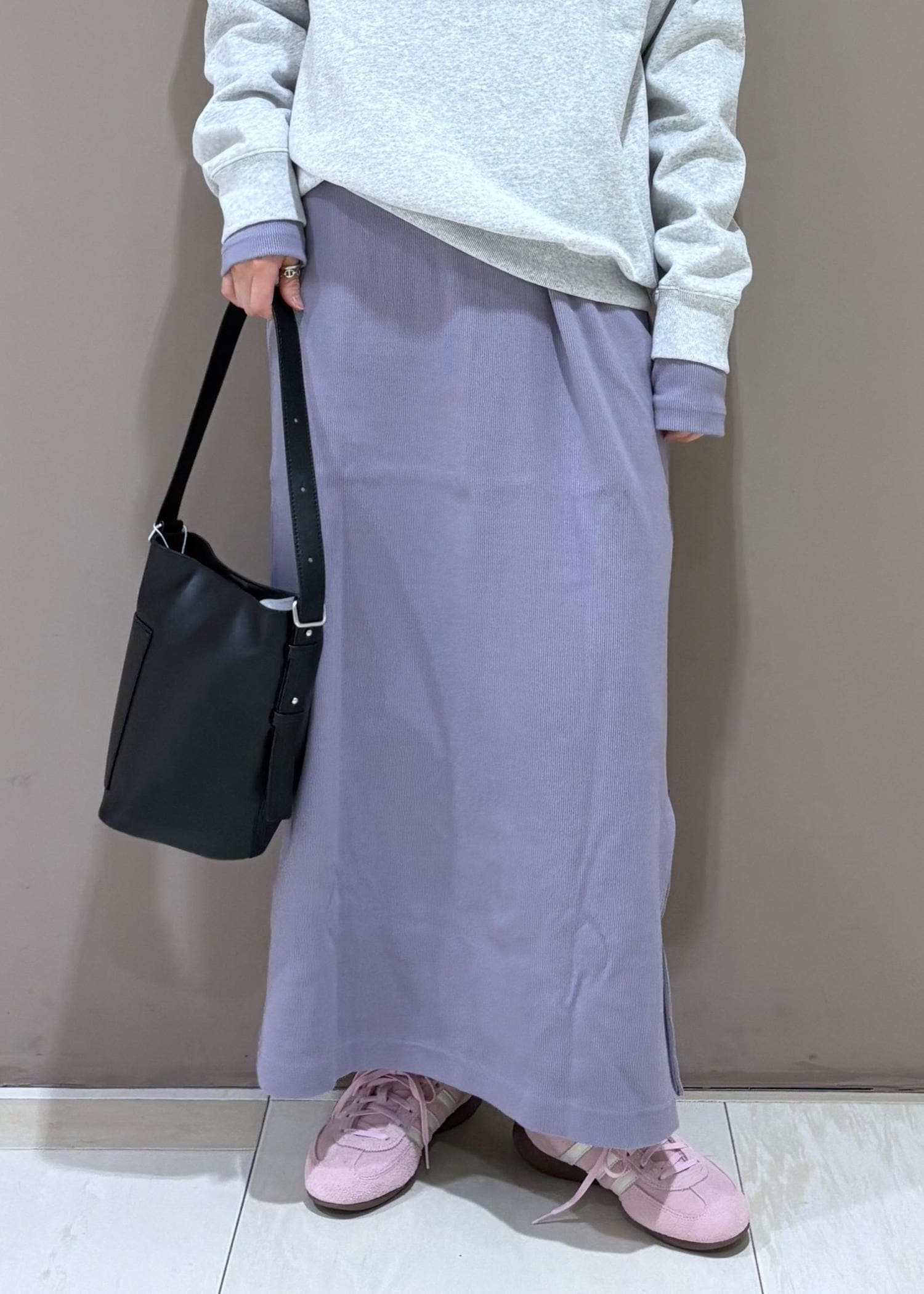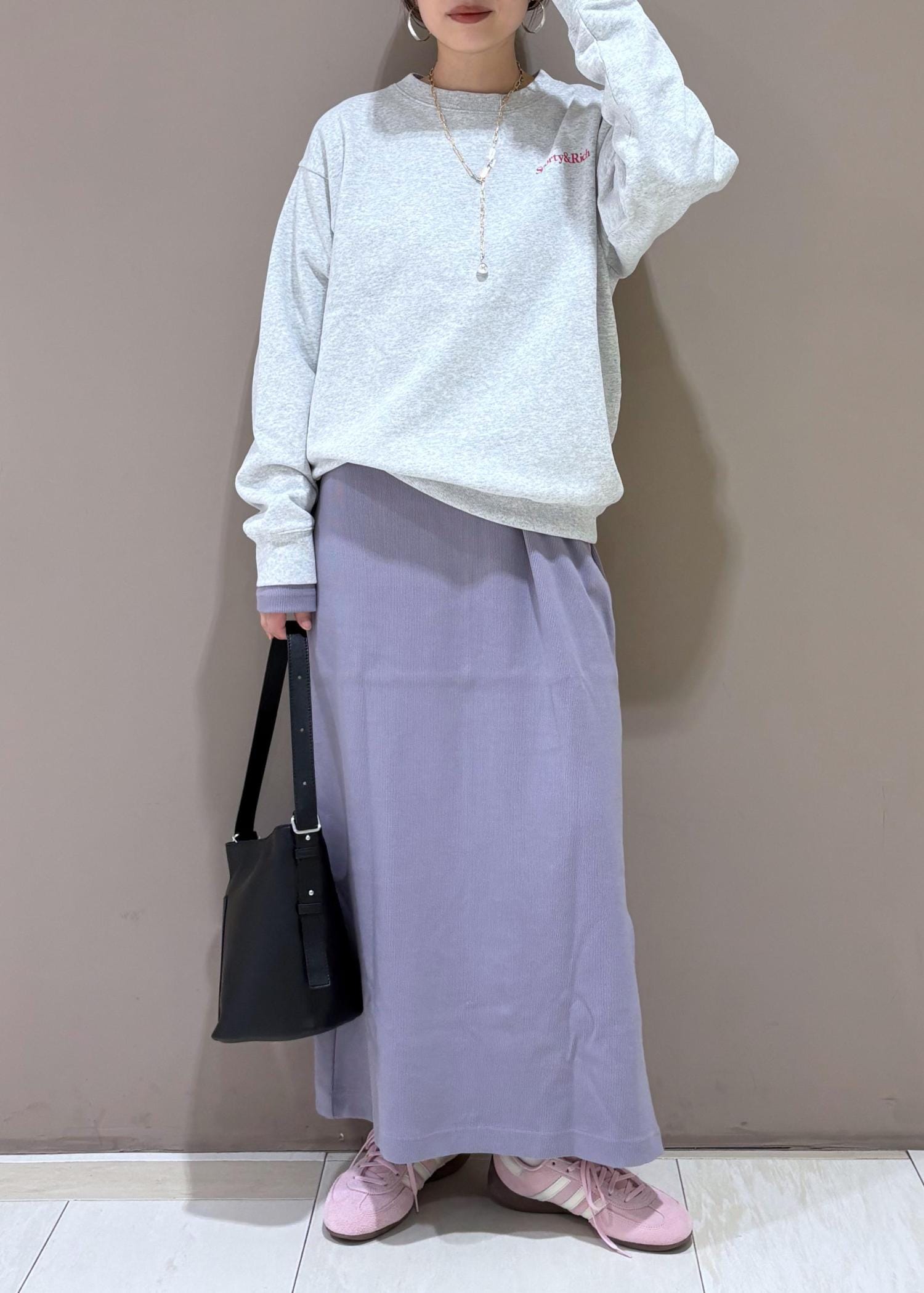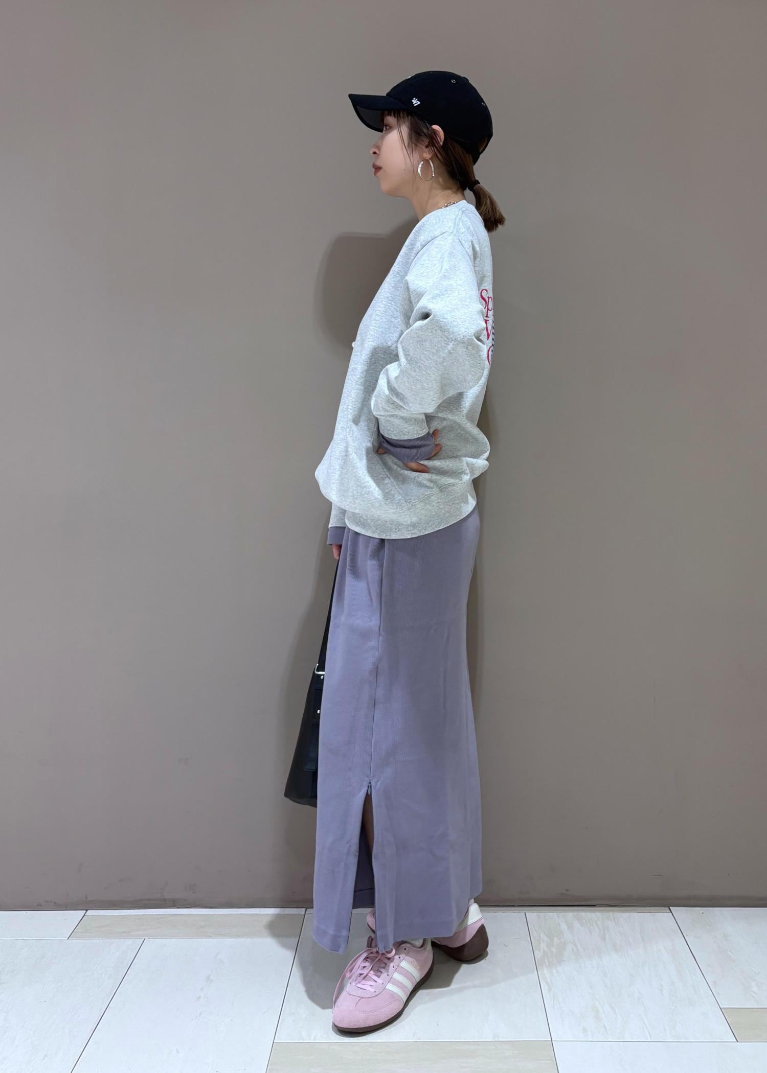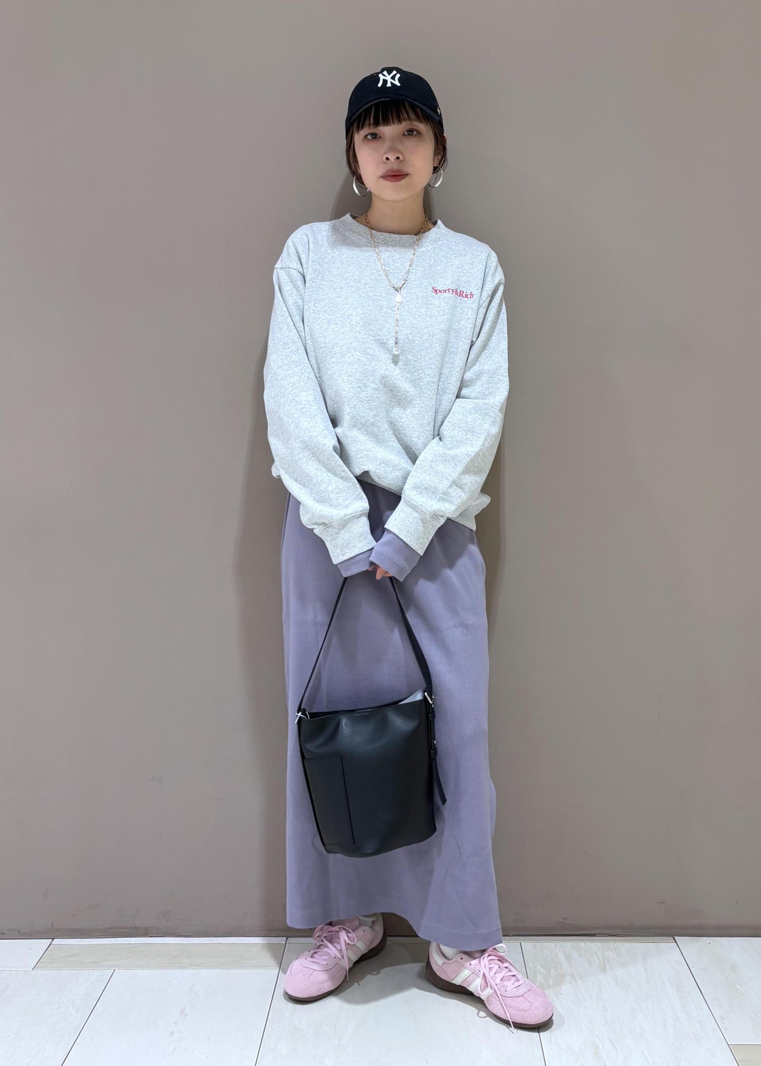 s&rのスウェットをレイヤード。