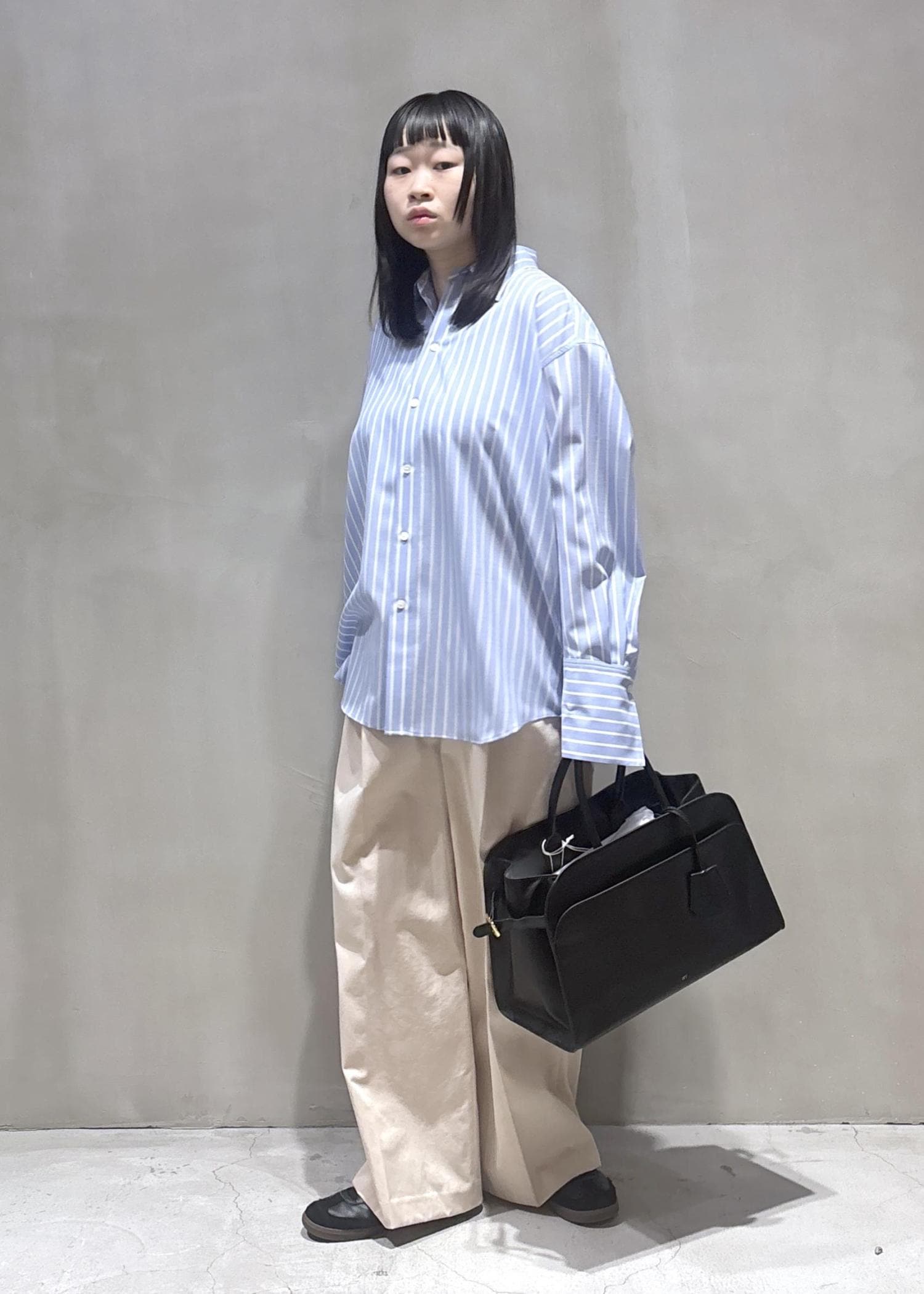 オーバーなサイズ感と太めボトムスとの相性がトレンド感ありすごく好みです!
