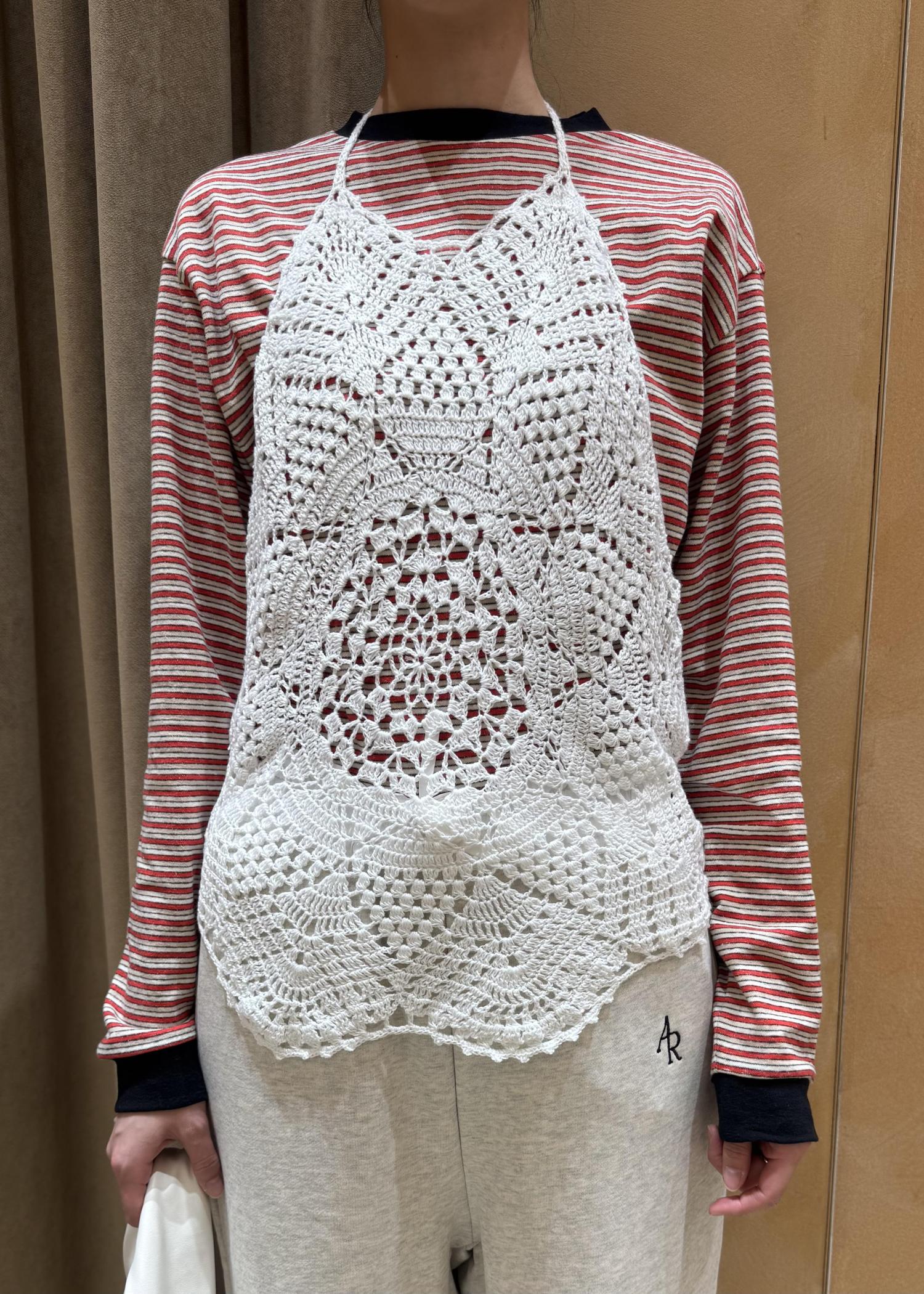 ADAM ET ROPÉ FEMMEクロシェニットビスチェホワイト / F¥20,900レビュースカラップデザインの裾なので腰回りで動きが出ます。華やかさを出すのに活躍します。