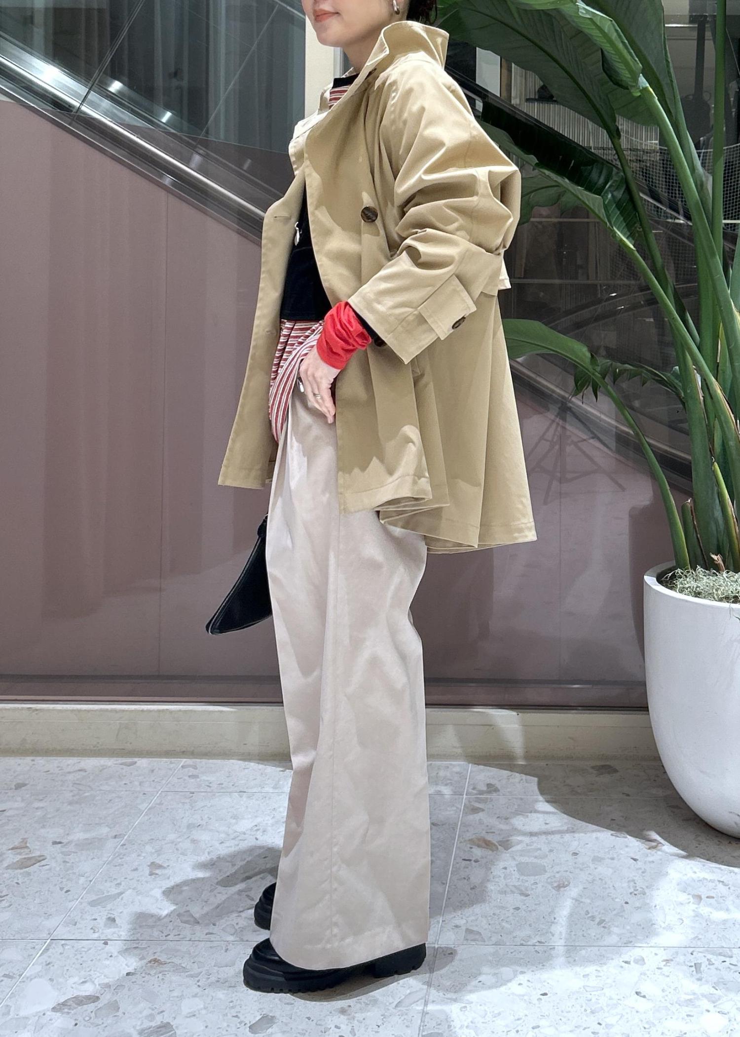 ADAM ET ROPÉ FEMMEフレアーミドルトレンチコートベージュ / F¥33,000レビューとっても軽くて中にたっぷり着込めるゆったりサイズ。テントシルエットが可愛らしく、着映えします♪