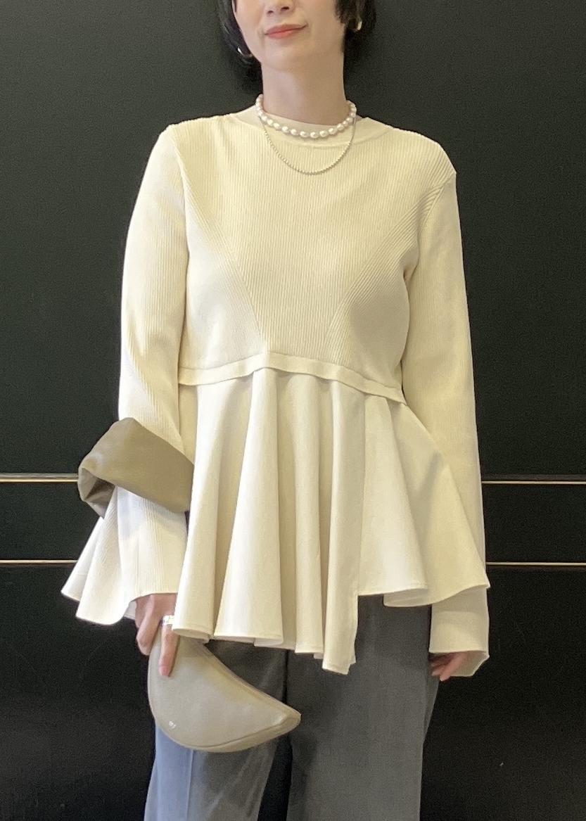 ADAM ET ROPÉ FEMME【再入荷】・【サステナブル】ペプラムコンビニットプルオーバーオフホワイト / F¥16,940レビューデコラティブなシルエットが綺麗で、着るだけでサマになる素敵なトップス。
