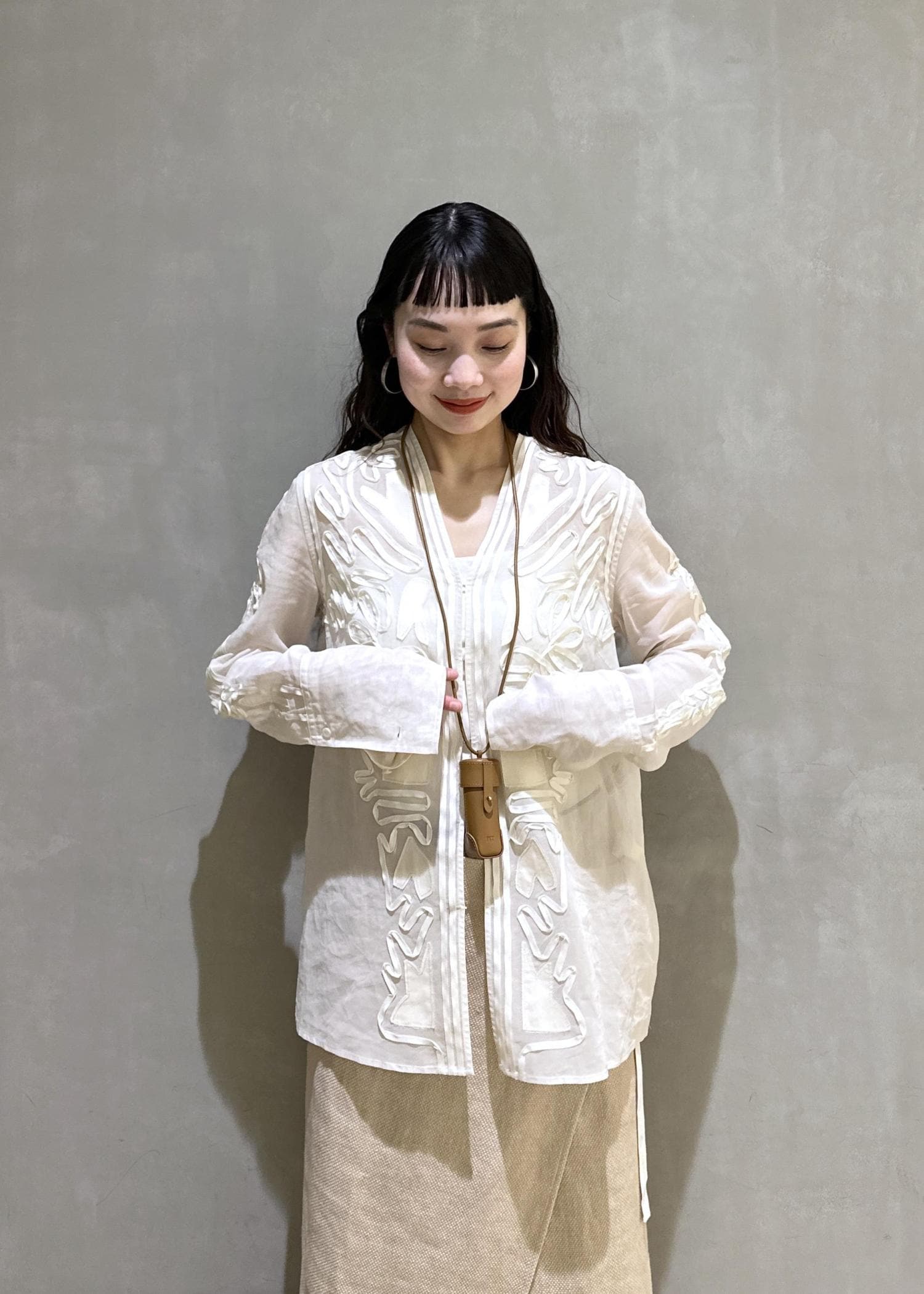 EMOELLE【EMOELLE】ステッチエンブロイダリーブラウスホワイト / F¥24,200レビューやや透け感のある生地です。