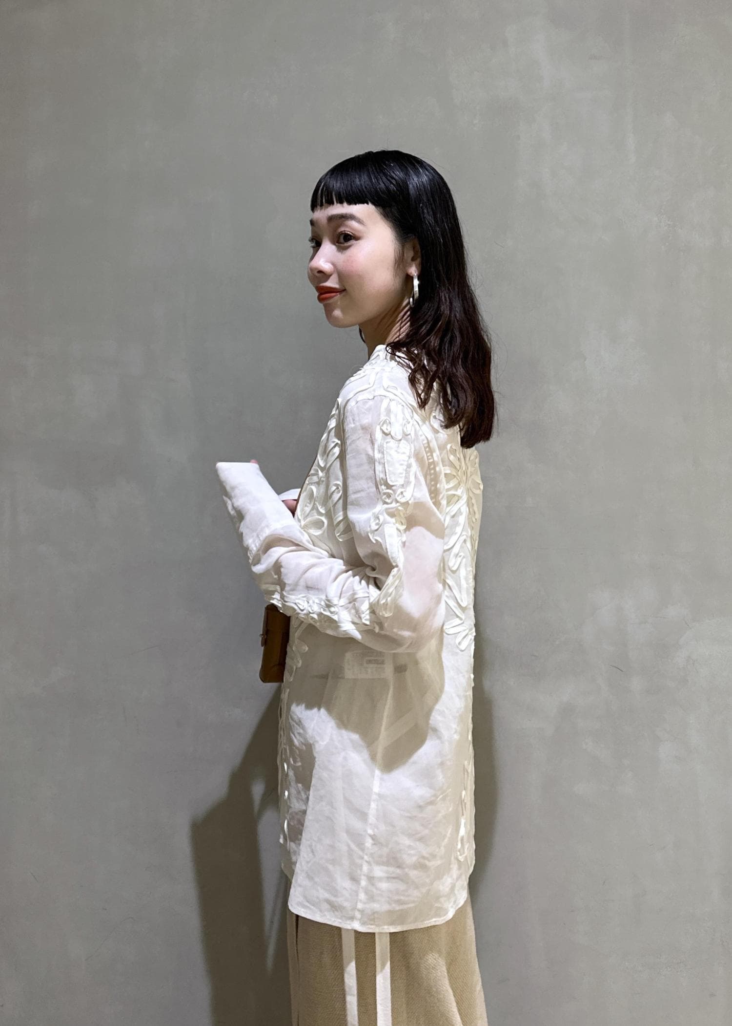 羽織りとしても使えるブラウスです。 -