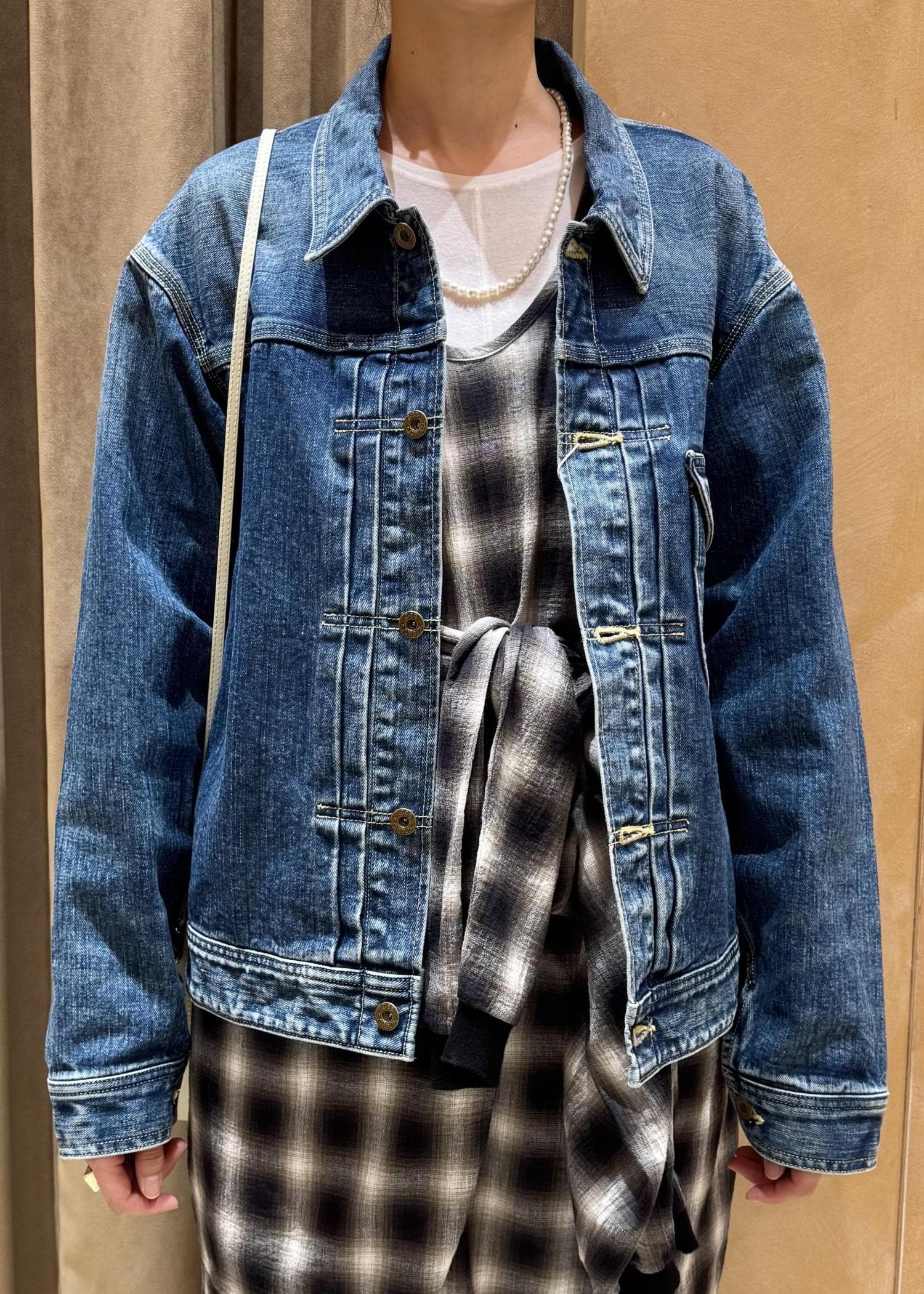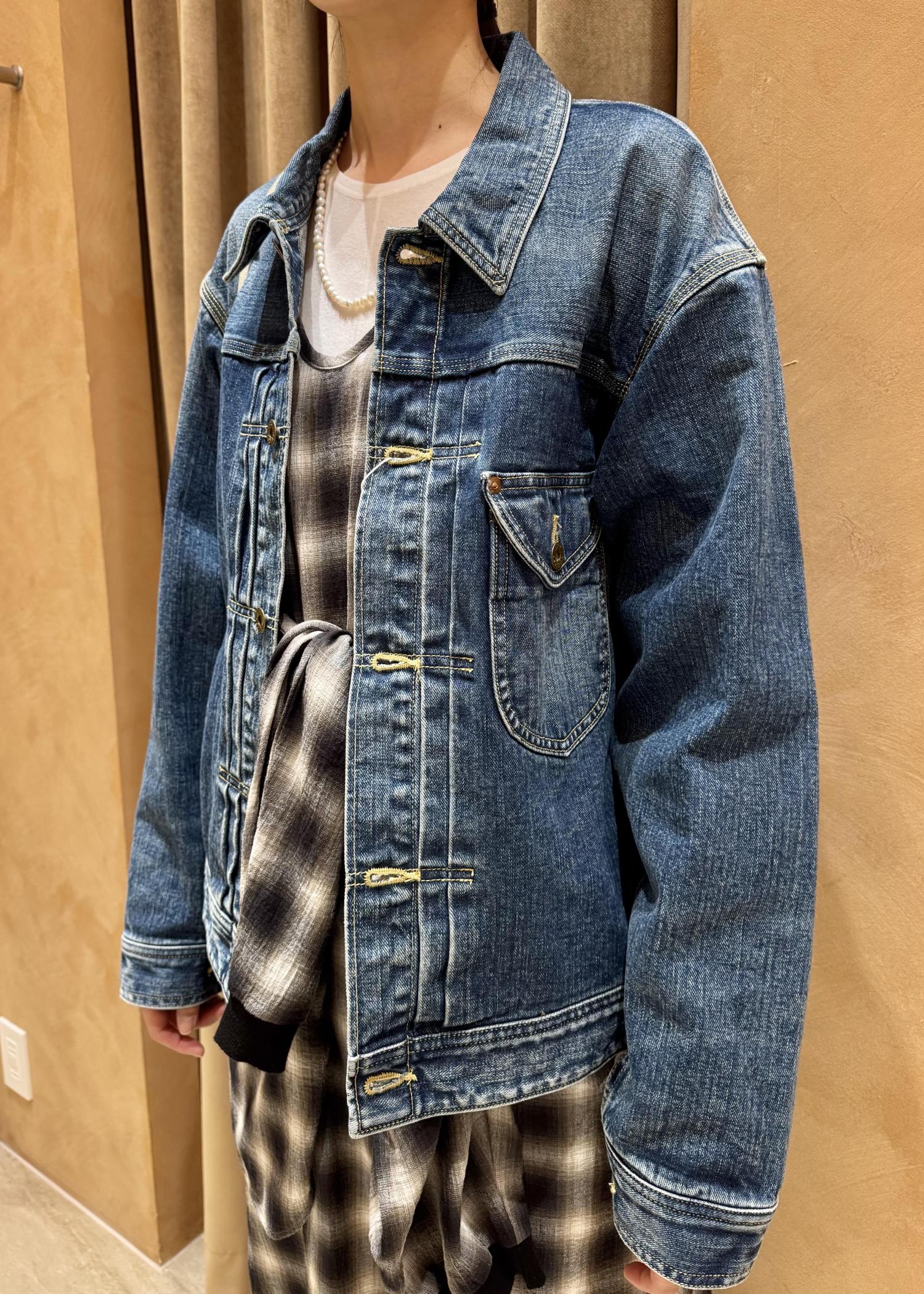 ラウンドしたフラップの胸ポケットが一押しポイントです。デニムの素材が柔らかいのでドロップしたショルダーでも肩が張りにくく感じました。