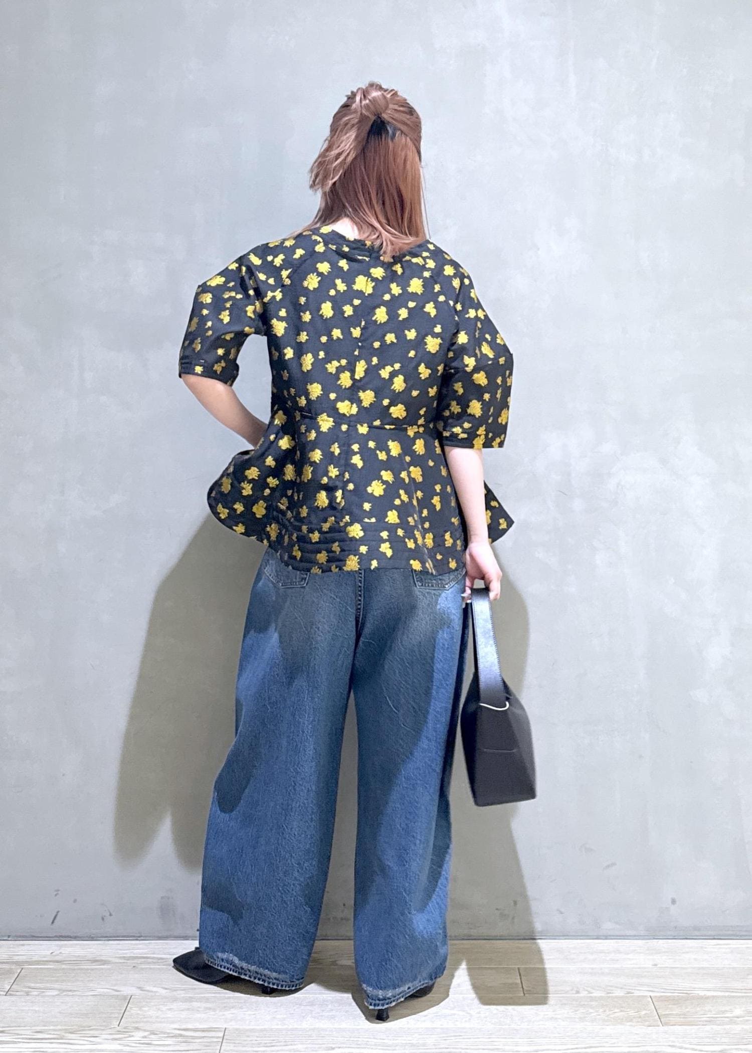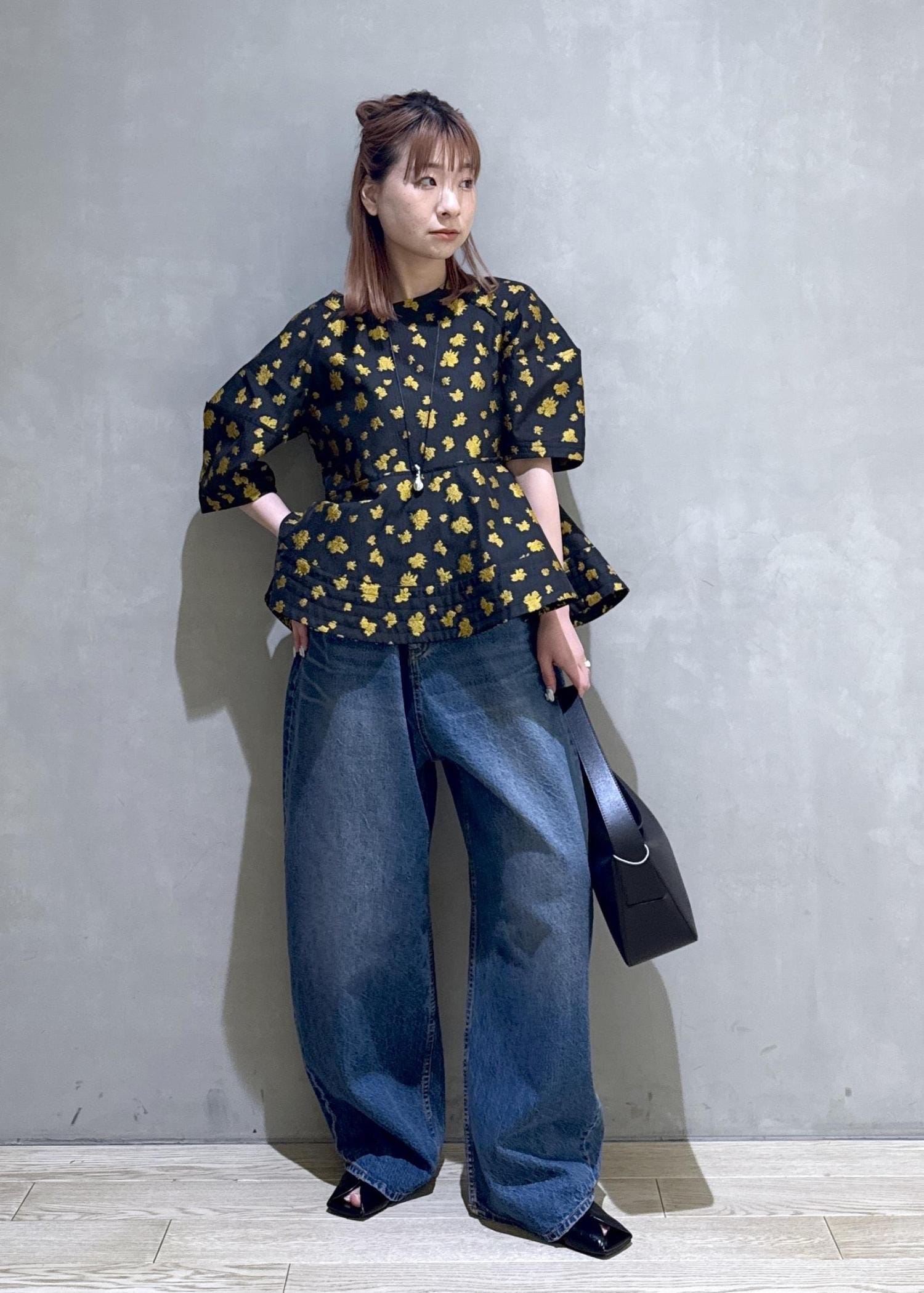 女性らしいブラウスをデニムで大人カジュアルに合わせました♡