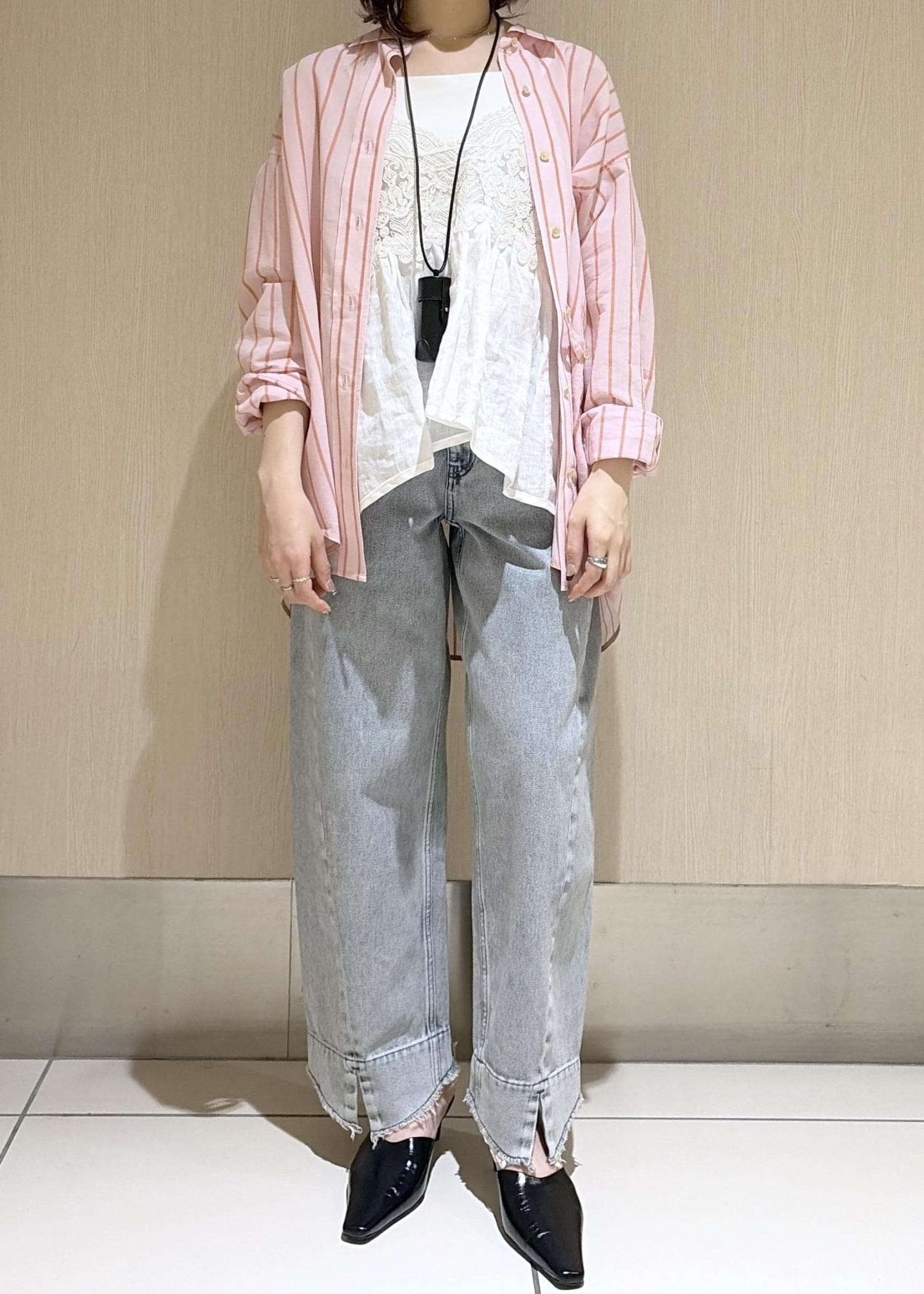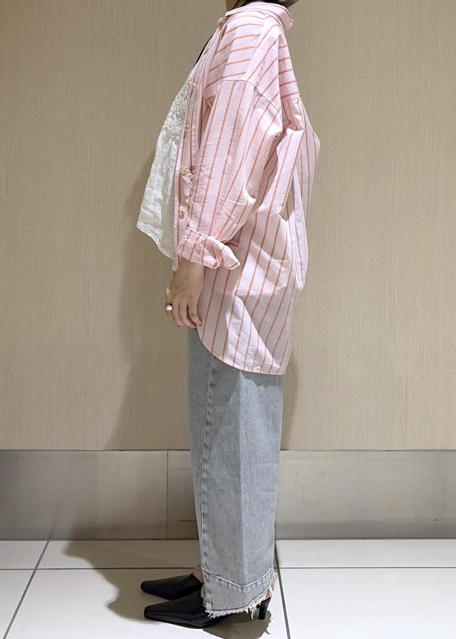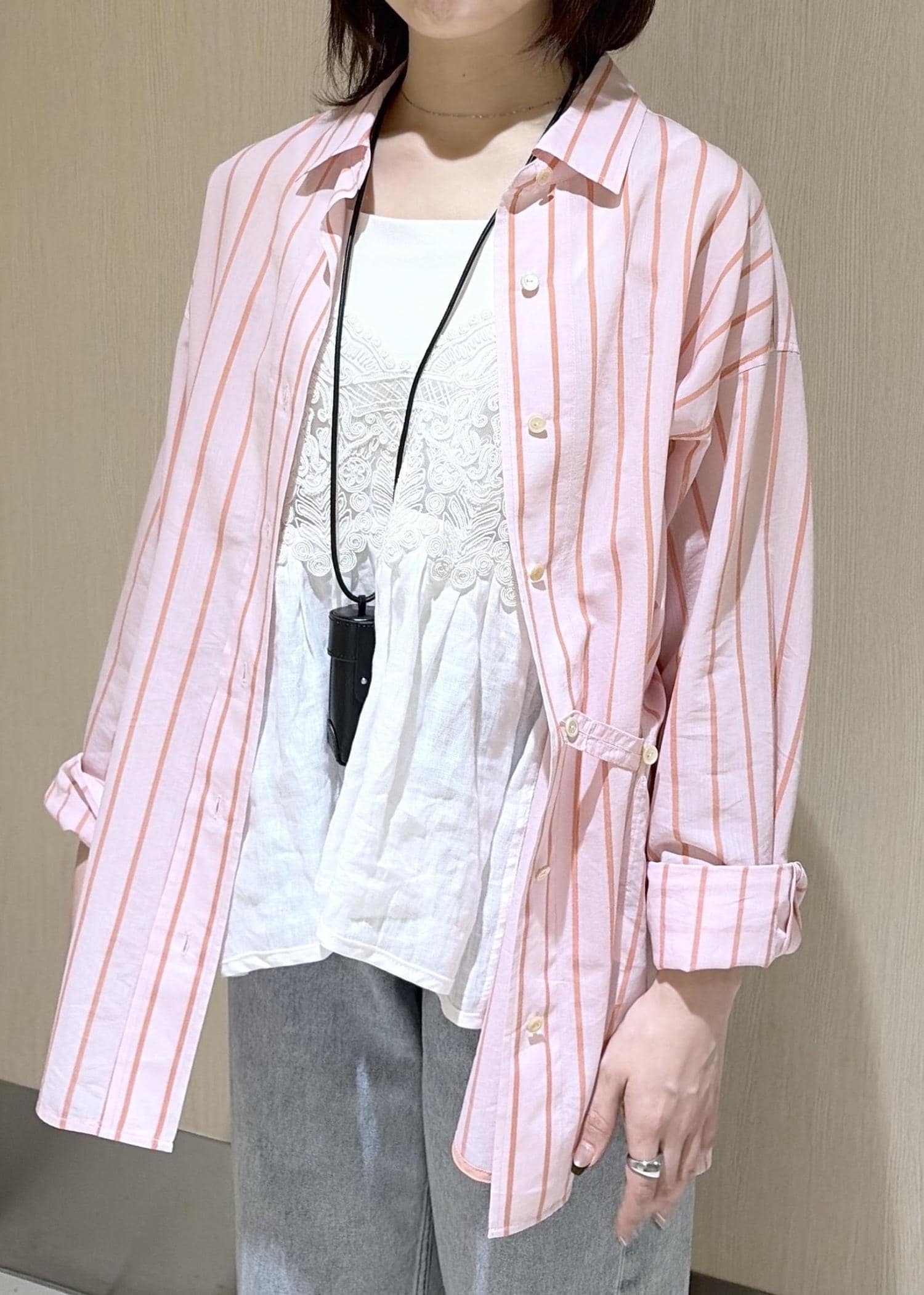 ADAM ET ROPÉ FEMMEFAbRICA ストライプマルチwayシャツピンク系 / F¥26,950レビュー透け感があり、ややルーズなシルエット。