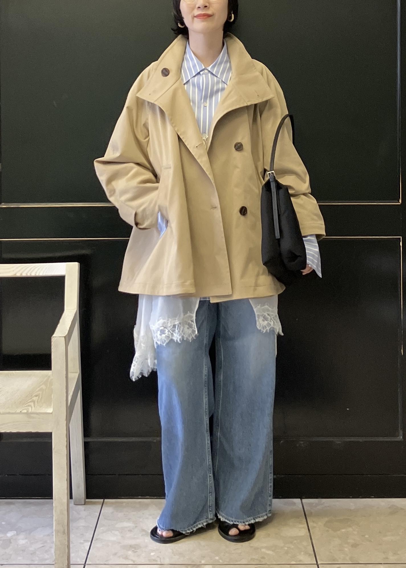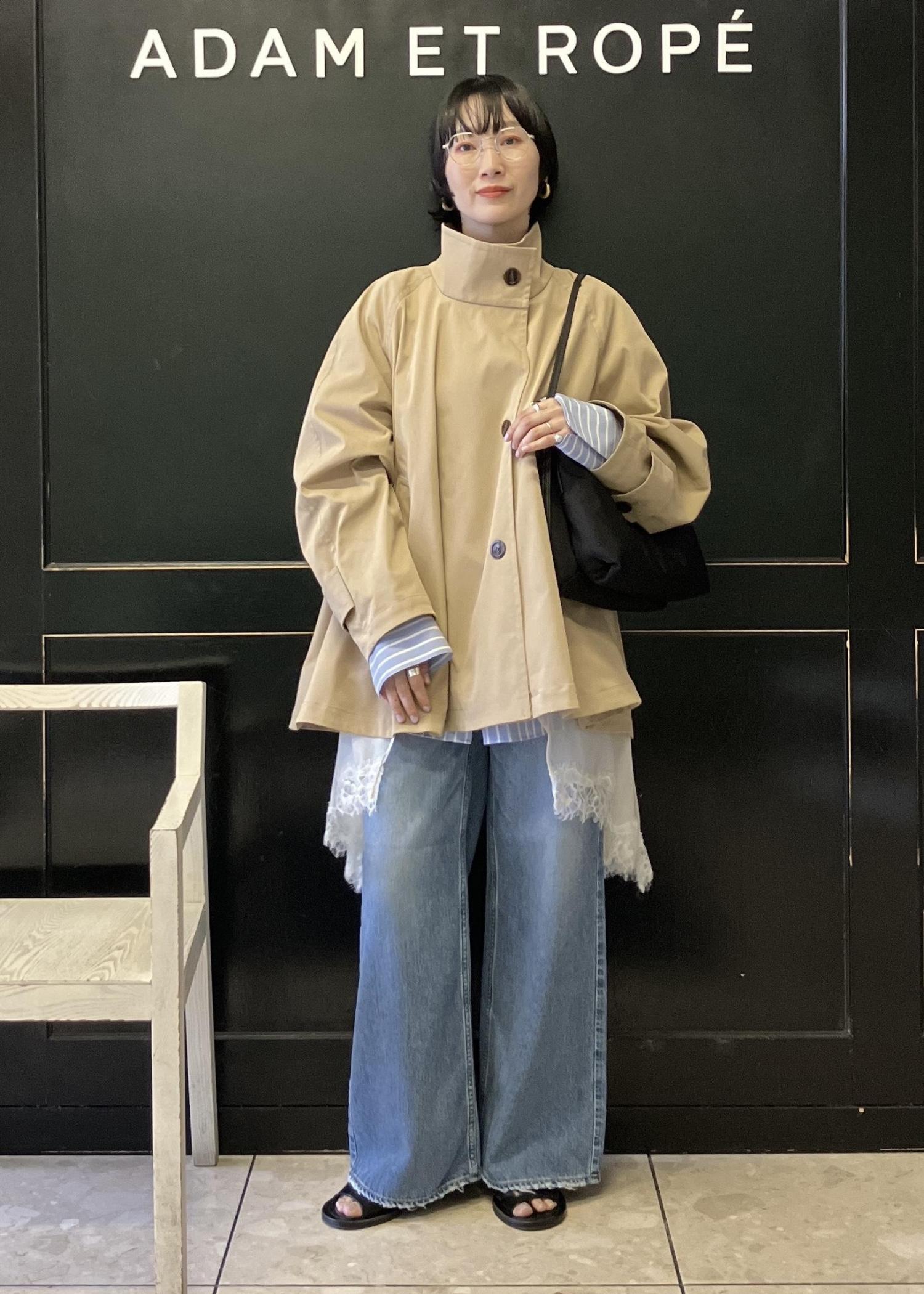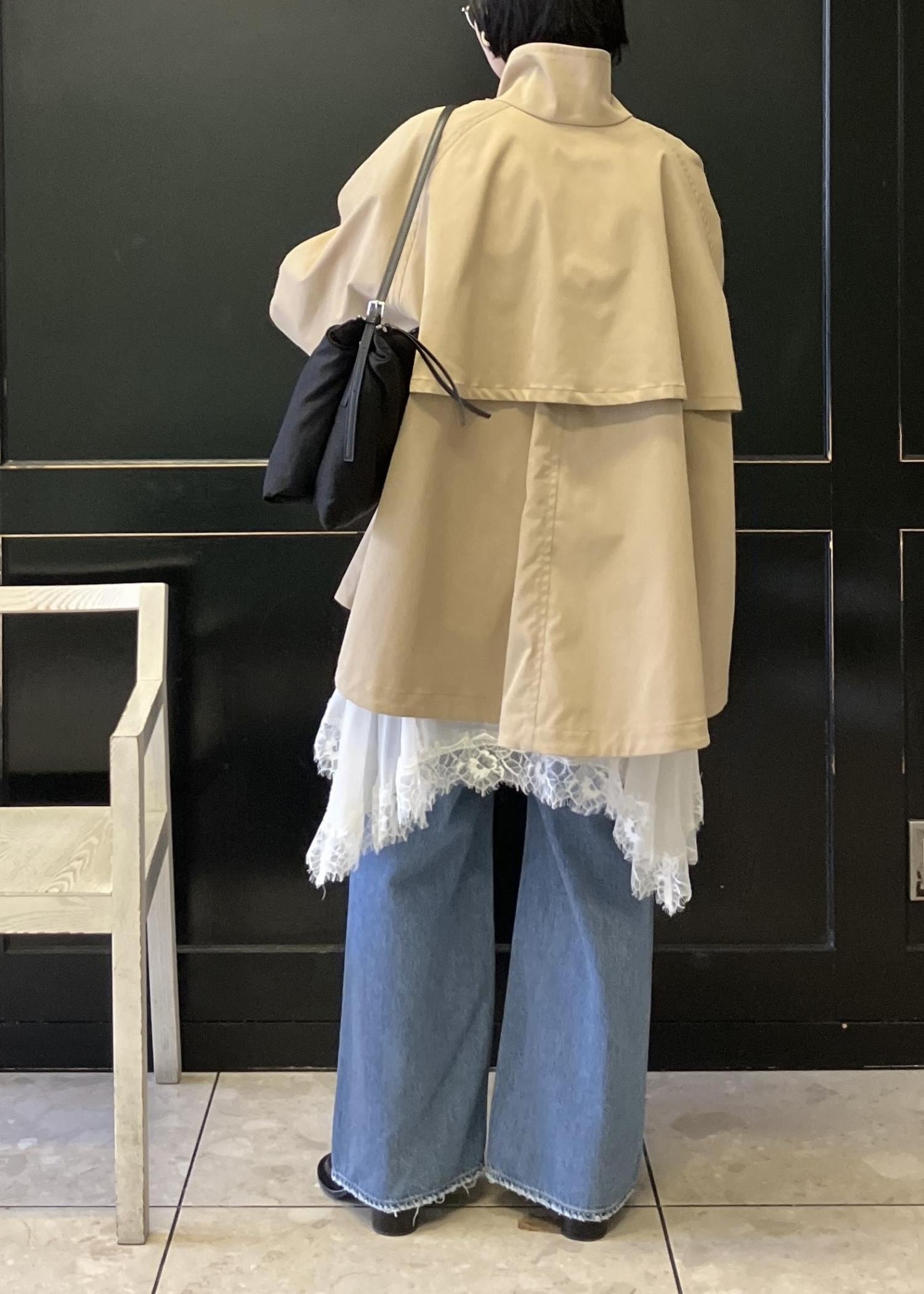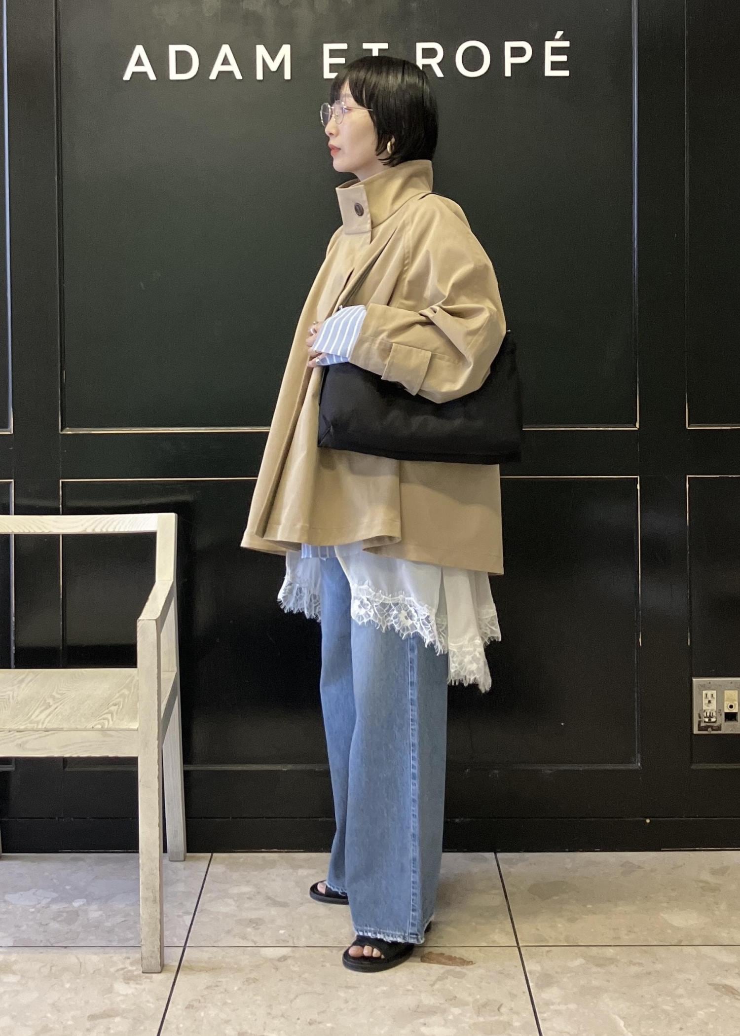 ゆったりシルエットなので、まだ寒い春も中にインナーダウン、スウェット、デニムジャケットも着込めるので、春秋と長い期間スタイリングを楽しめます!