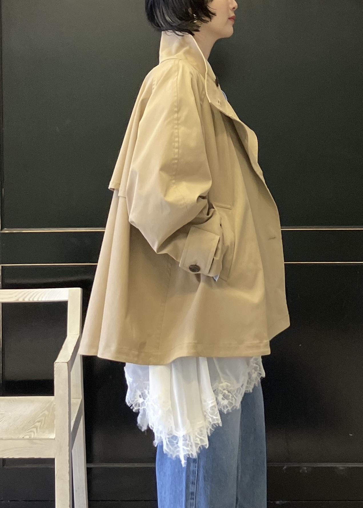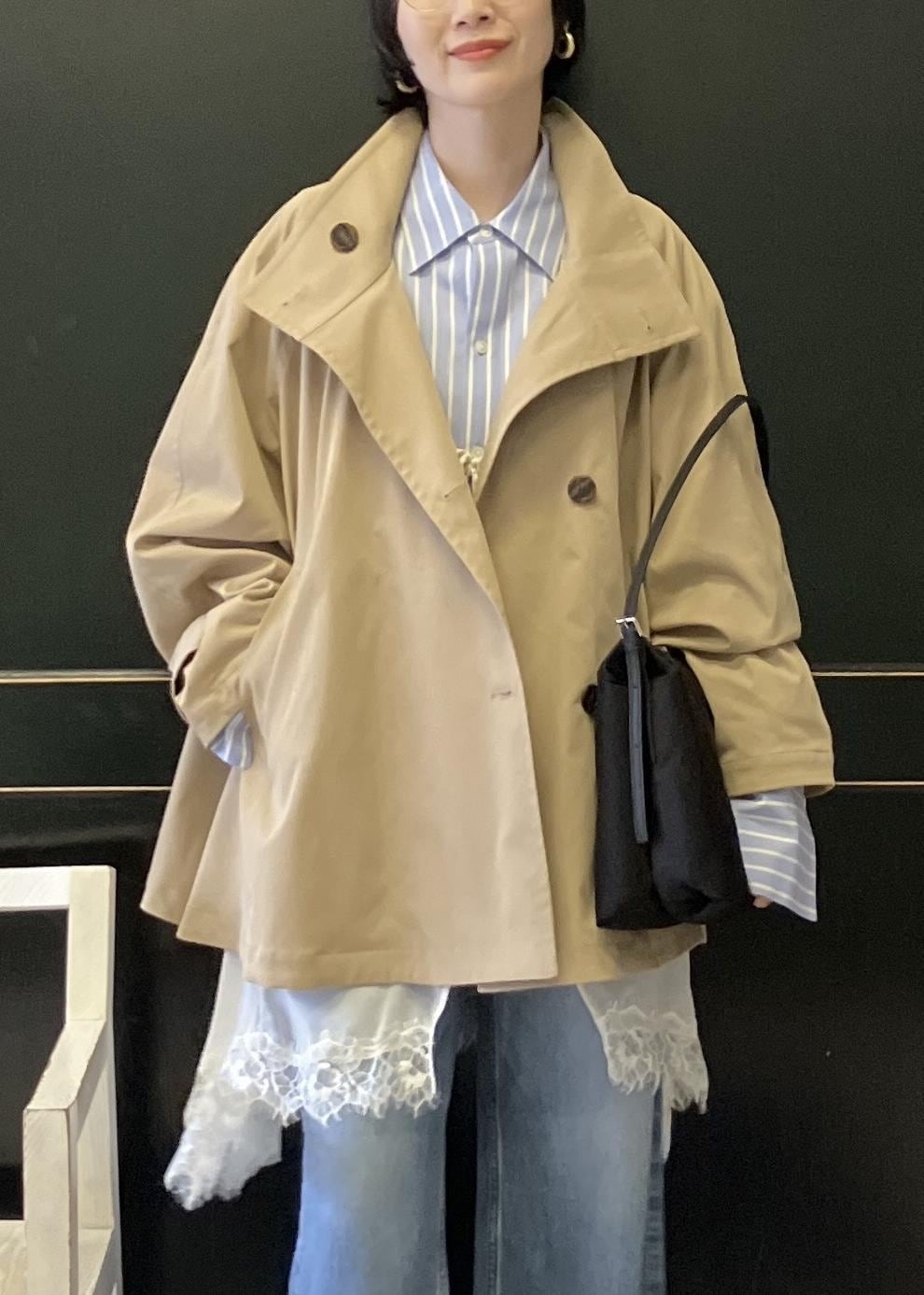 オーバーサイズですが、素材感、色と雰囲気が女性らしいアイテム。