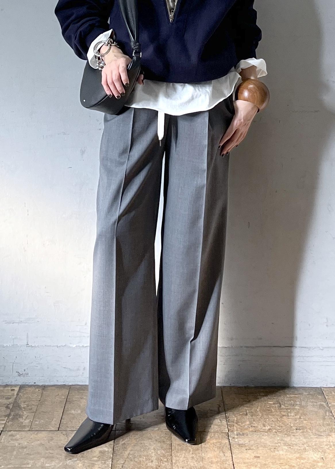 ADAM ET ROPÉ FEMMEイージースラックスグレー / 38¥17,600レビューウール素材にポリエステルが入っているのでシワになりにくく、ウエストもゴムが入っているのでストレスフリーで履きやすいです。ウエストの紐もやや太めでアクセントになります。