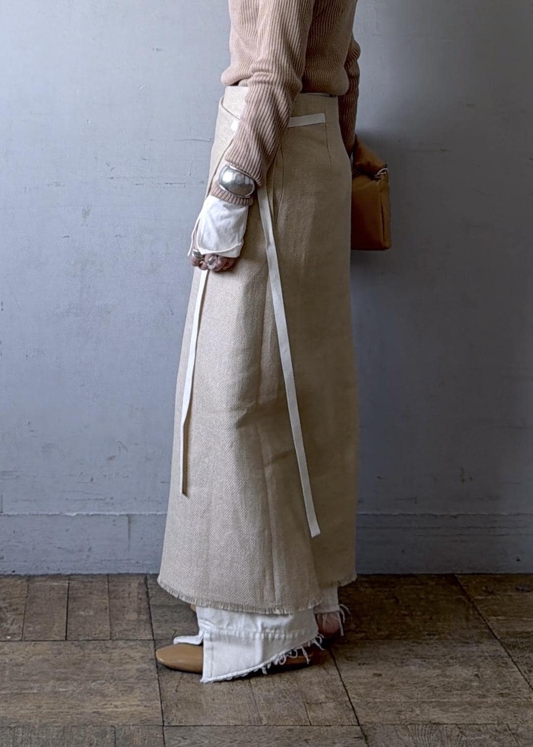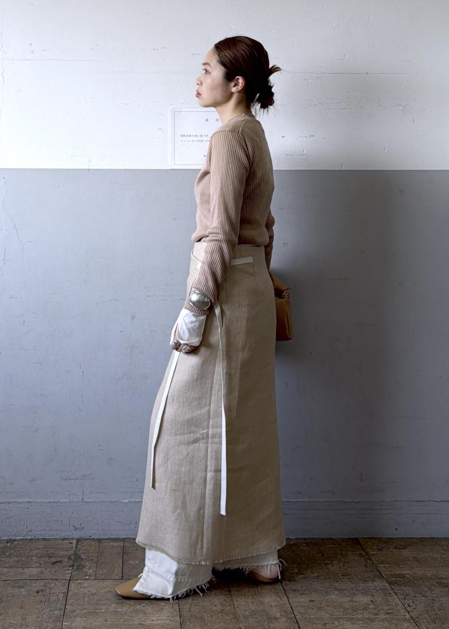 スカートとして着用もできますが、スリットが深めになるので不安な方はレイヤードがオススメです。
